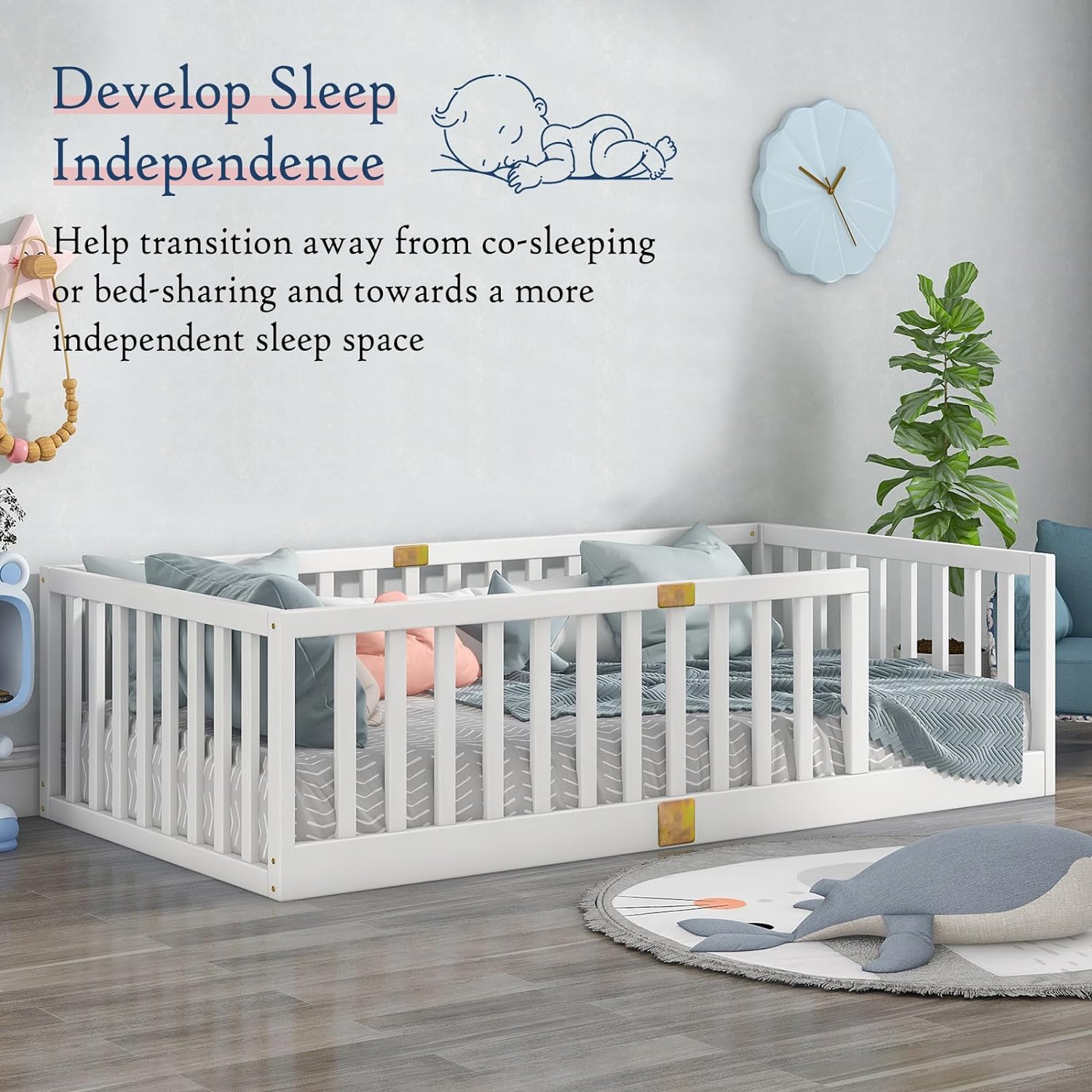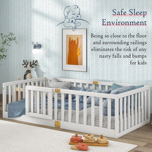 - 【Safe Sleeping Environment】The kid floor bed with rails keeps the sleeping space safer for kids to sleep soundly and explore freely