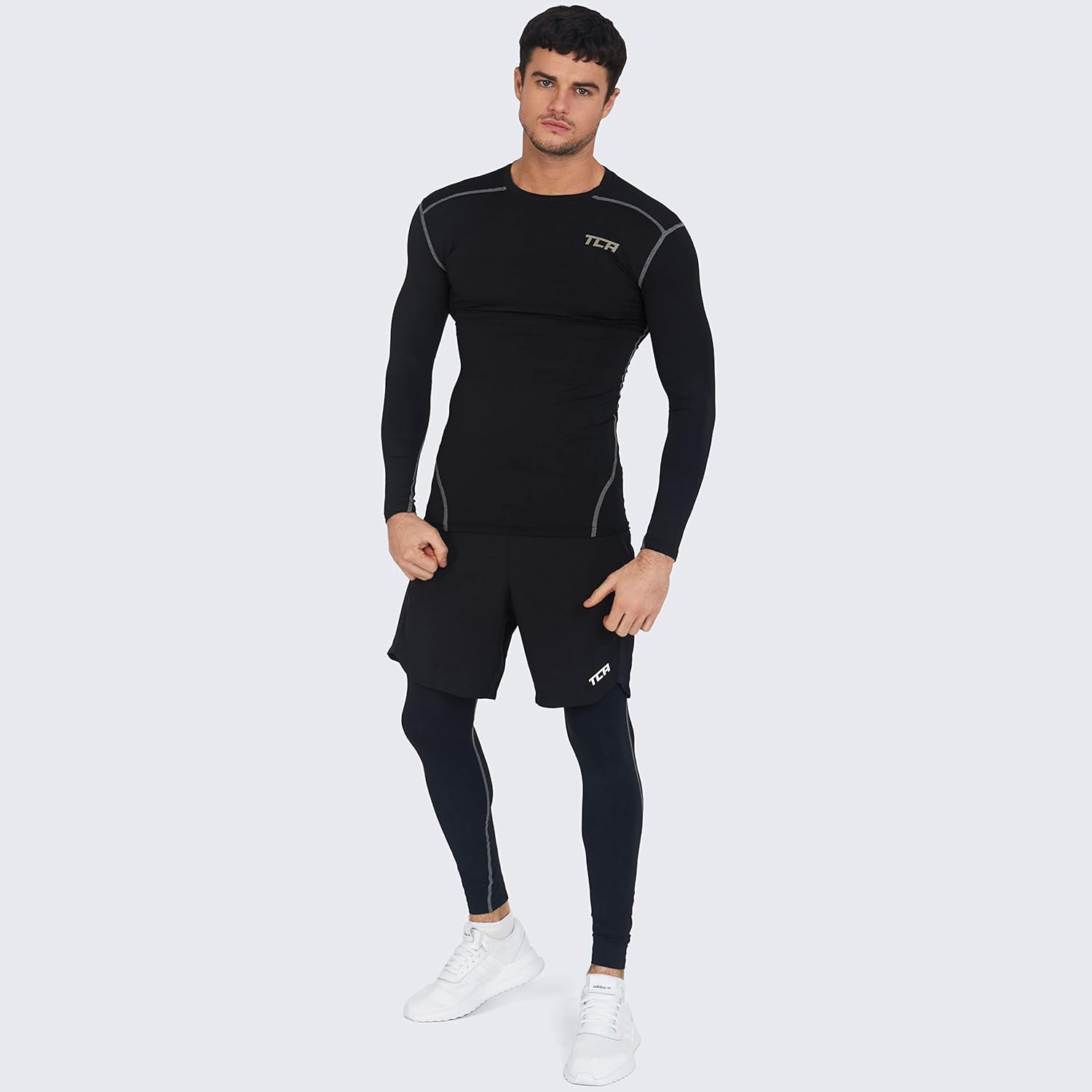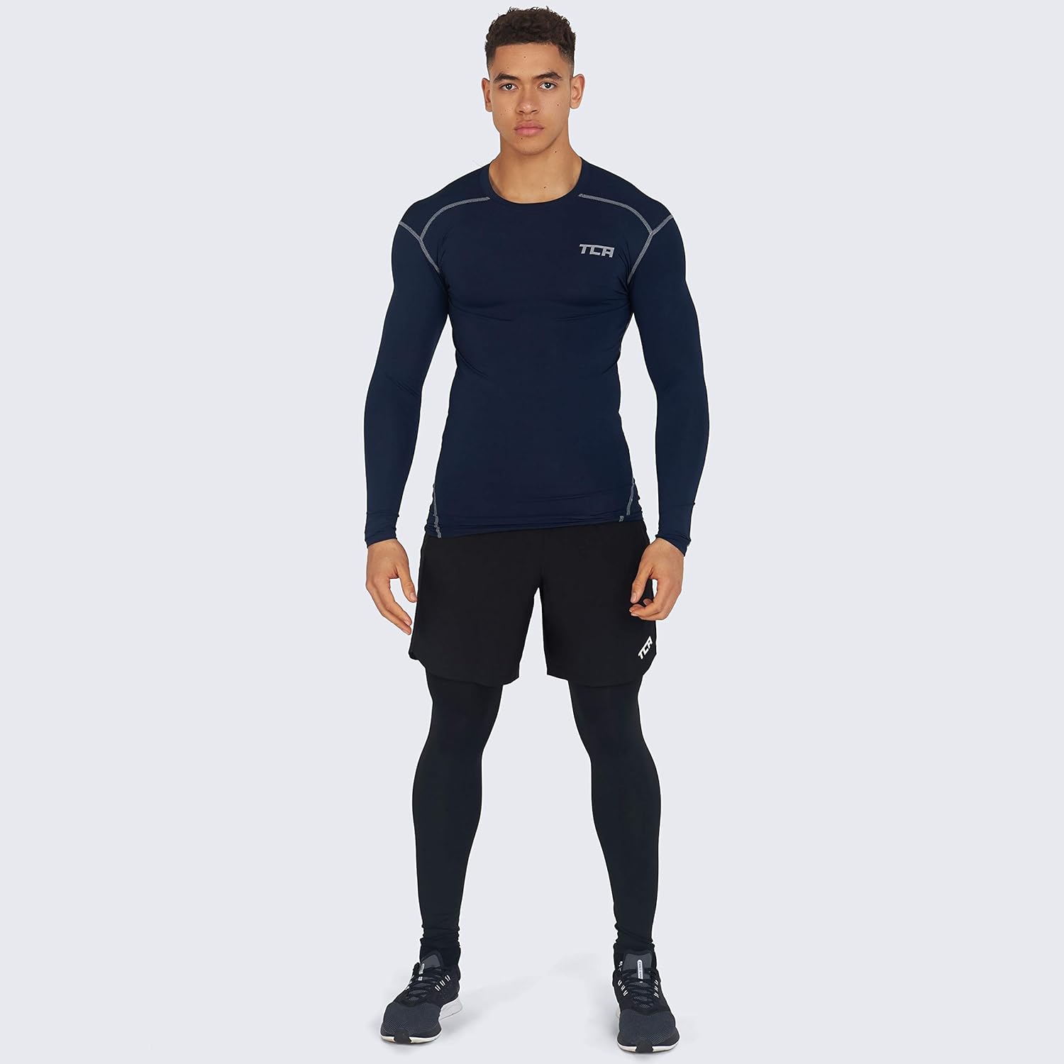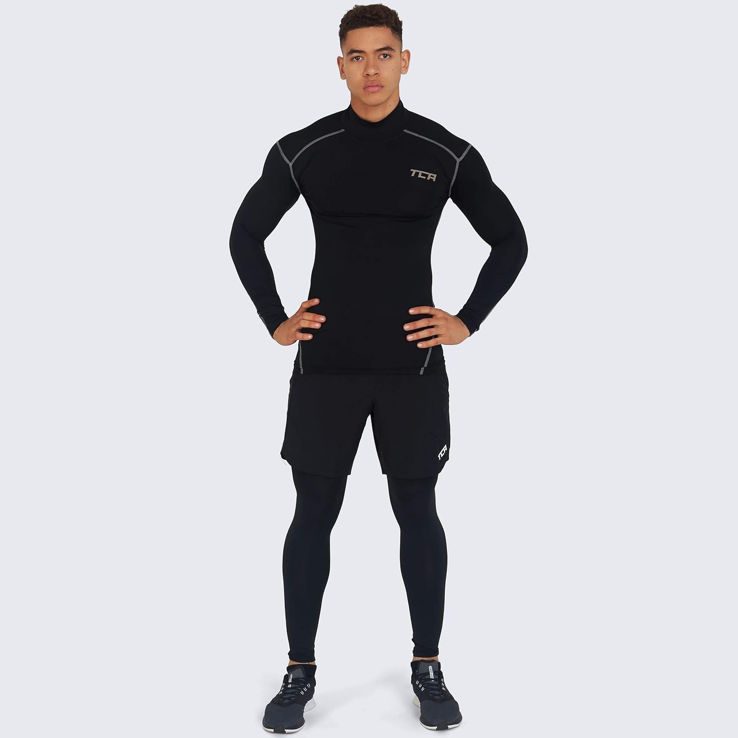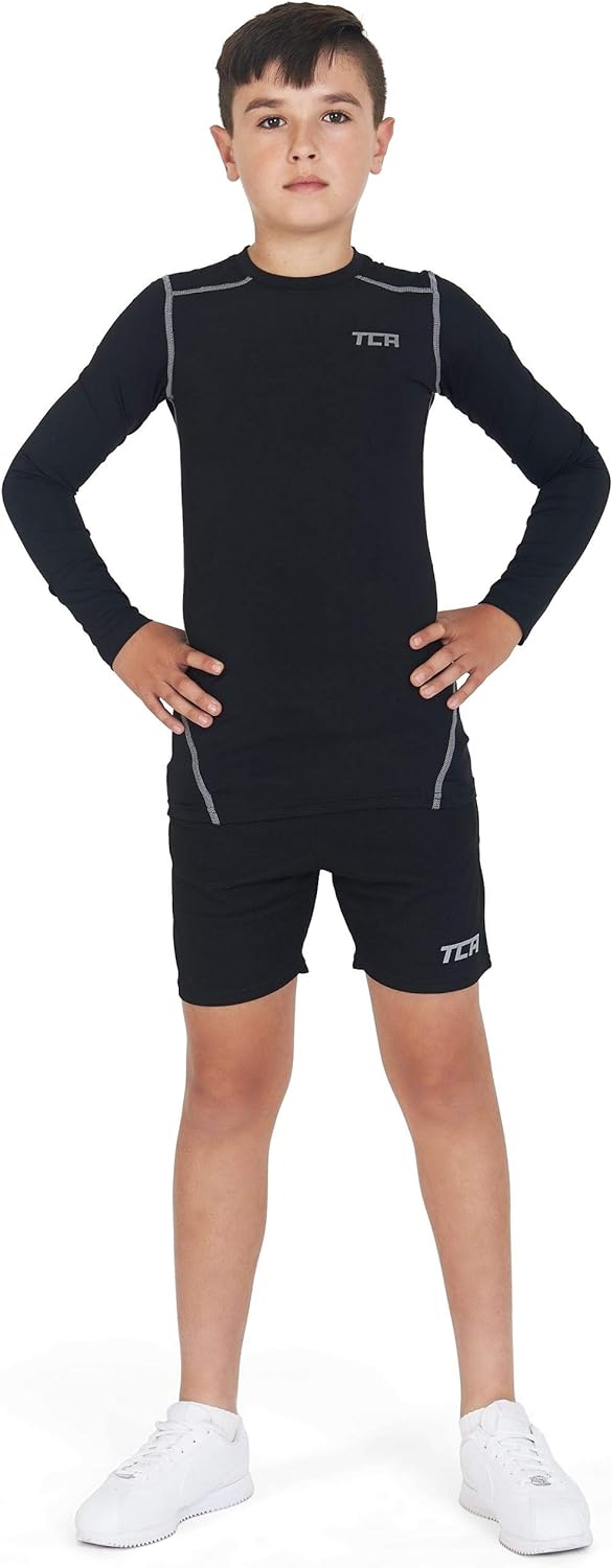 TCA Men's and Boys' Pro Performance Long Sleeve Running Compression Base Layer Top - Crew/Mock Neck