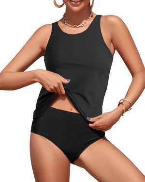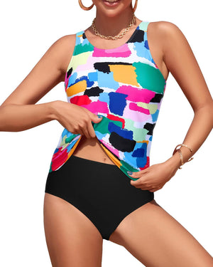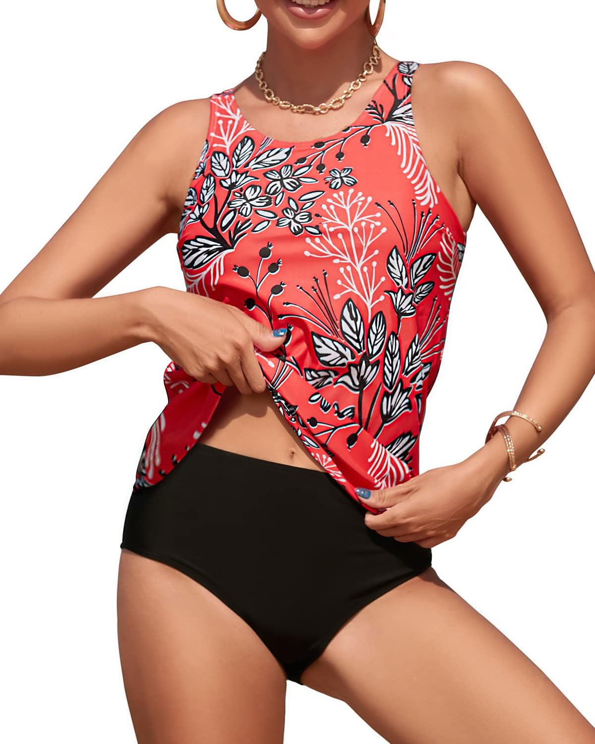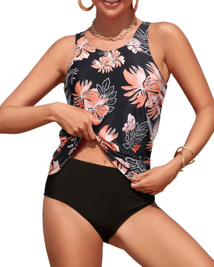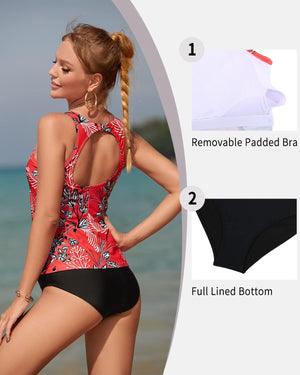 Tempt Me Two Piece Tankini Swimsuits Tummy Control Bathing Suits High Neck Tankini Top with Bottoms for Women