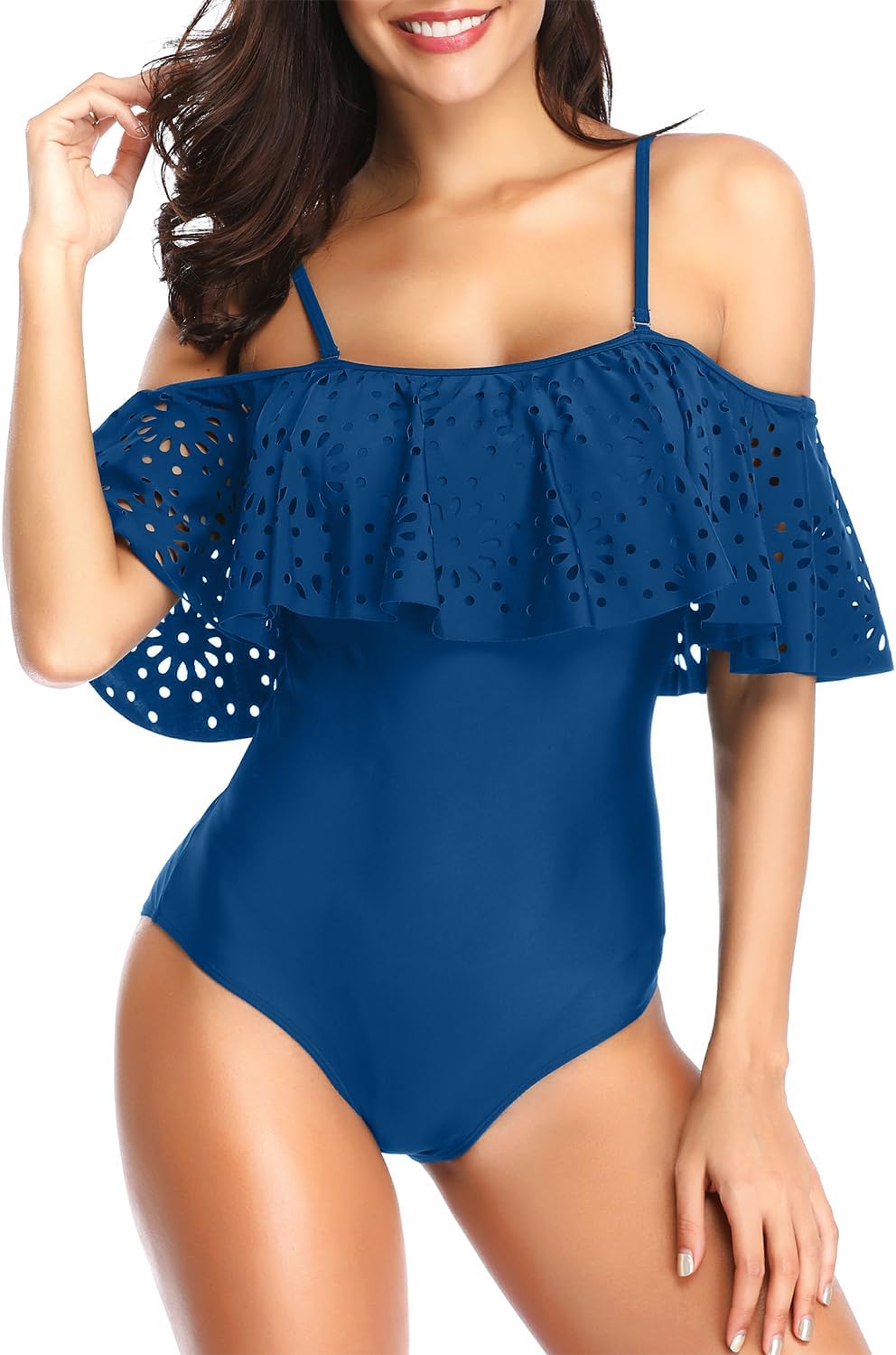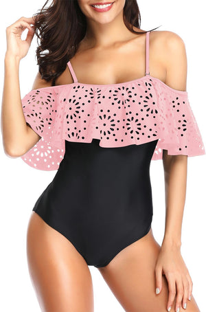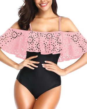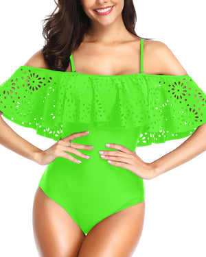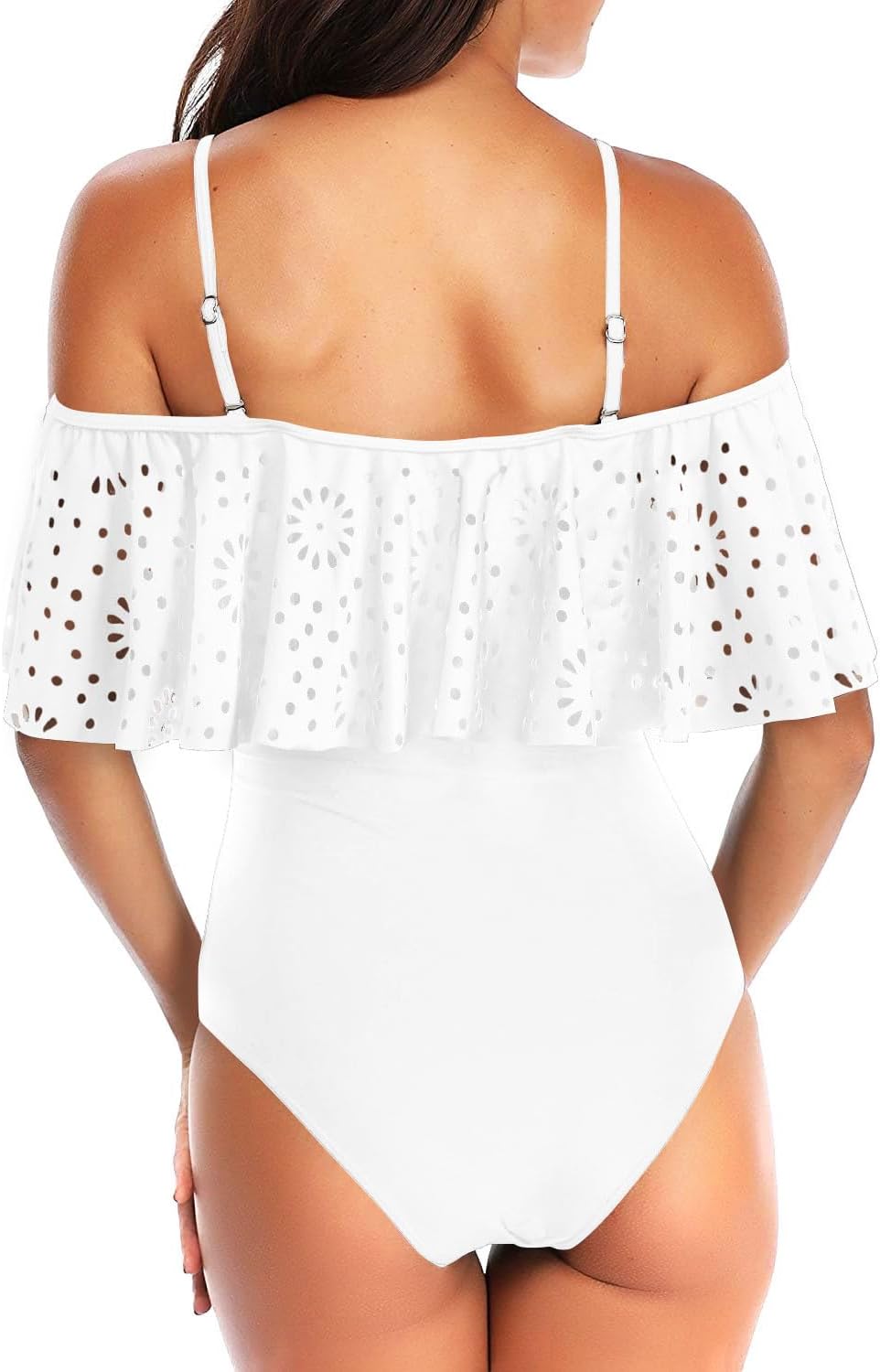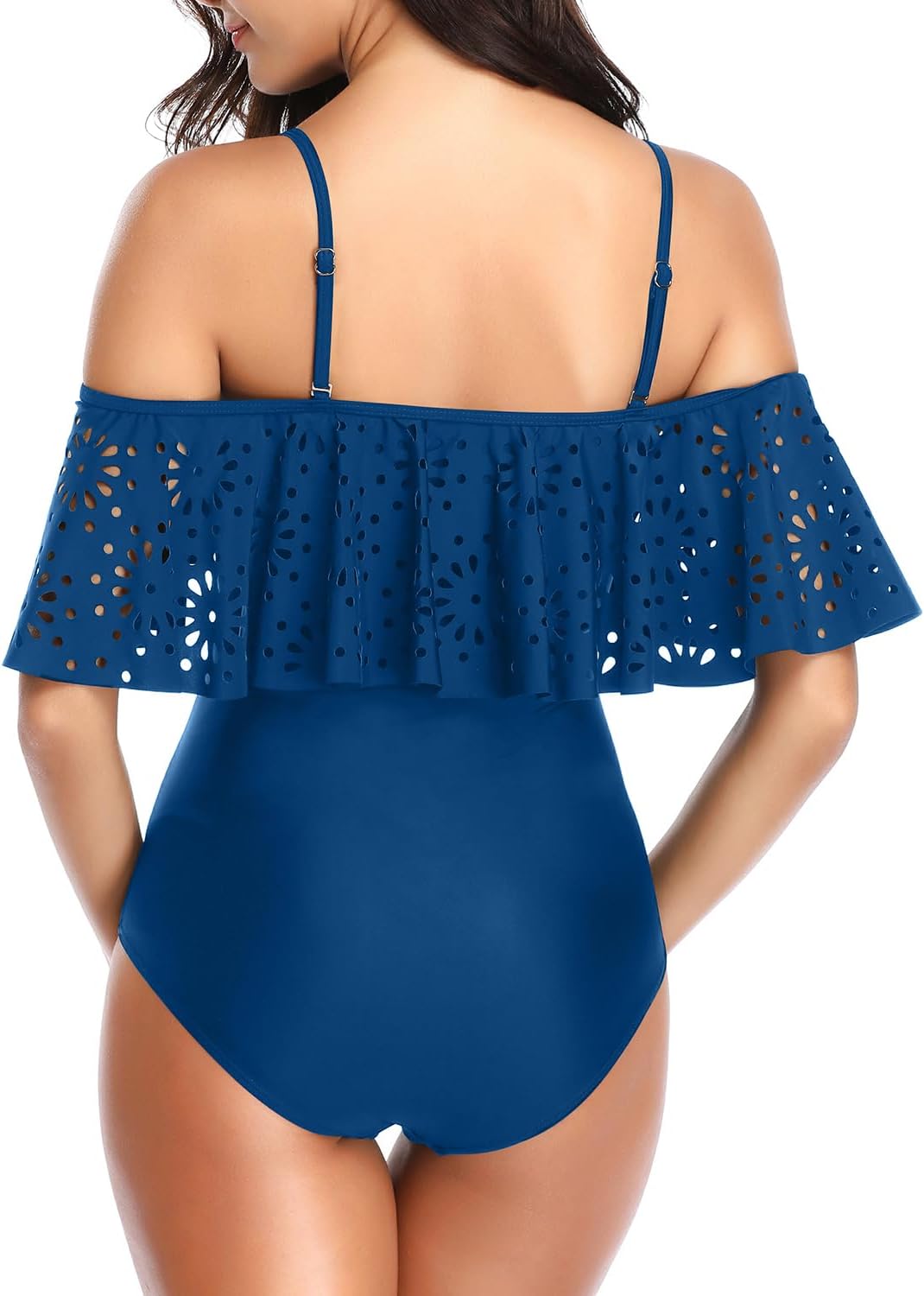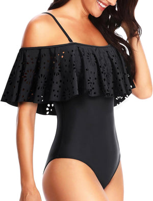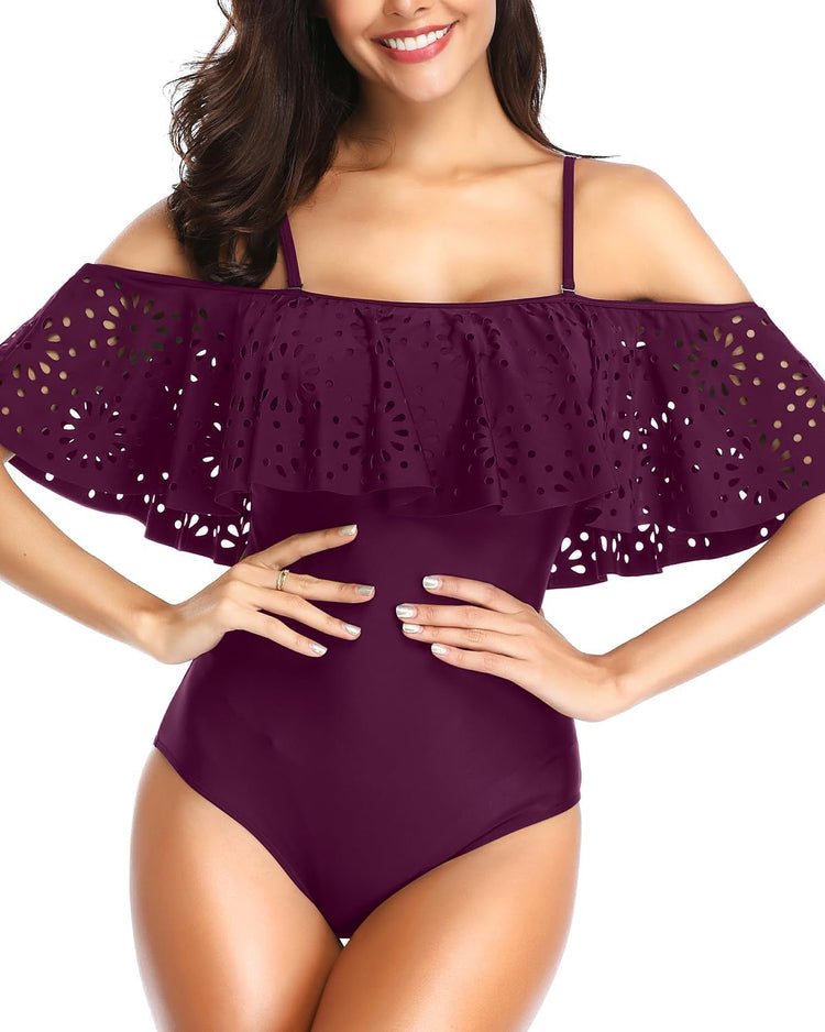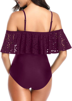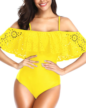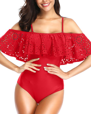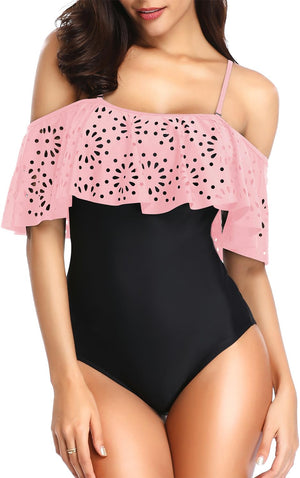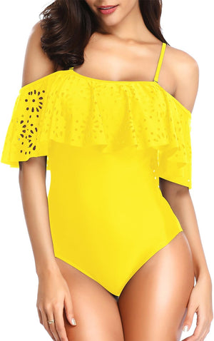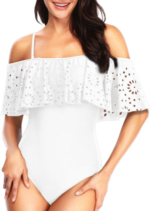 Tempt Me Women One Piece Off Shoulder Lace Swimsuits Ruffle Flounce Hollow Bathing Suits