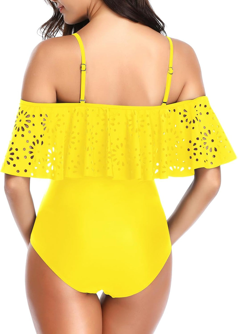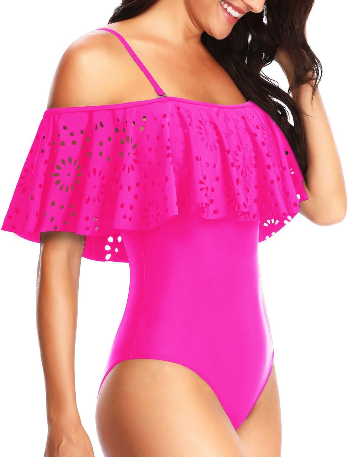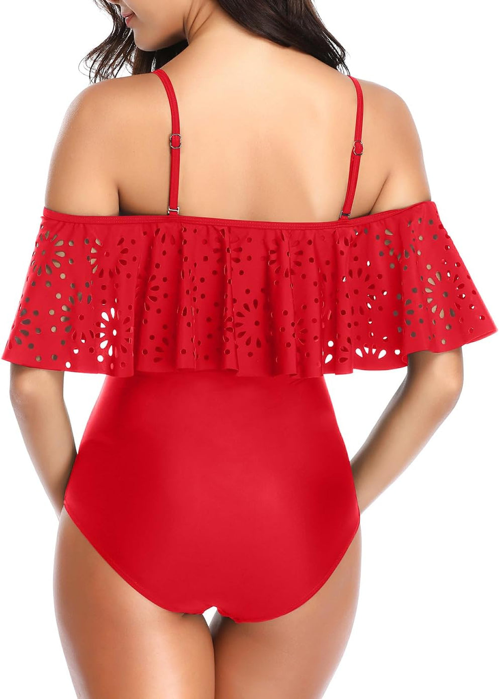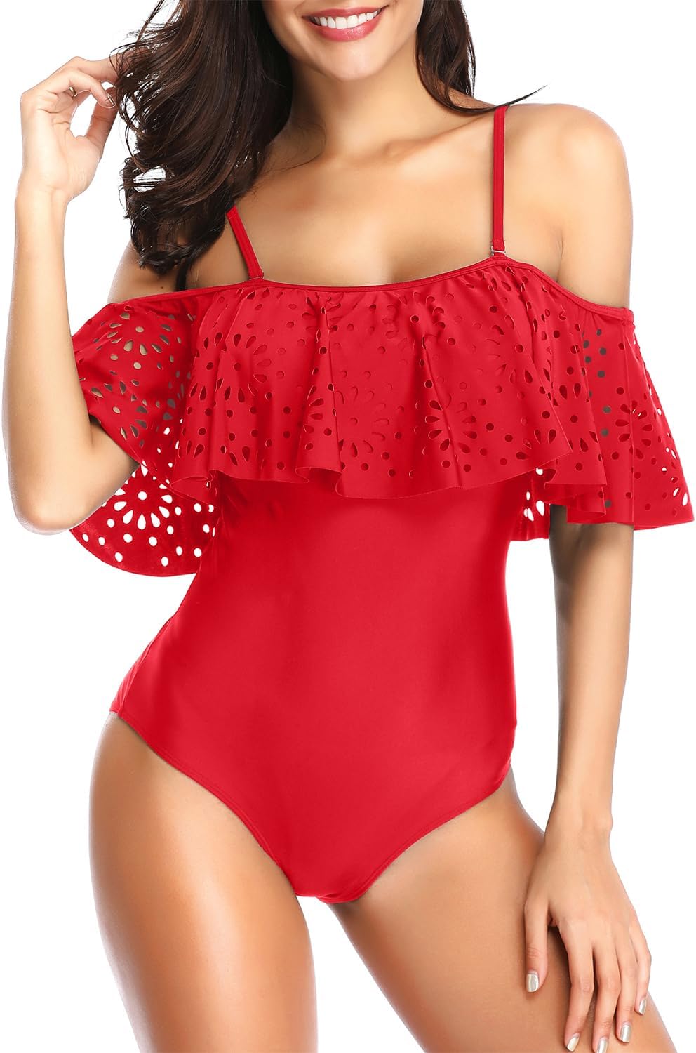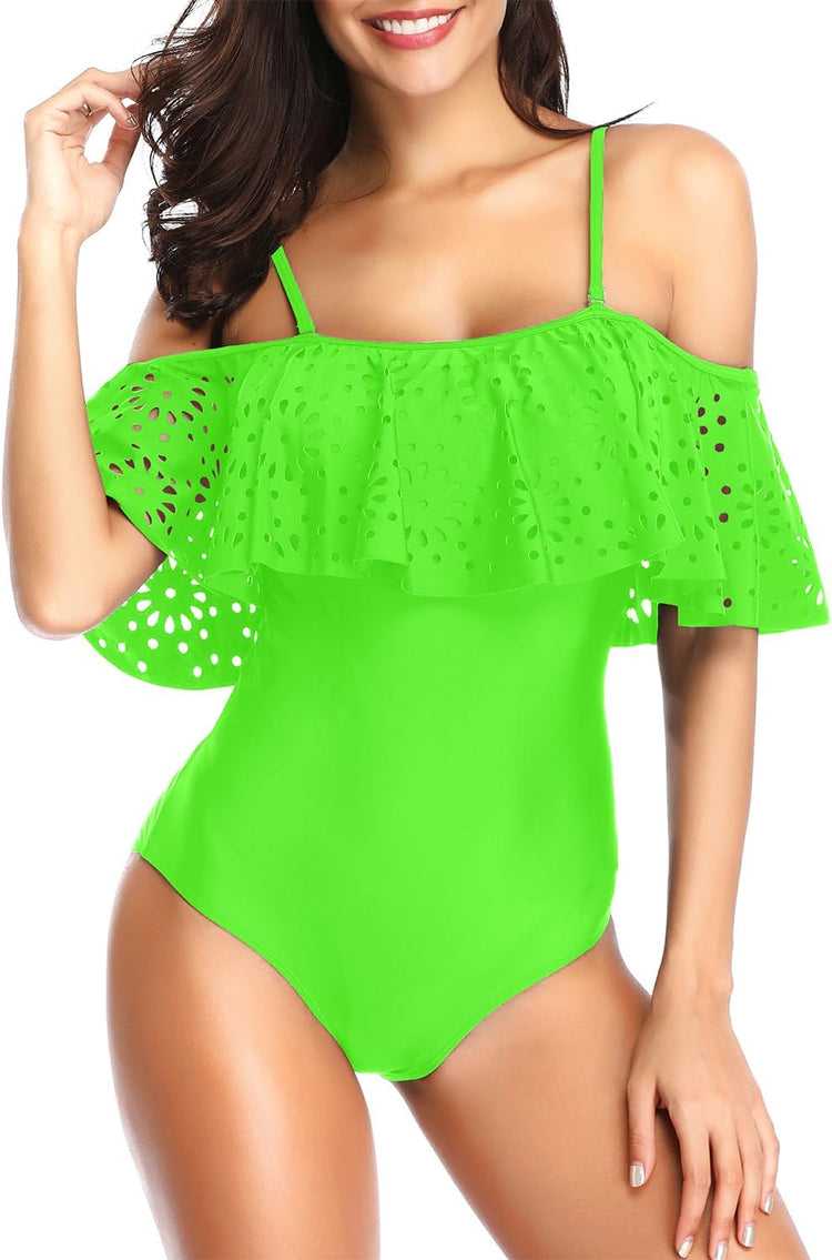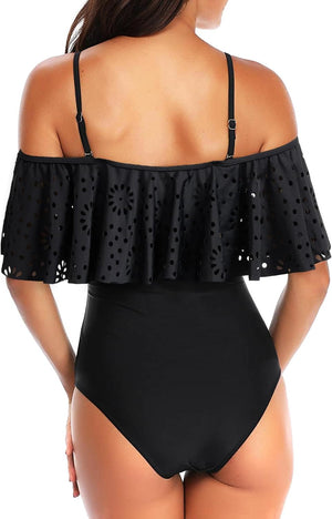 Tempt Me Women One Piece Off Shoulder Lace Swimsuits Ruffle Flounce Hollow Bathing Suits