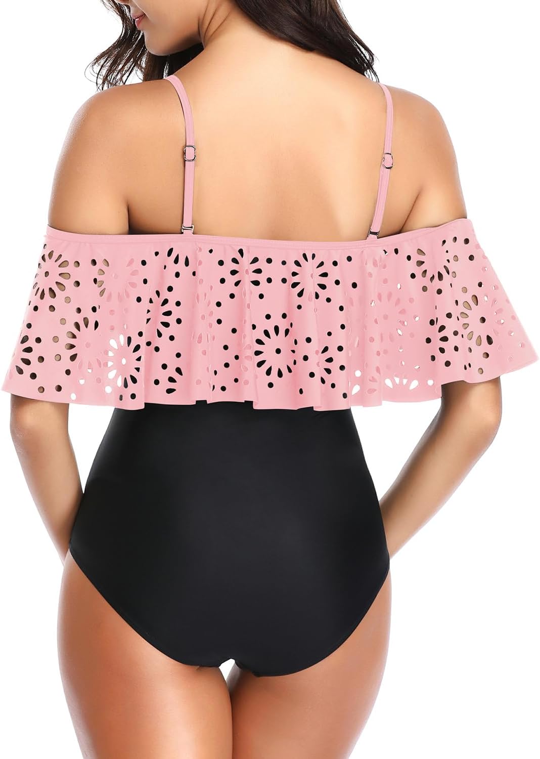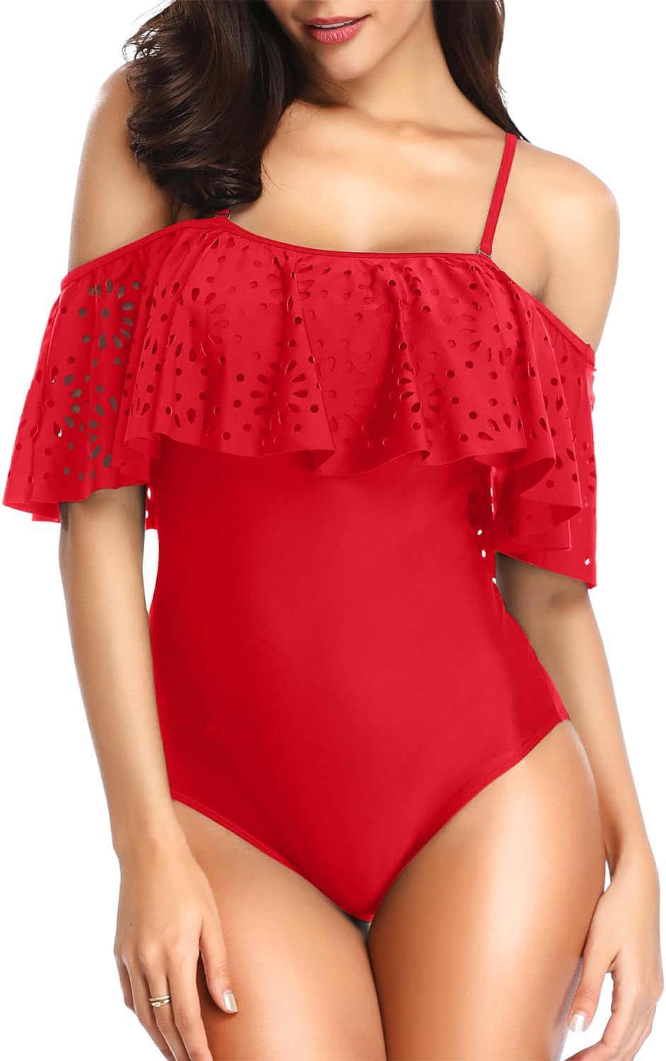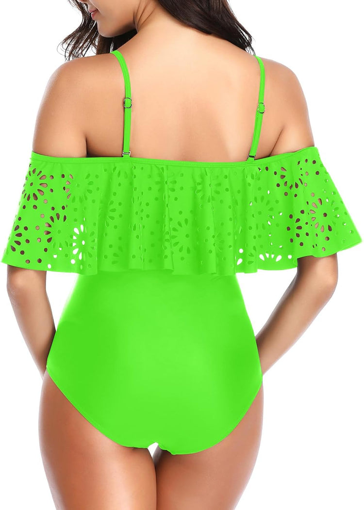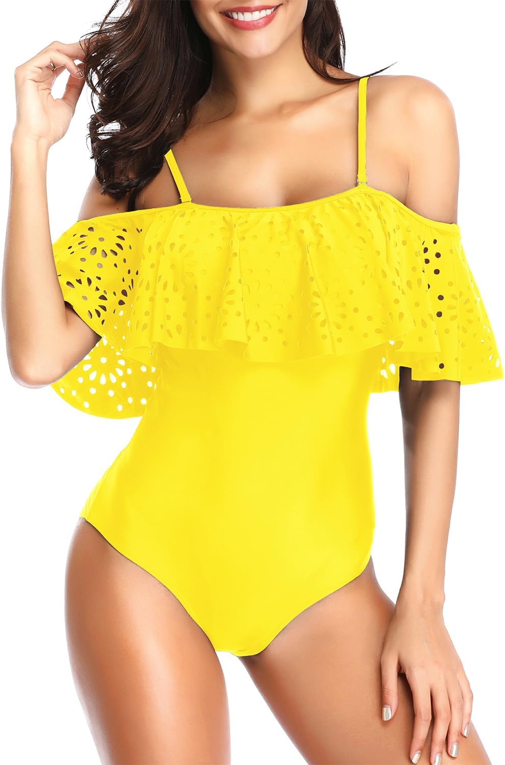Tempt Me Women One Piece Off Shoulder Lace Swimsuits Ruffle Flounce Hollow Bathing Suits