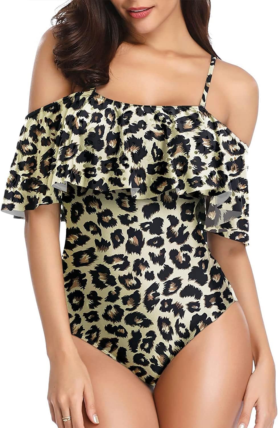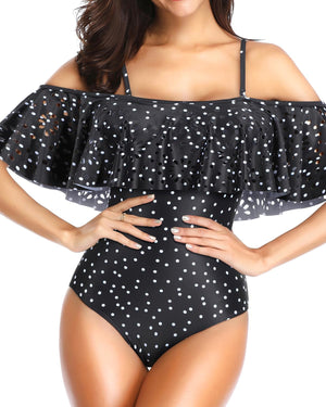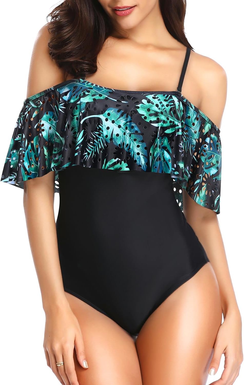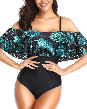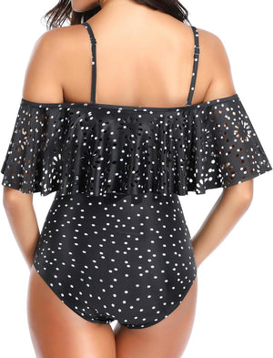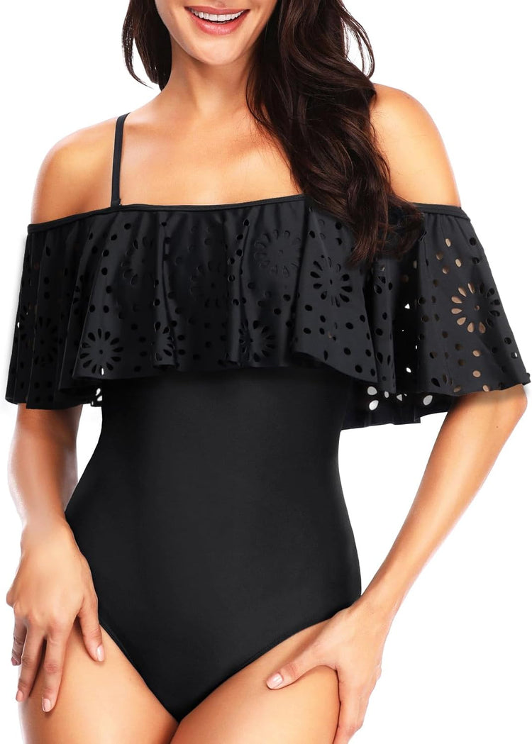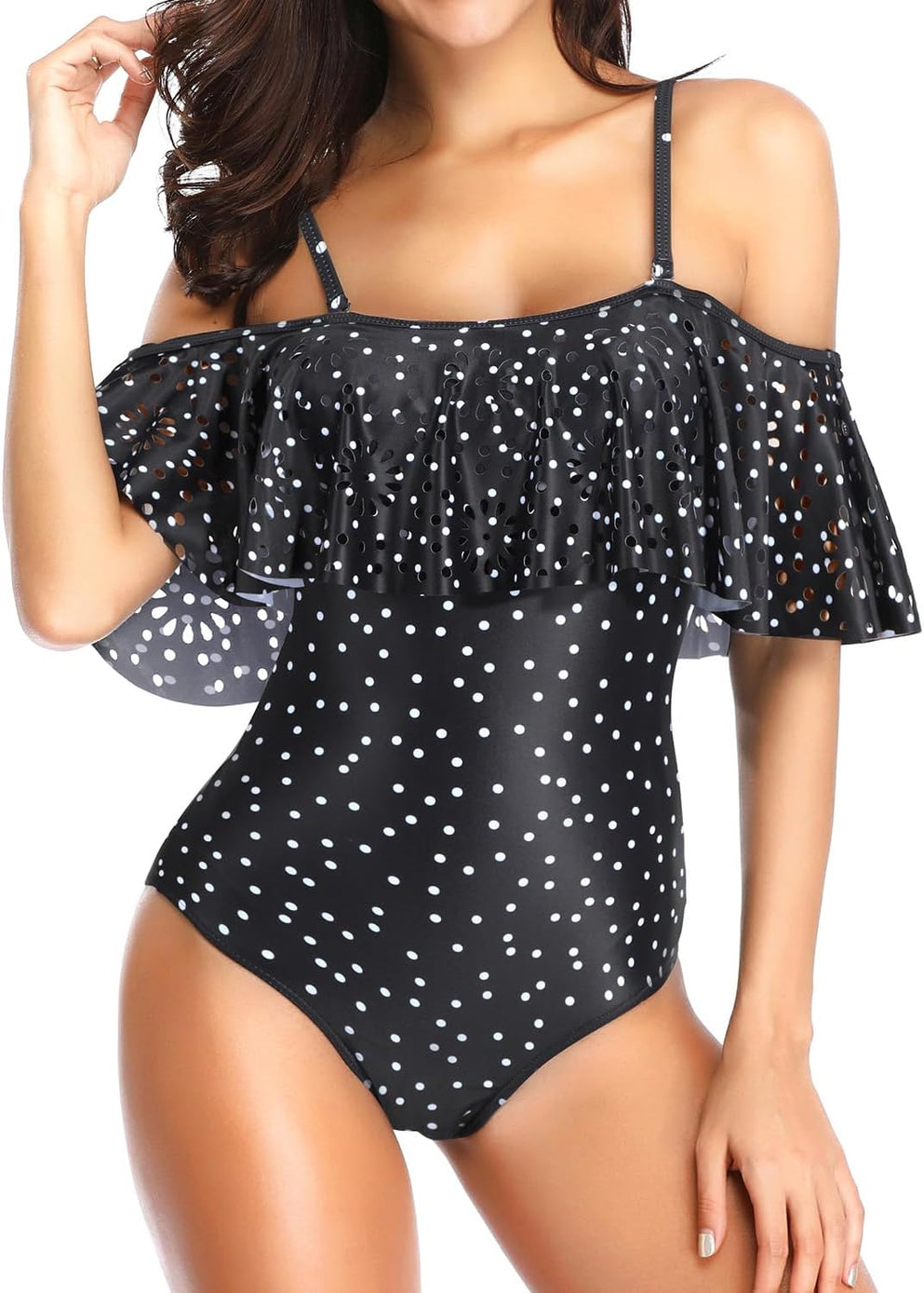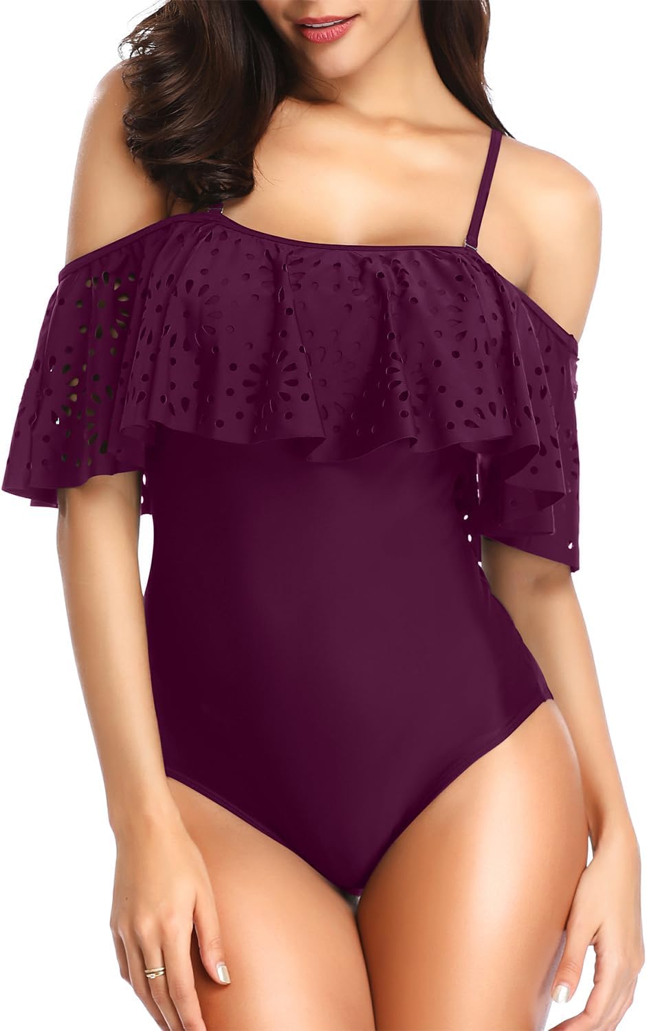 Tempt Me Women One Piece Off Shoulder Lace Swimsuits Ruffle Flounce Hollow Bathing Suits
