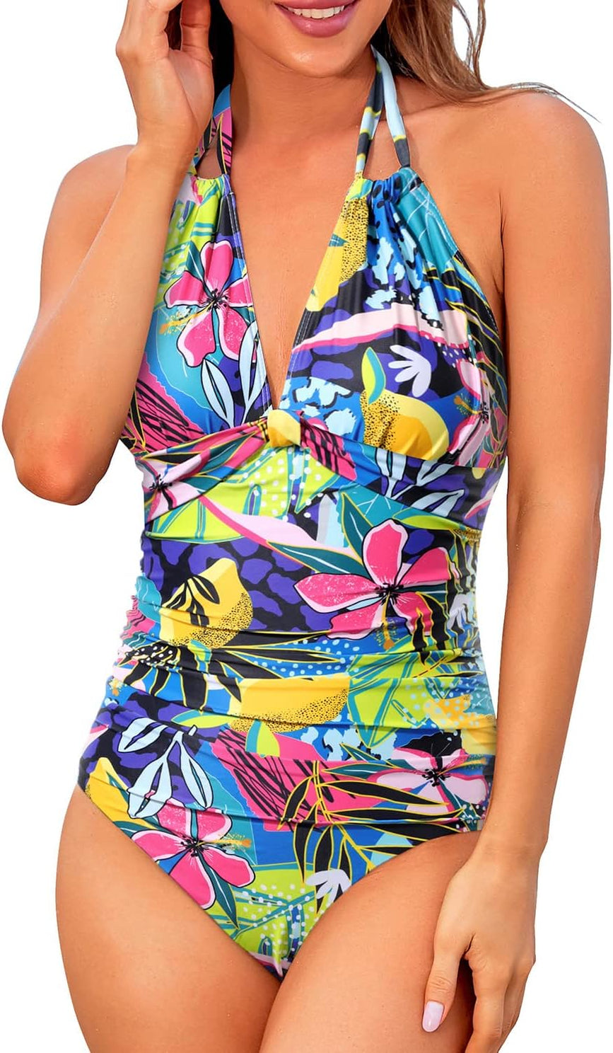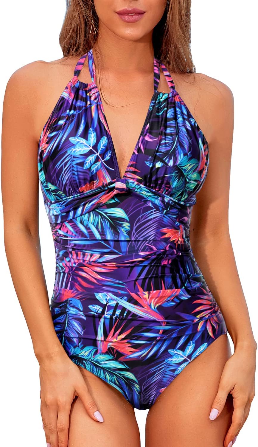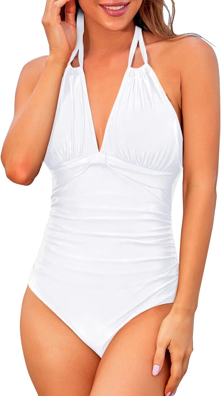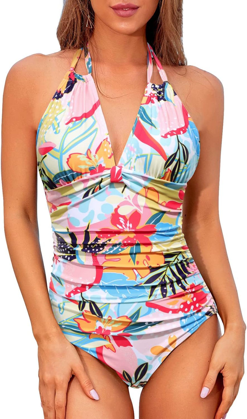 Tempt Me Women One Piece Swimsuits Tummy Control Halter Bathing Suits Sexy Ruched Slimming Swimwear
