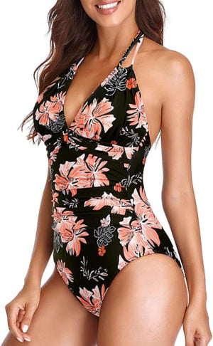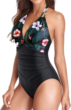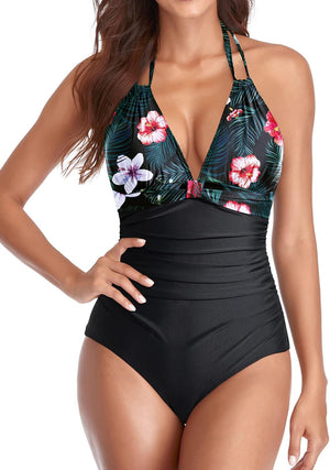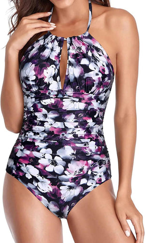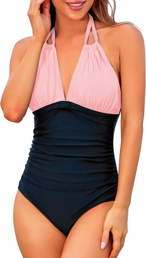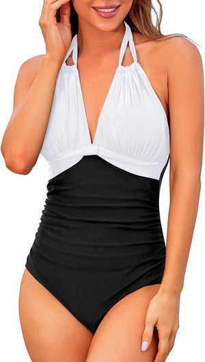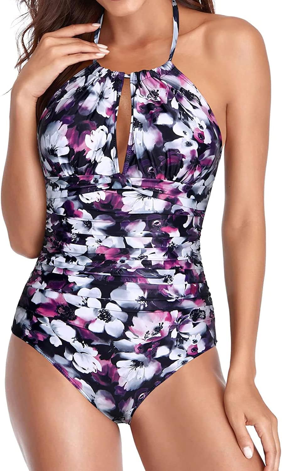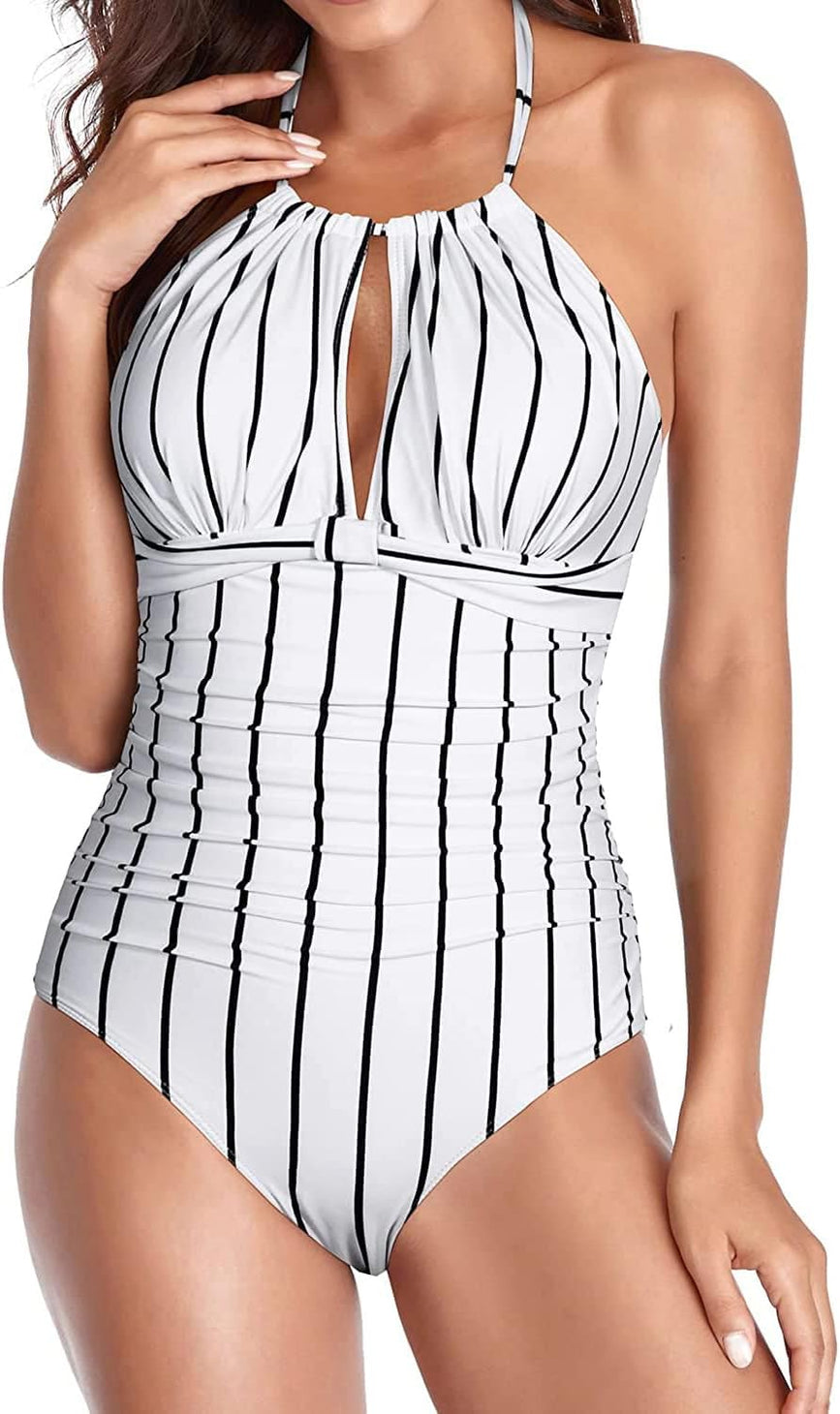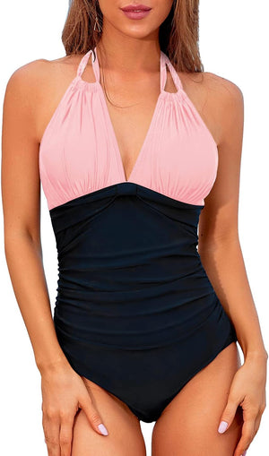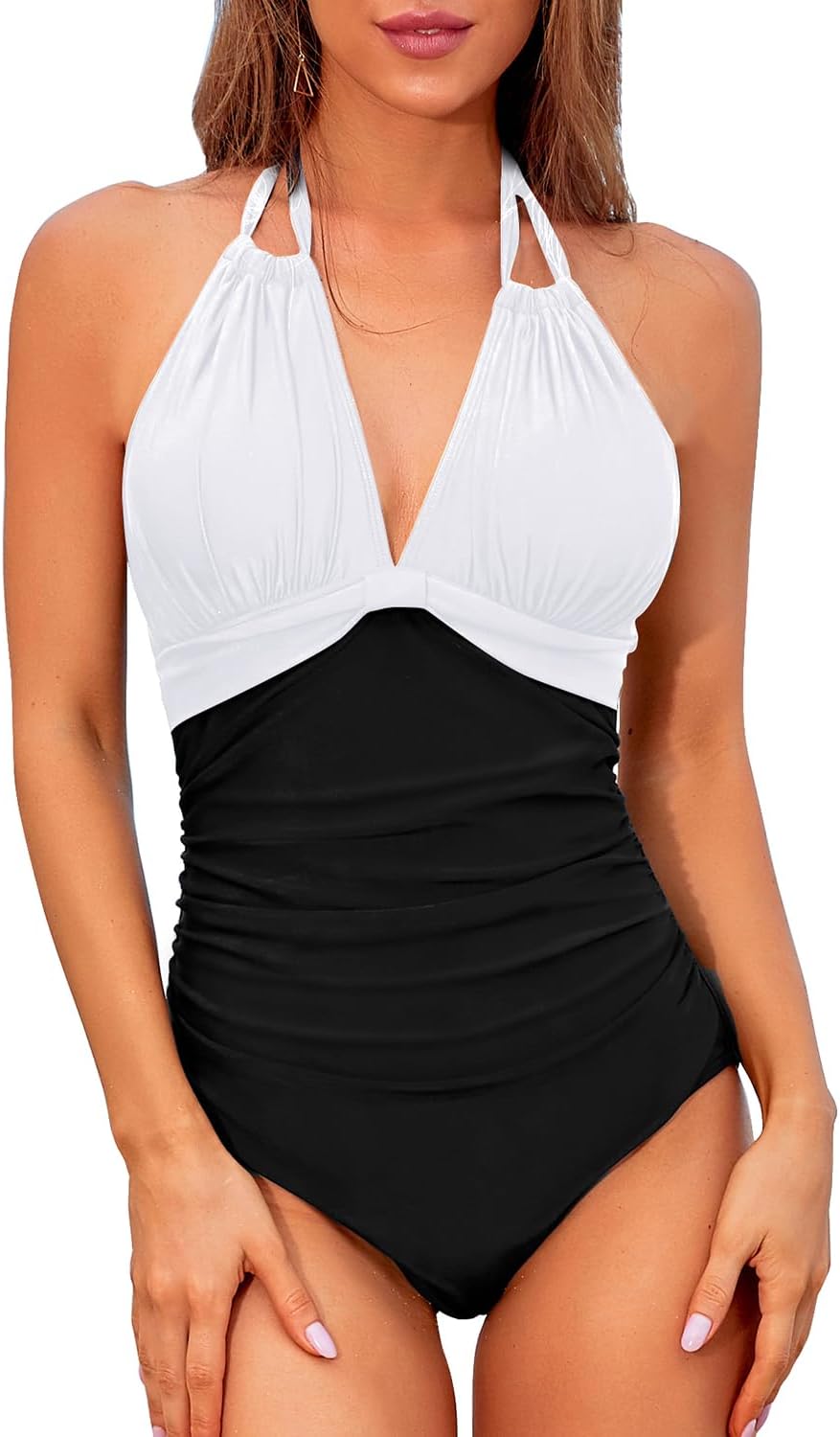 Tempt Me Women One Piece Swimsuits Tummy Control Halter Bathing Suits Sexy Ruched Slimming Swimwear