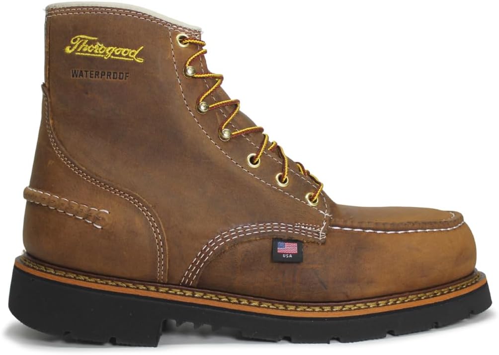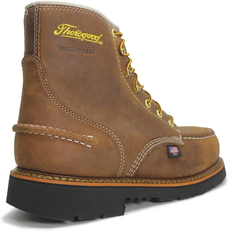 Thorogood 1957 Series 6” Waterproof Steel Toe Work Boots for Men - Full-Grain Leather with Moc Toe, Comfort Insole, and Slip-Resistant Heel Outsole; EH Rated