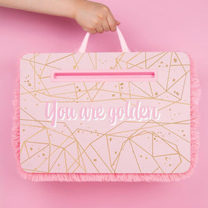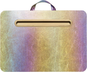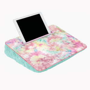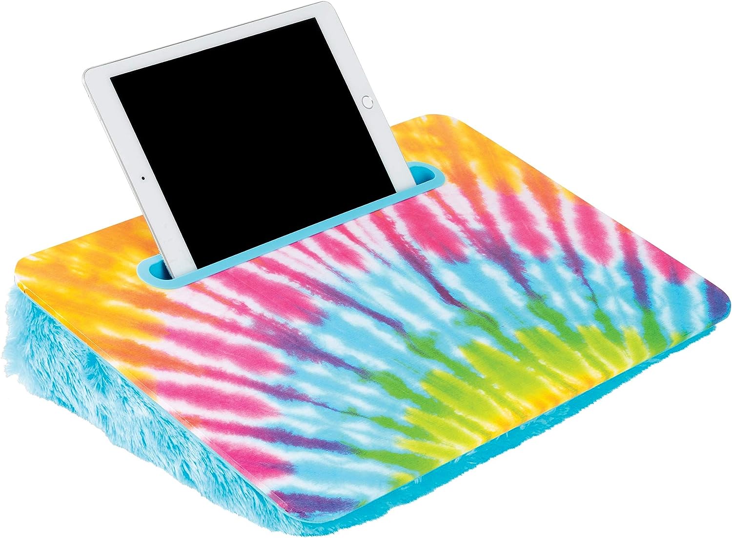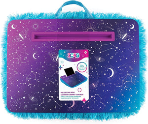 Take your tech to-go with this supercool lap desk. It’s cushiony, comfortable and has handy slots for your tablet, phone and pens. Make any space your doer's office space with this portable lap desk designed with thoughtful compartments, comfortable cushioning, a sturdy handle, and a totally trendy Butterfly finish. A thick, luxurious, marbled, plush cushion is ideal for hours of studying or creative fun. It fits perfectly atop little laps and feels comfortable no matter what. Phone, tablet and pens not included.