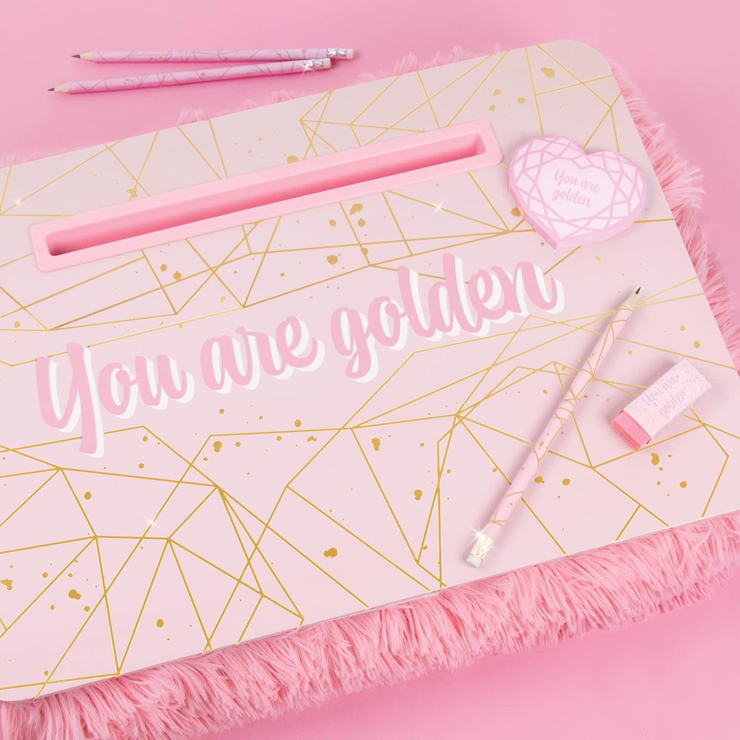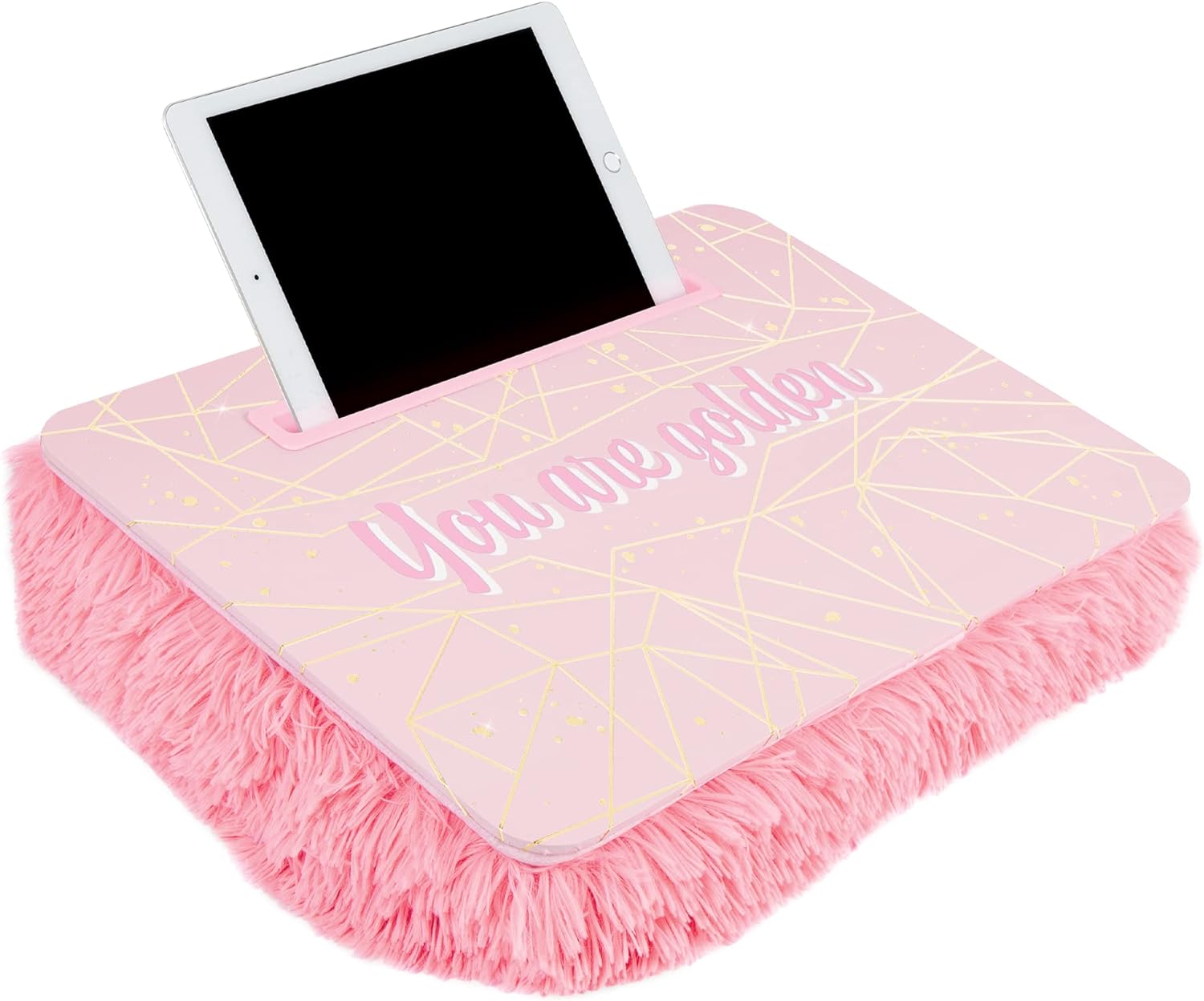 - WORK & PLAY: This purple & pink lap desk for girls includes a media slot that’s perfect for holding up tablets & phones or to store pens, pencils & more. The spacious lap tray surface is also great for arts & crafts or even enjoying a snack!