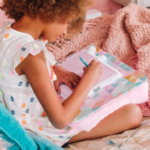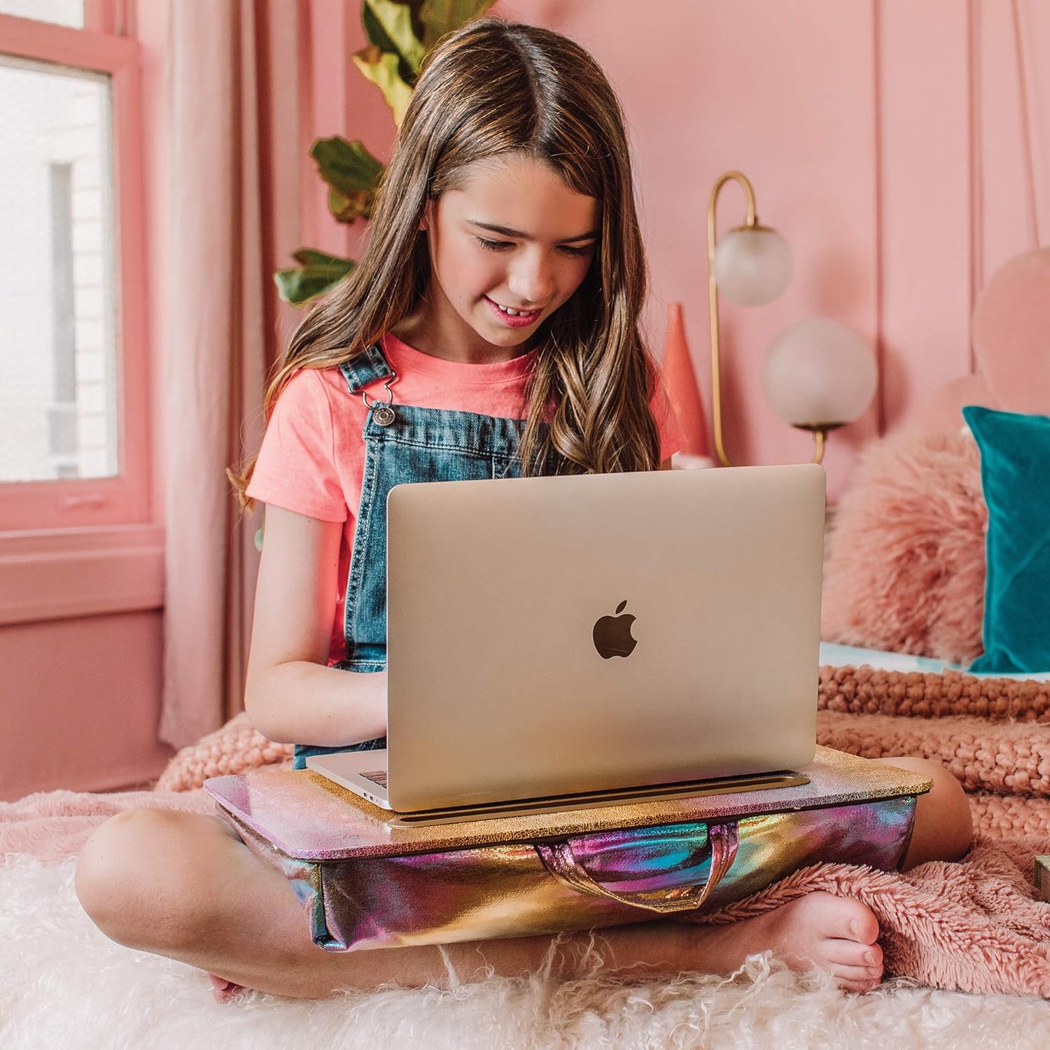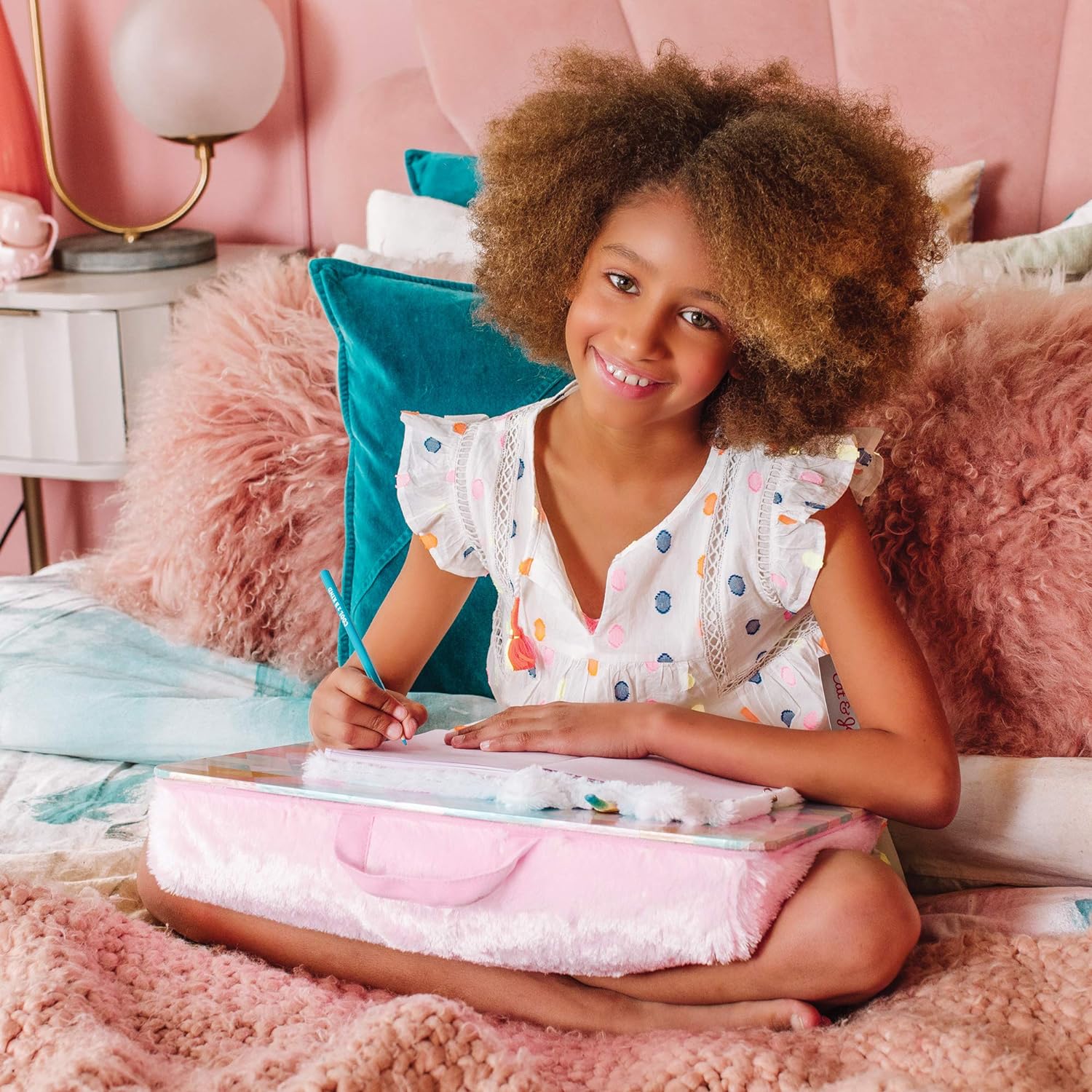 - SMOOTH & STURDY SURFACE: The smooth, flat surface is great for writing, reading & drawing and the bead cushion helps create a sturdy base that’s wobble free. Girls can sit back & do their homework or get creative from the comfort of their bed!