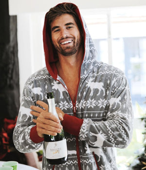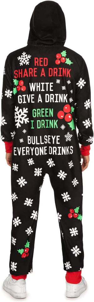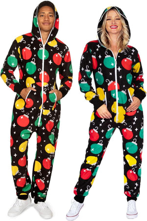Tipsy Elves Cozy Cute and Warm Jumpsuits for Men and Women featuring Ugly Christmas Sweater Inspired Adult Onesies Patterns