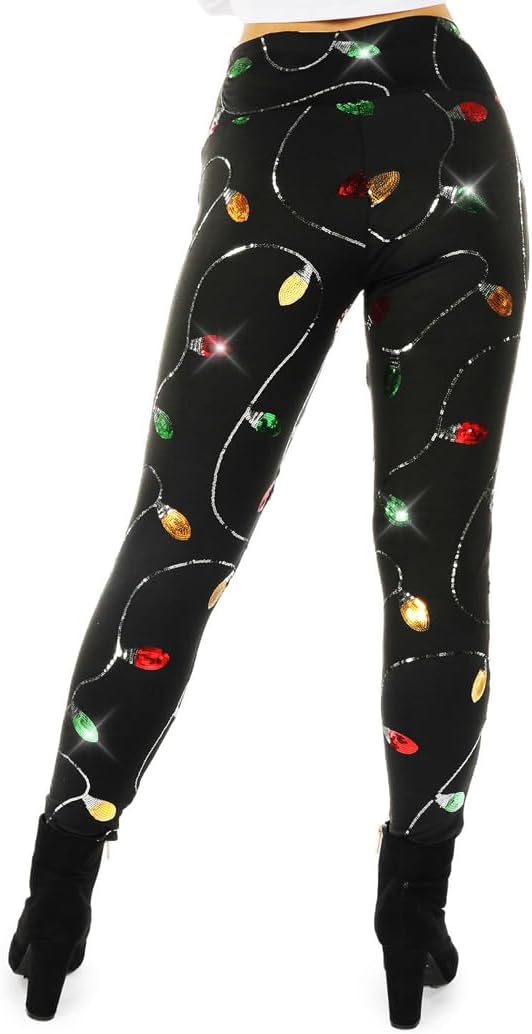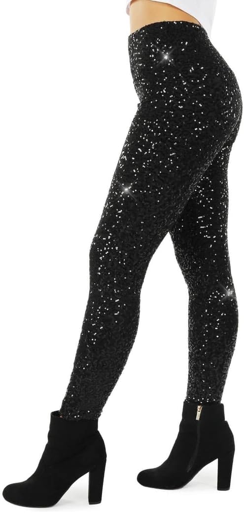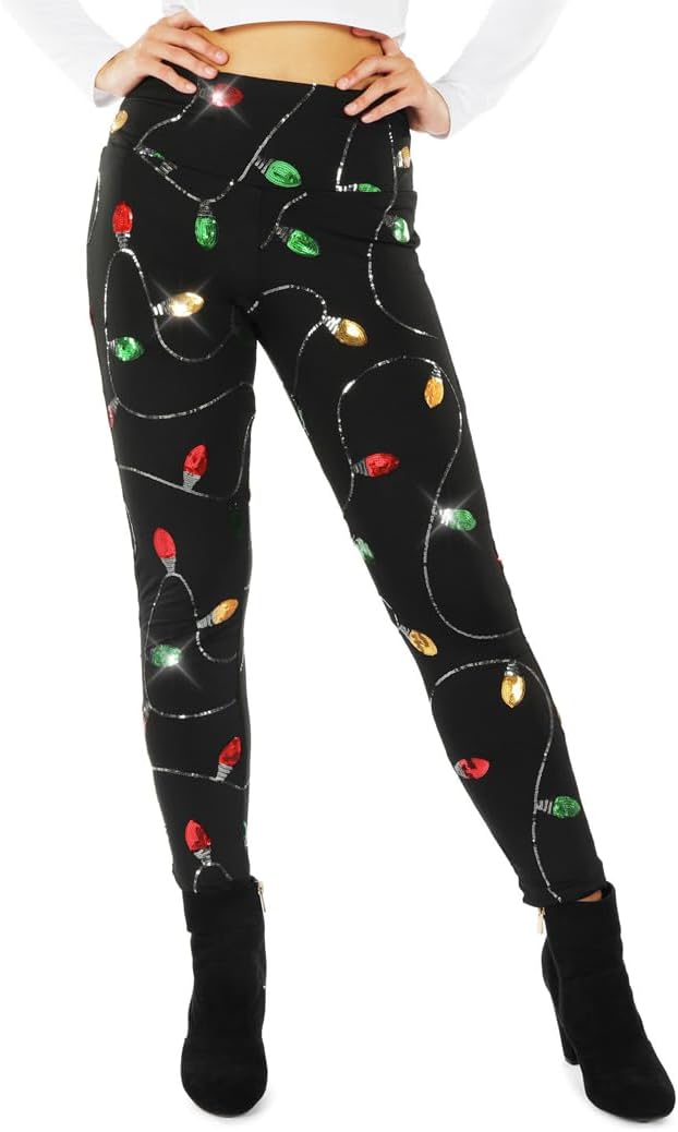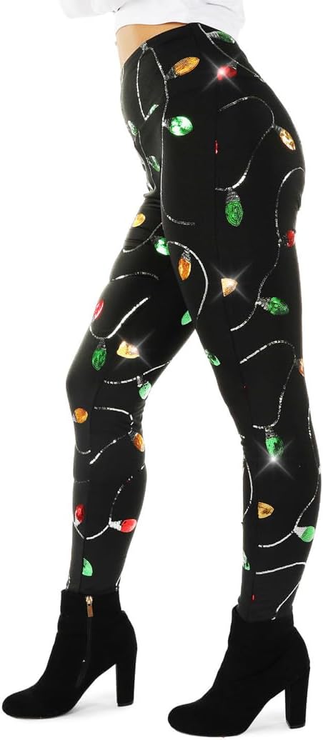 Tipsy Elves Shiny Sequin Leggings for Women for Holiday Outfits and Beyond