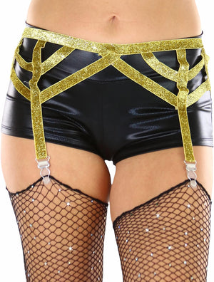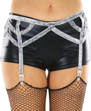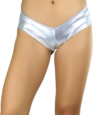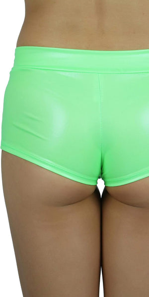ToBeInStyle Women's Liquid Shiny Metallic Mini Booty Cheeky Shorts