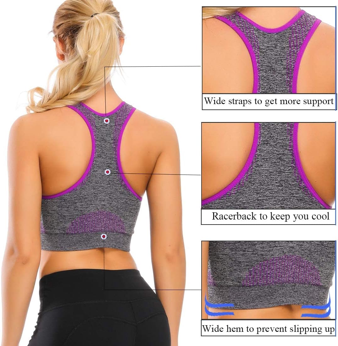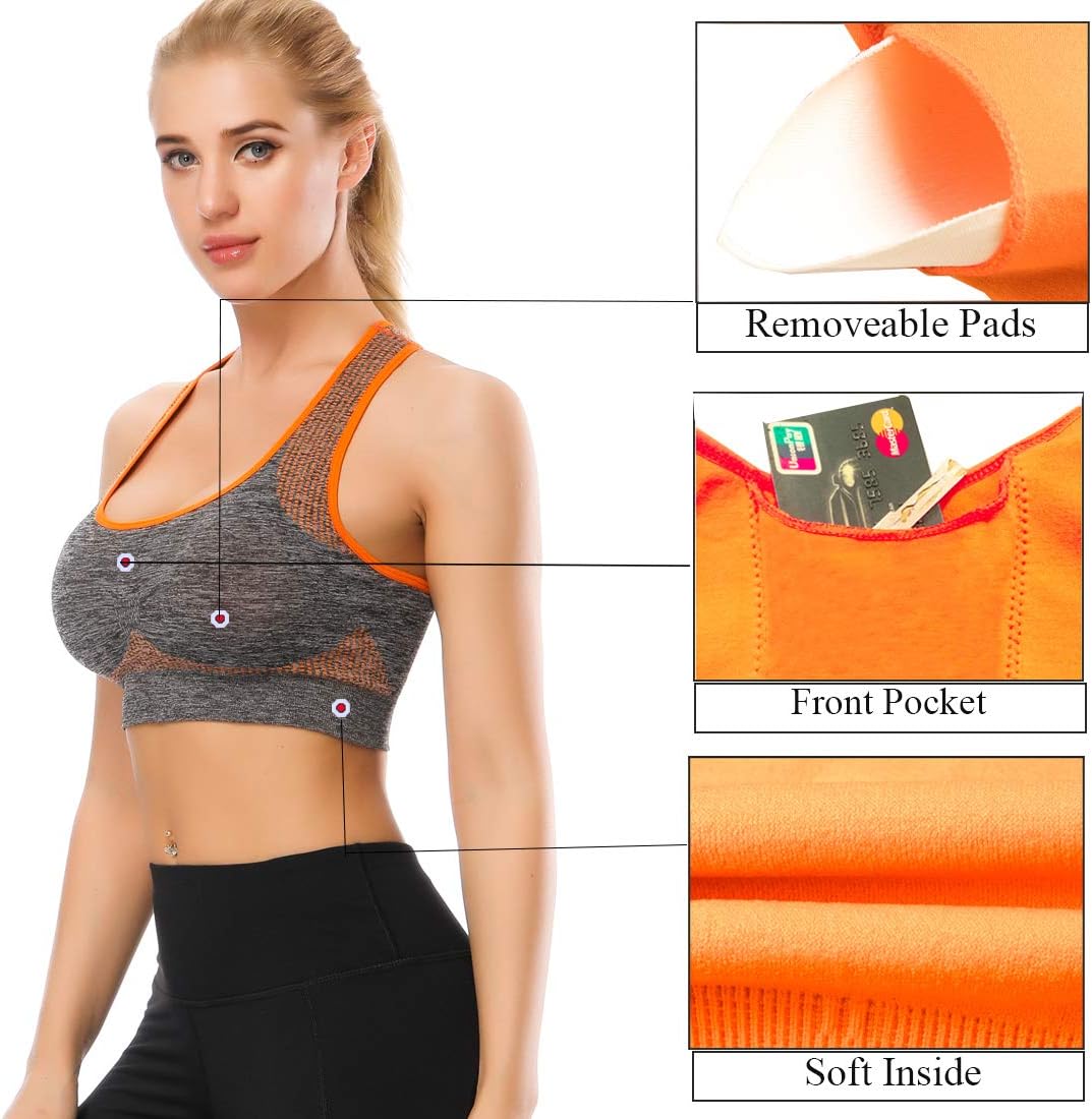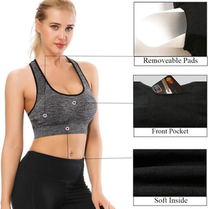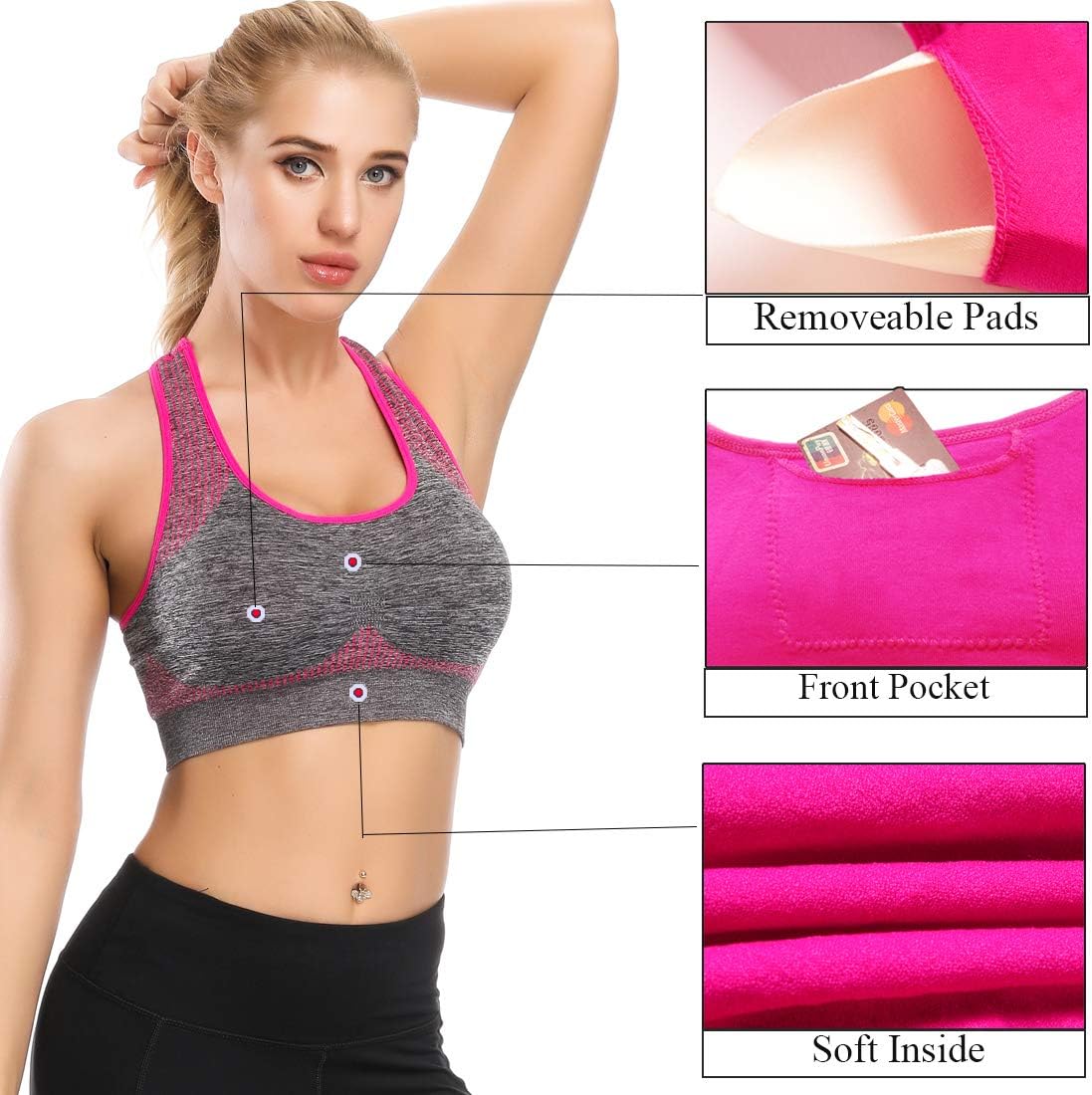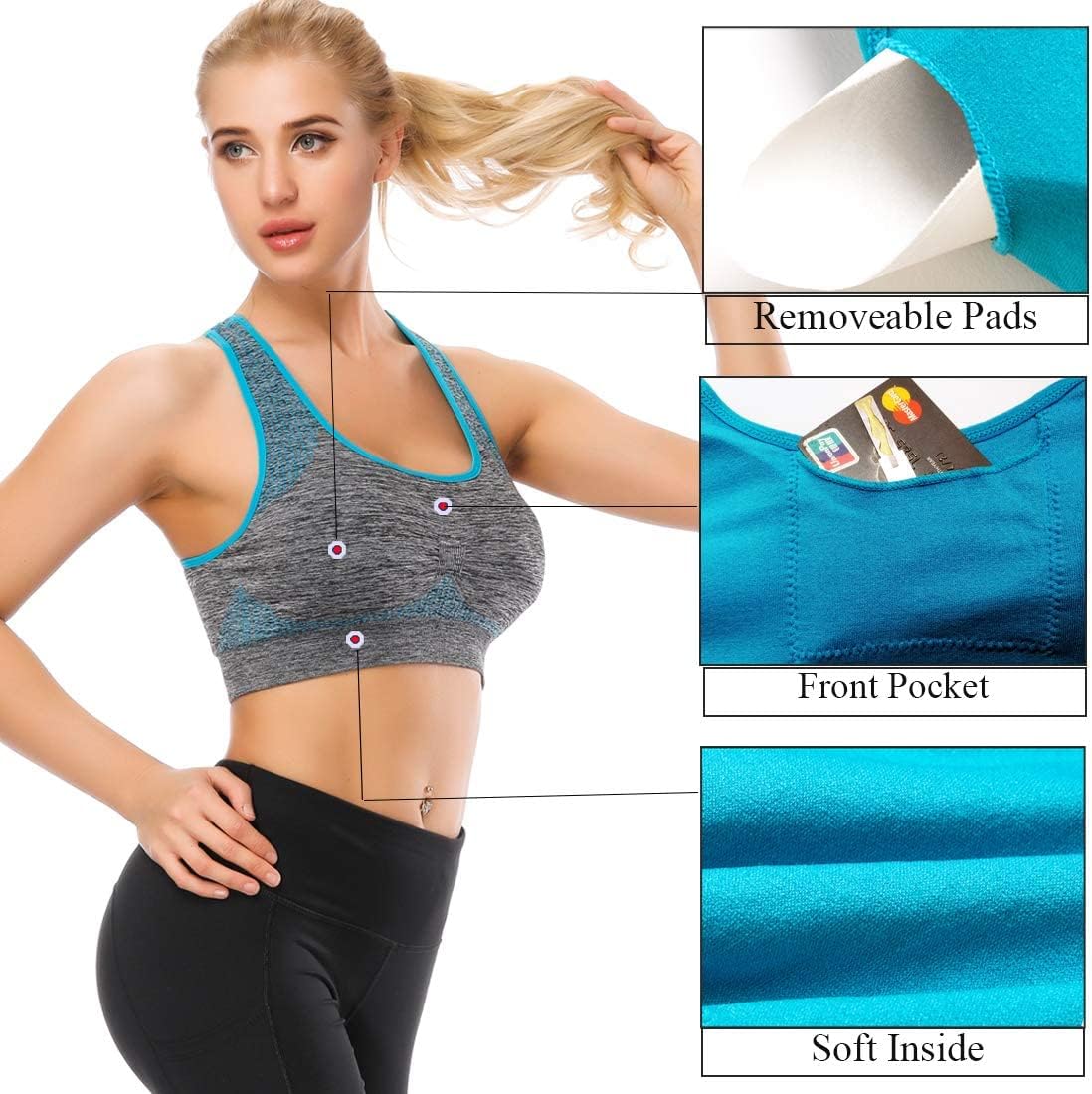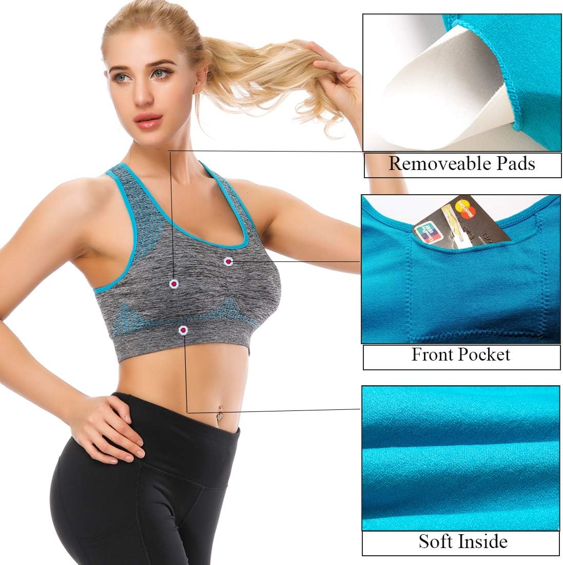TOBWIZU Sports Bras for Women, Medium Support Yoga Gym Activewear Bras with Pocket