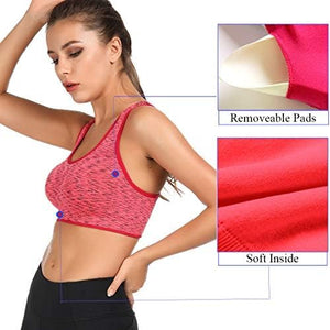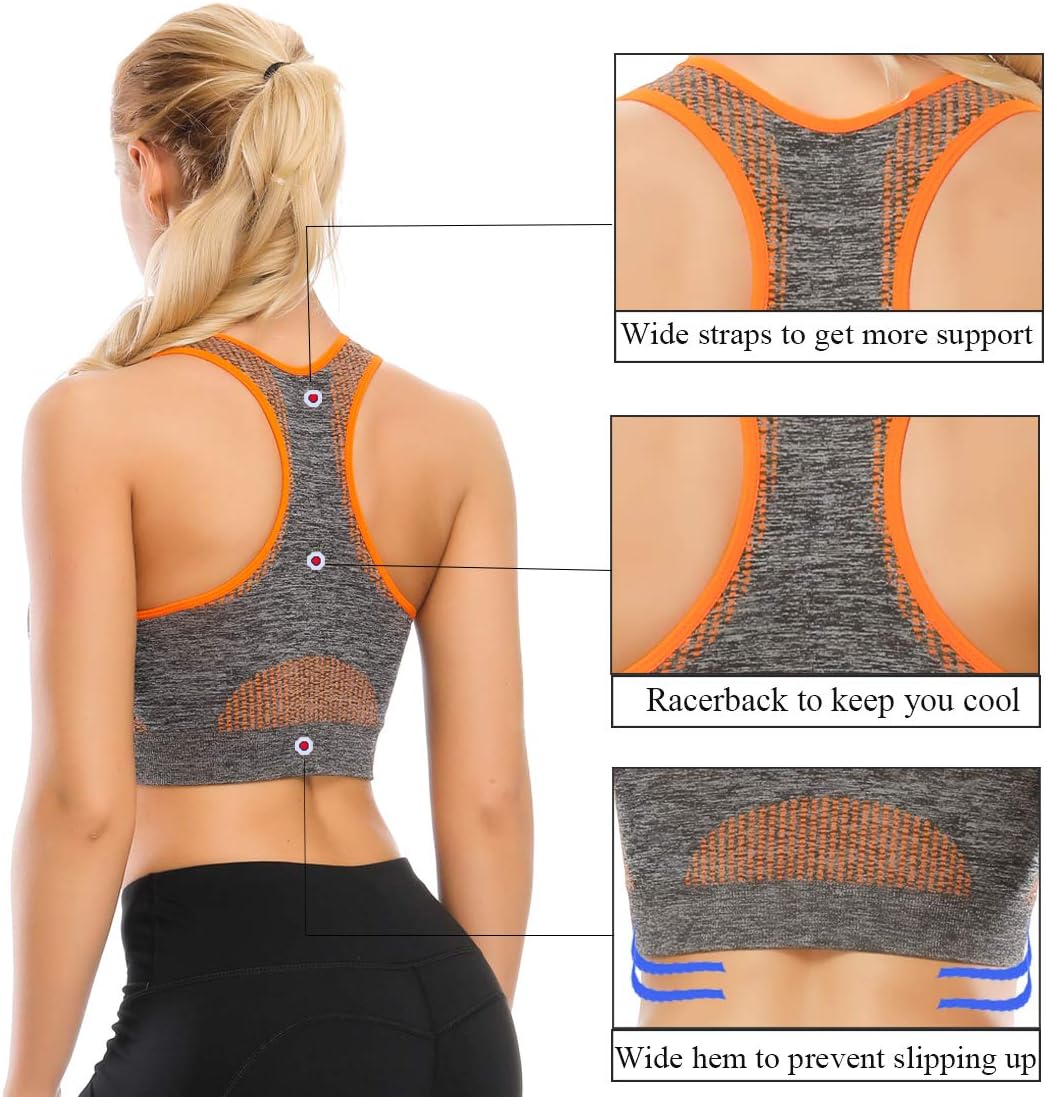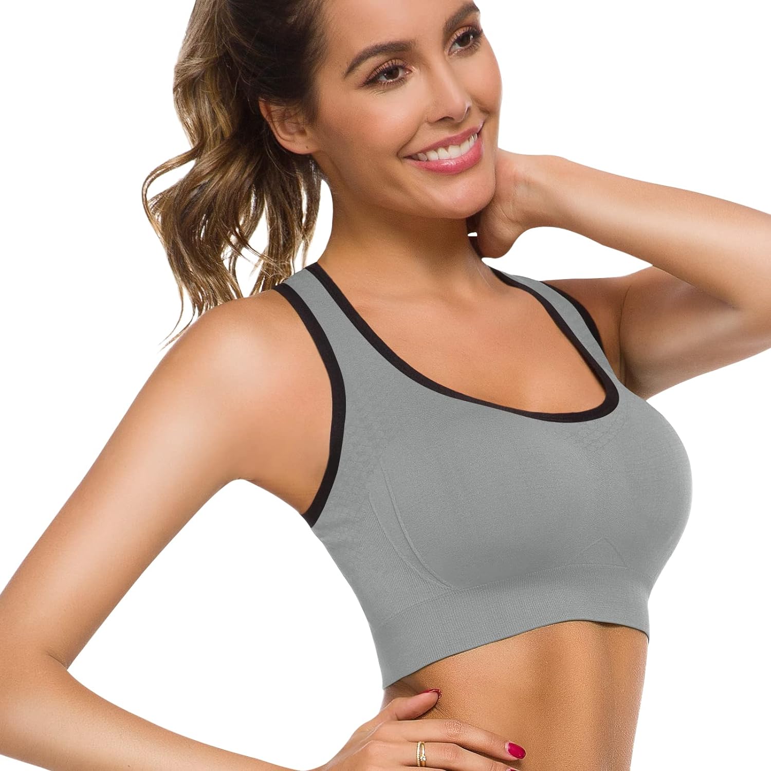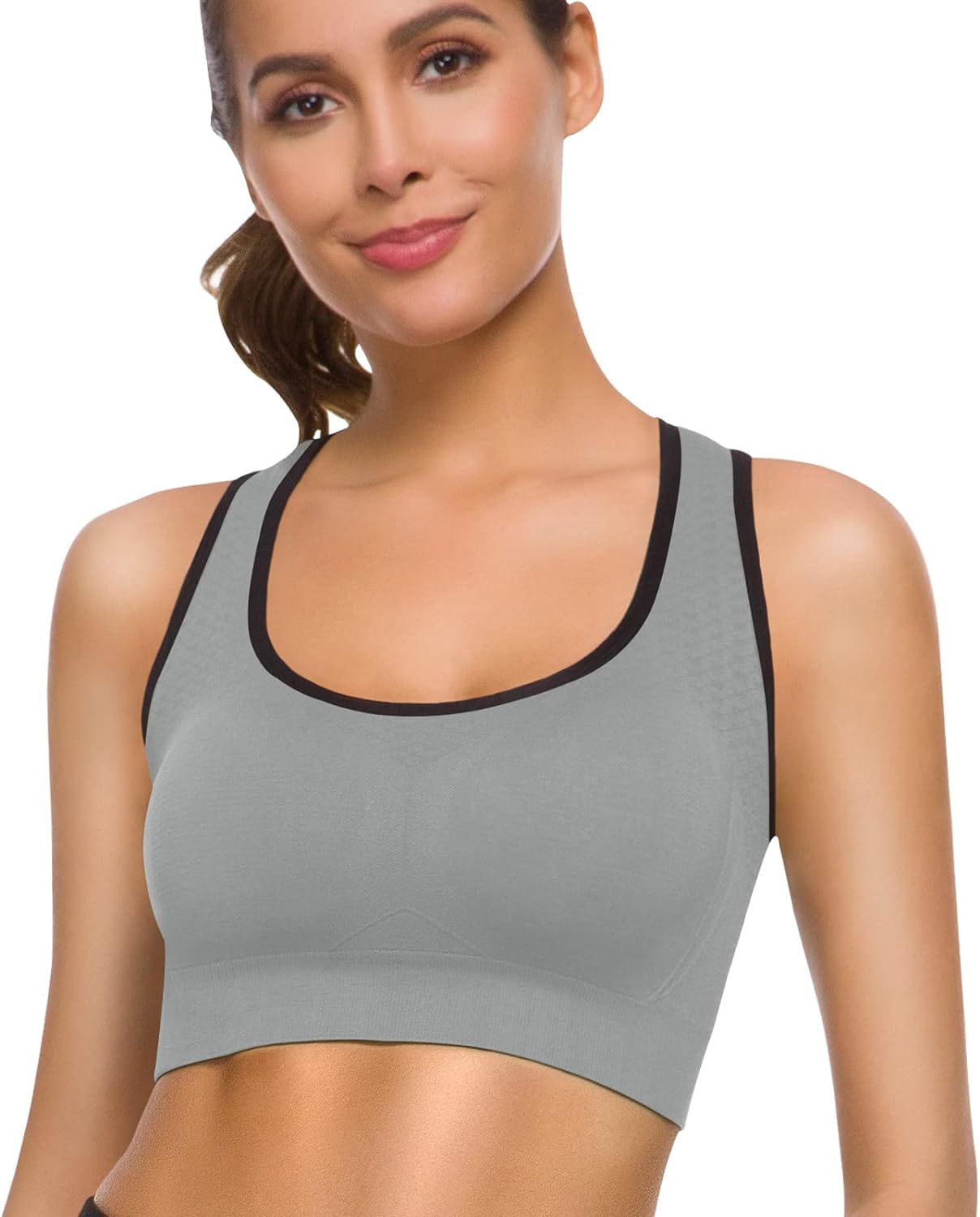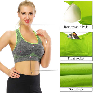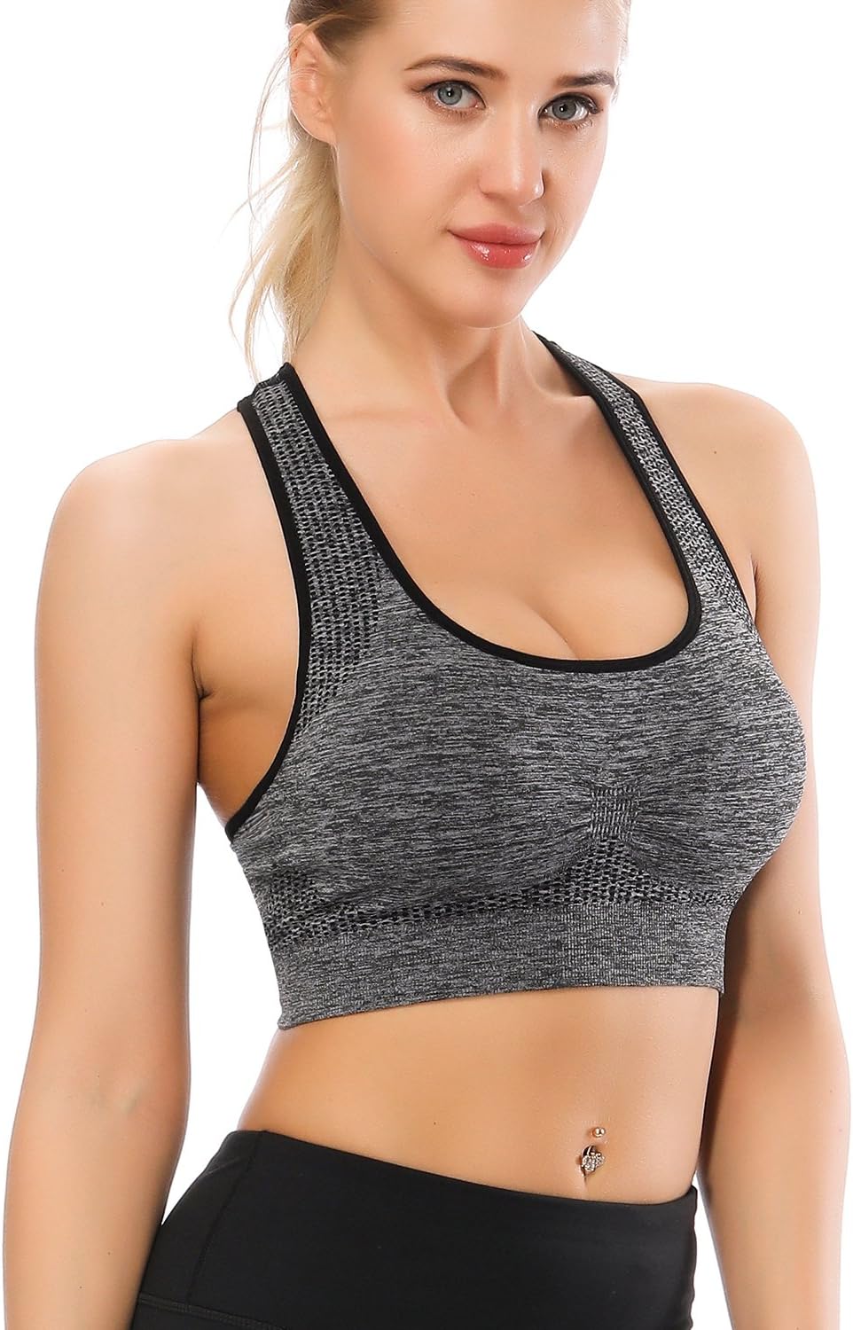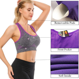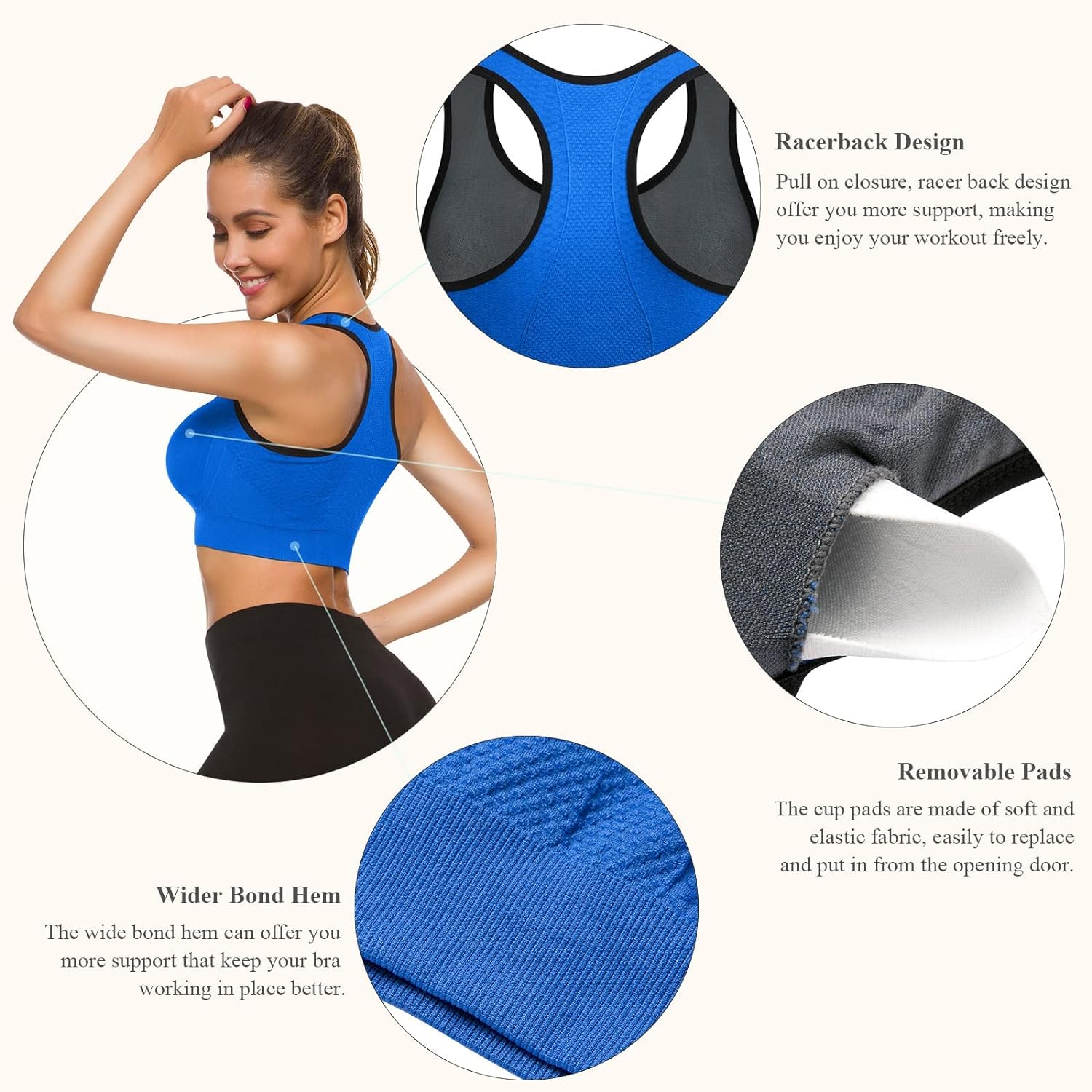 TOBWIZU Sports Bras for Women, Medium Support Yoga Gym Activewear Bras with Pocket