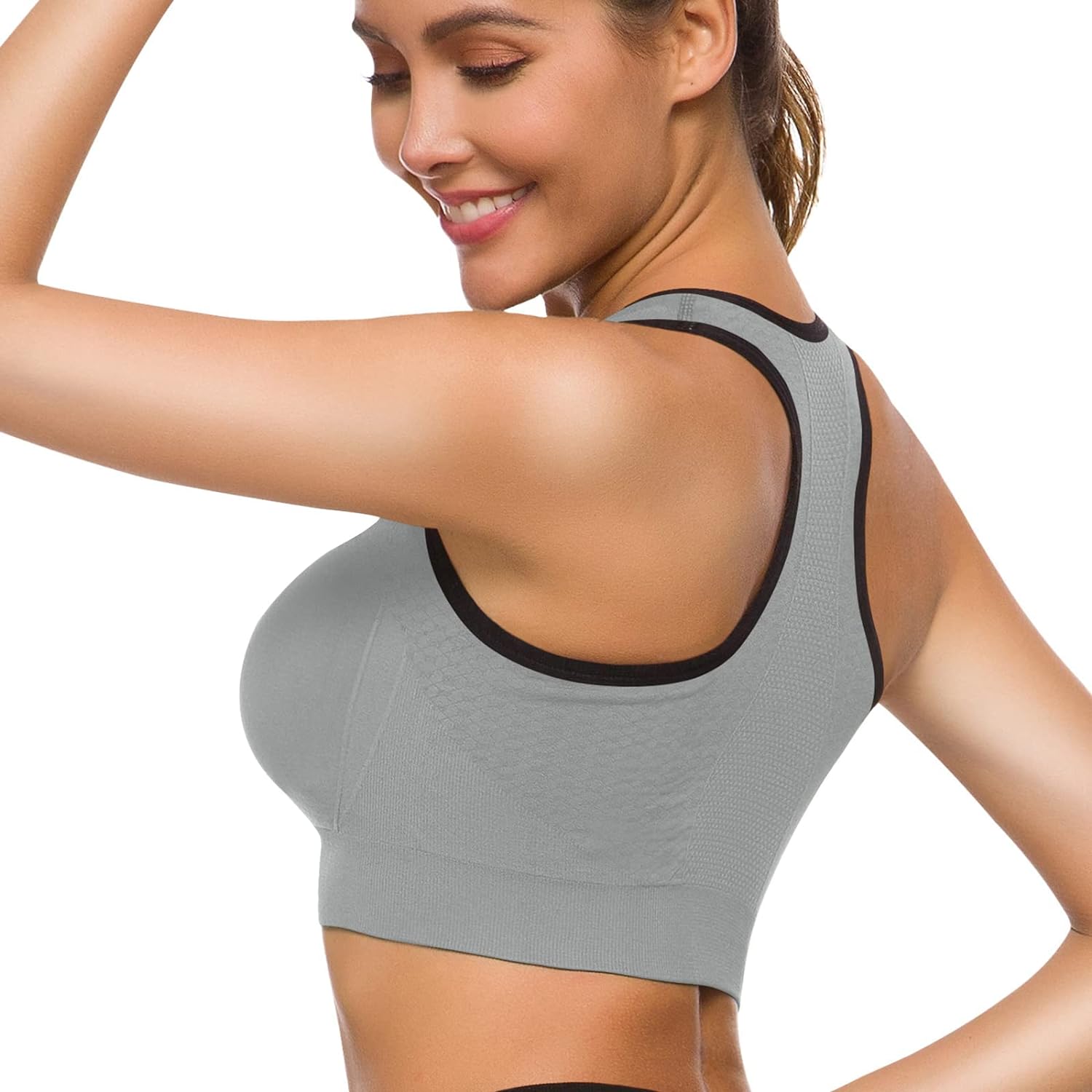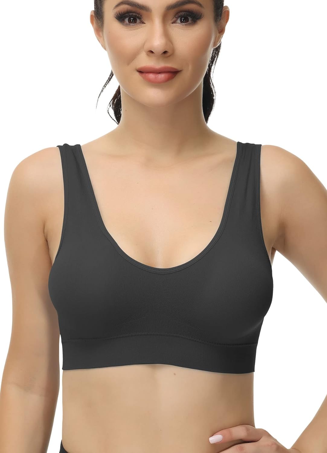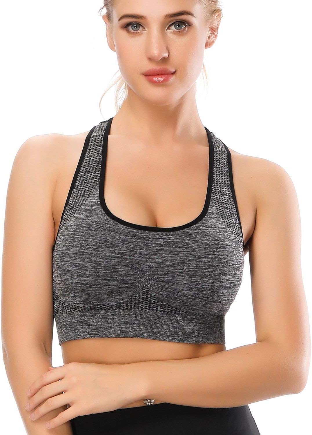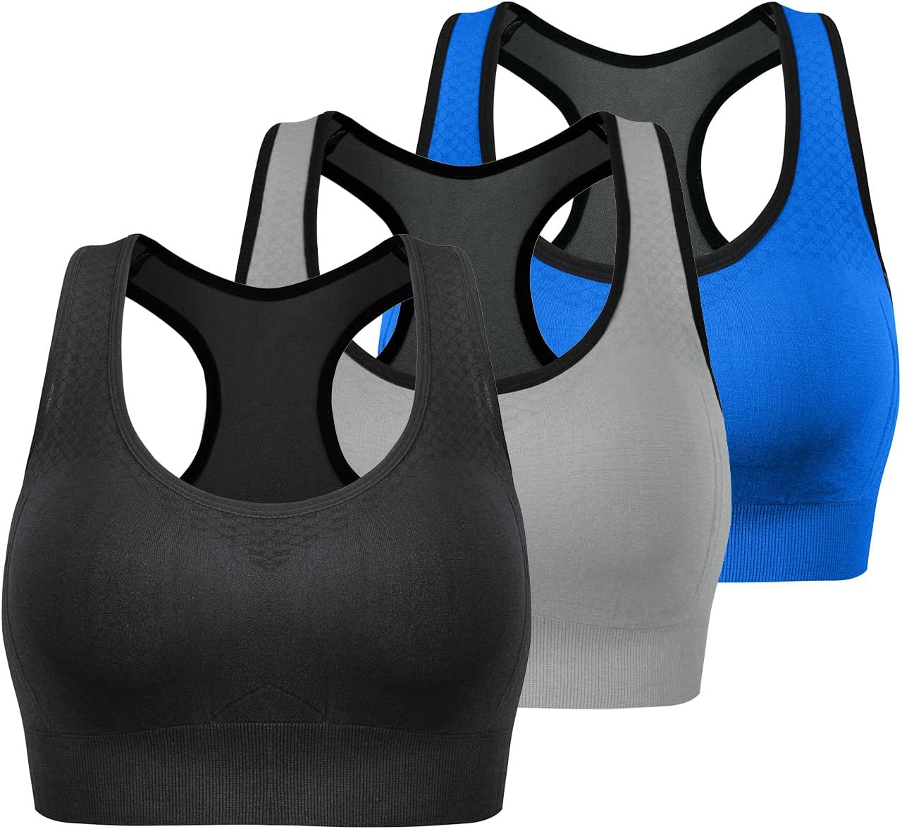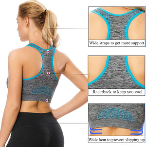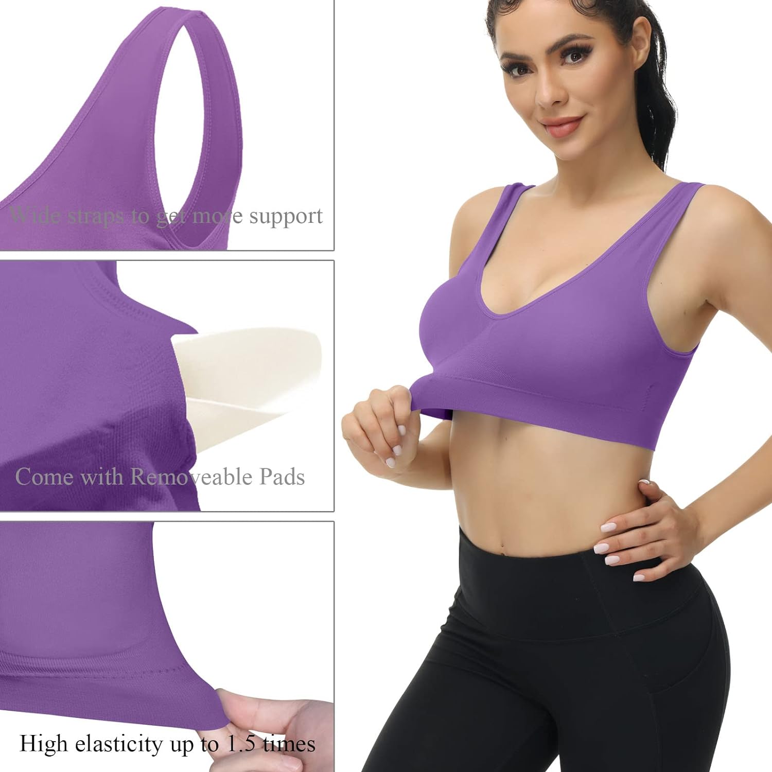 TOBWIZU Sports Bras for Women, Medium Support Yoga Gym Activewear Bras with Pocket