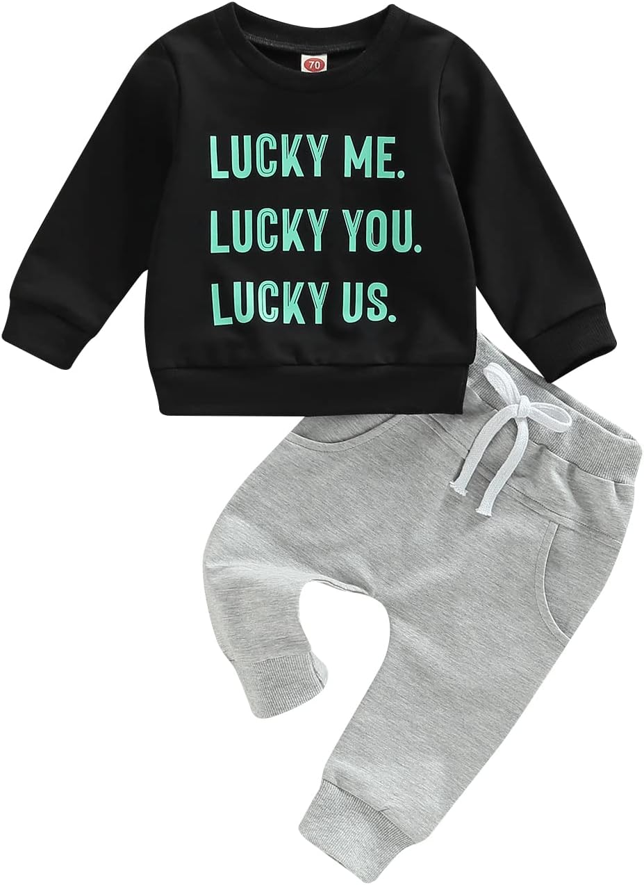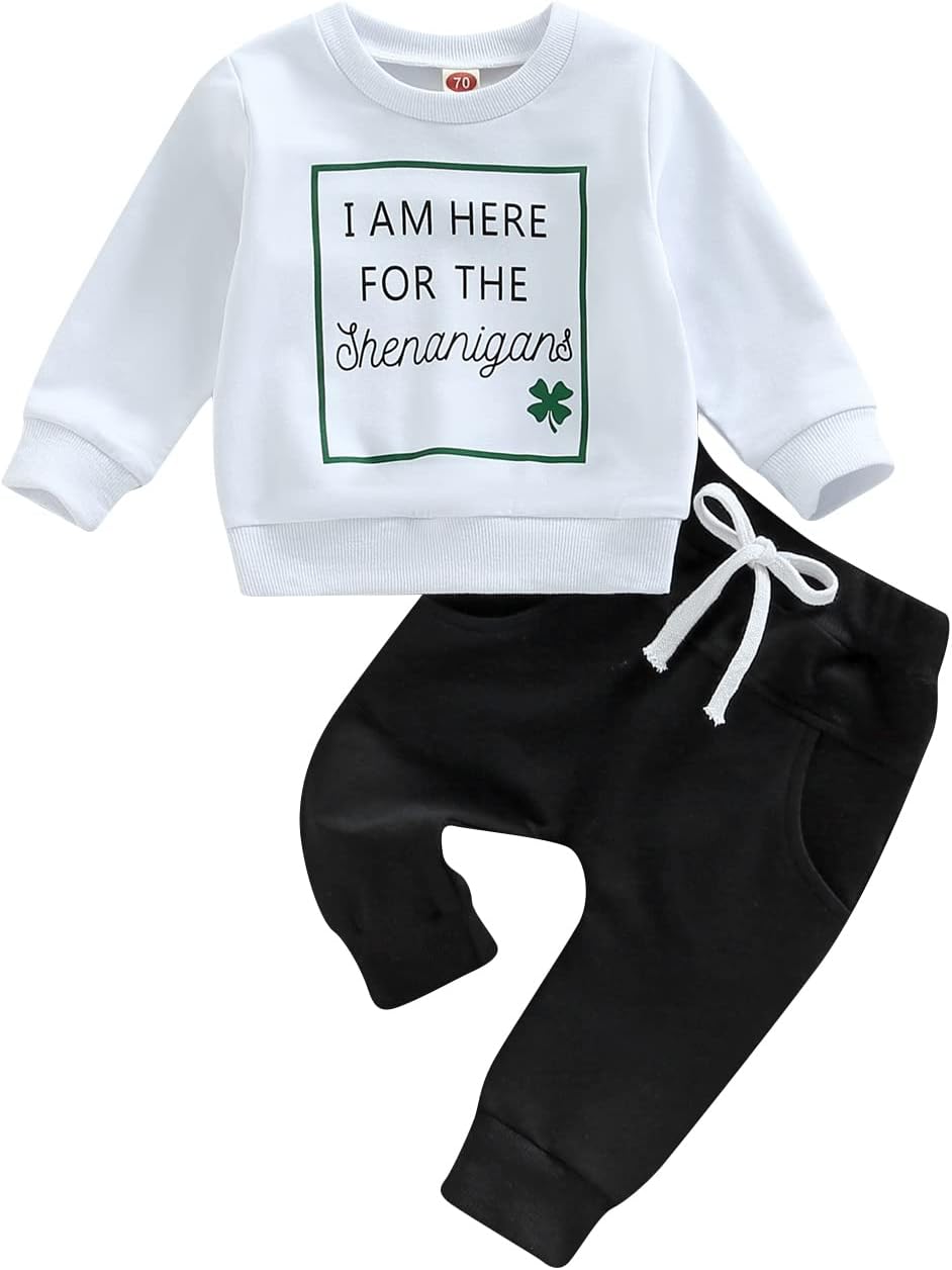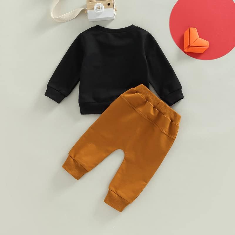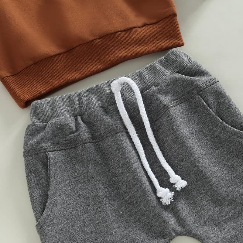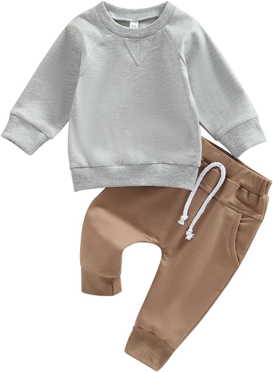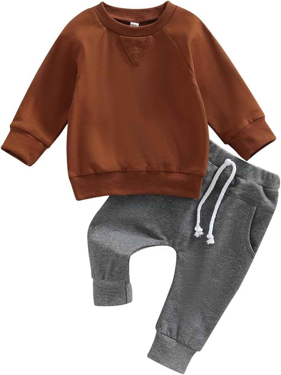 Toddler Baby Boy Clothes Set Solid Color Long Sleeve Crewneck Sweatshirt Top Casual Pants Set Cute Fall Winter Outfits