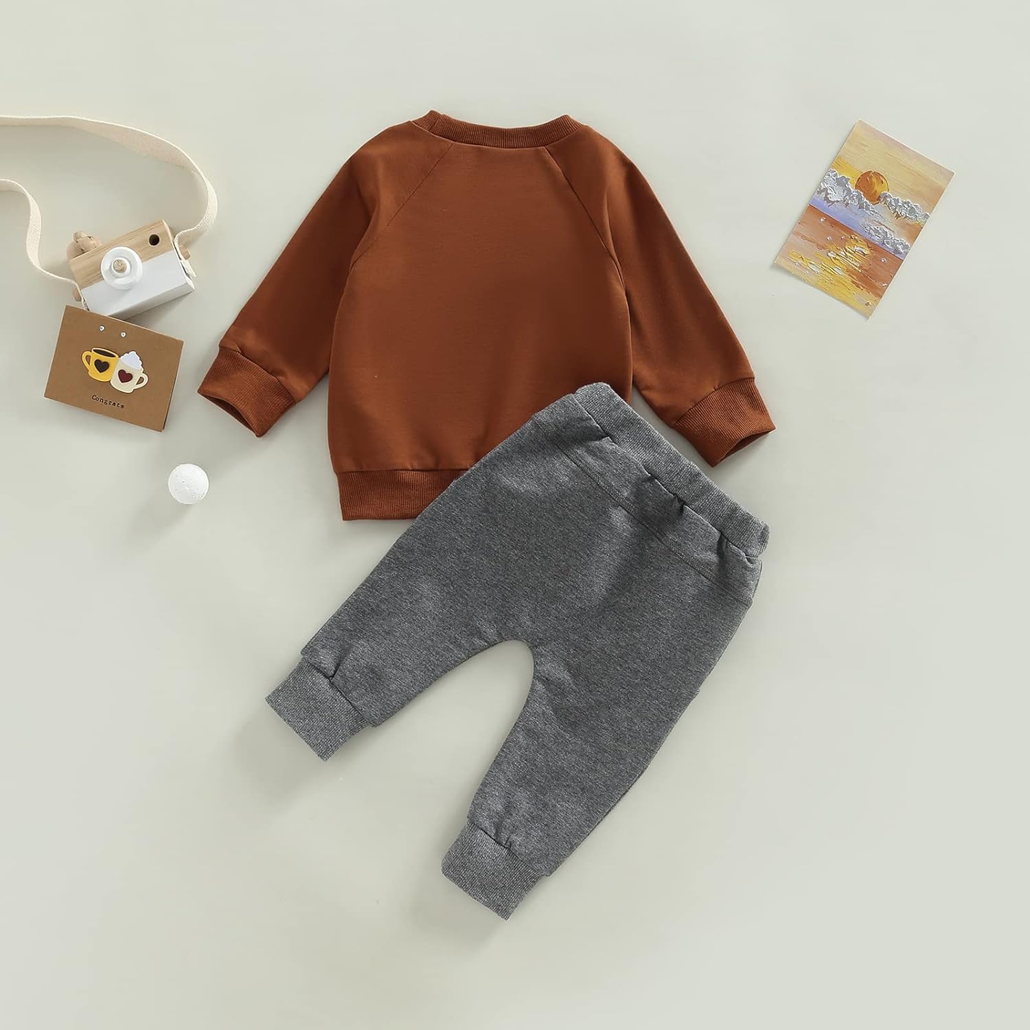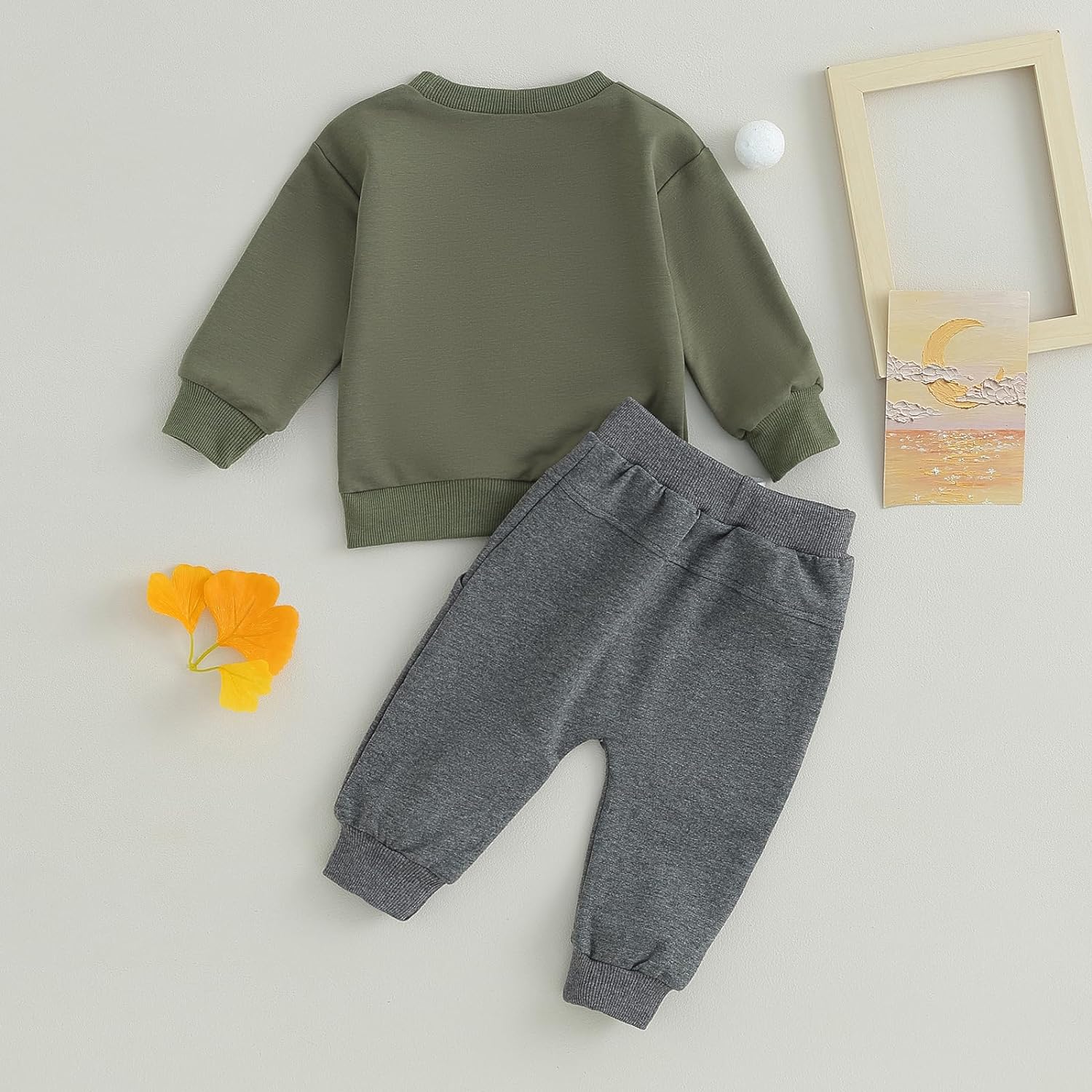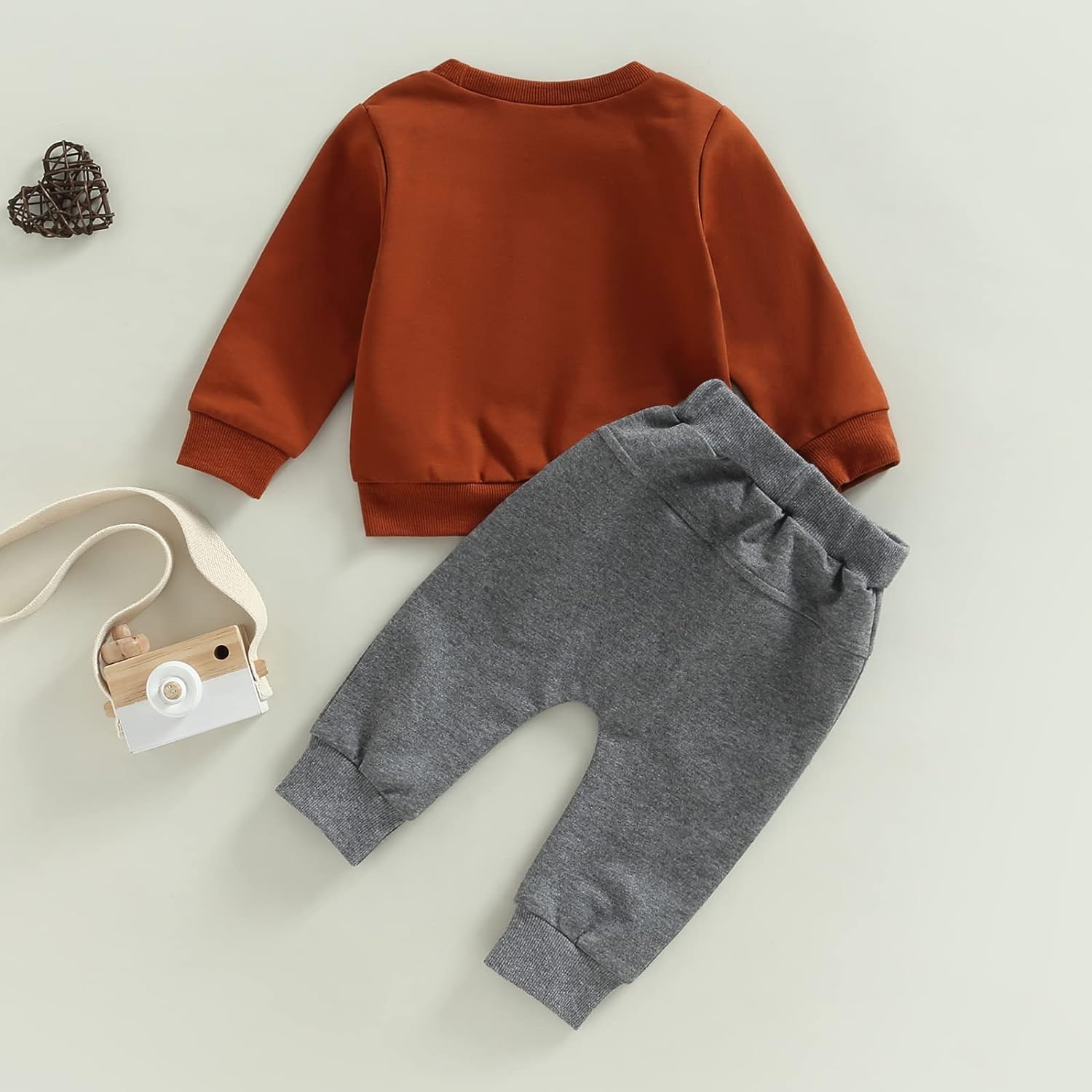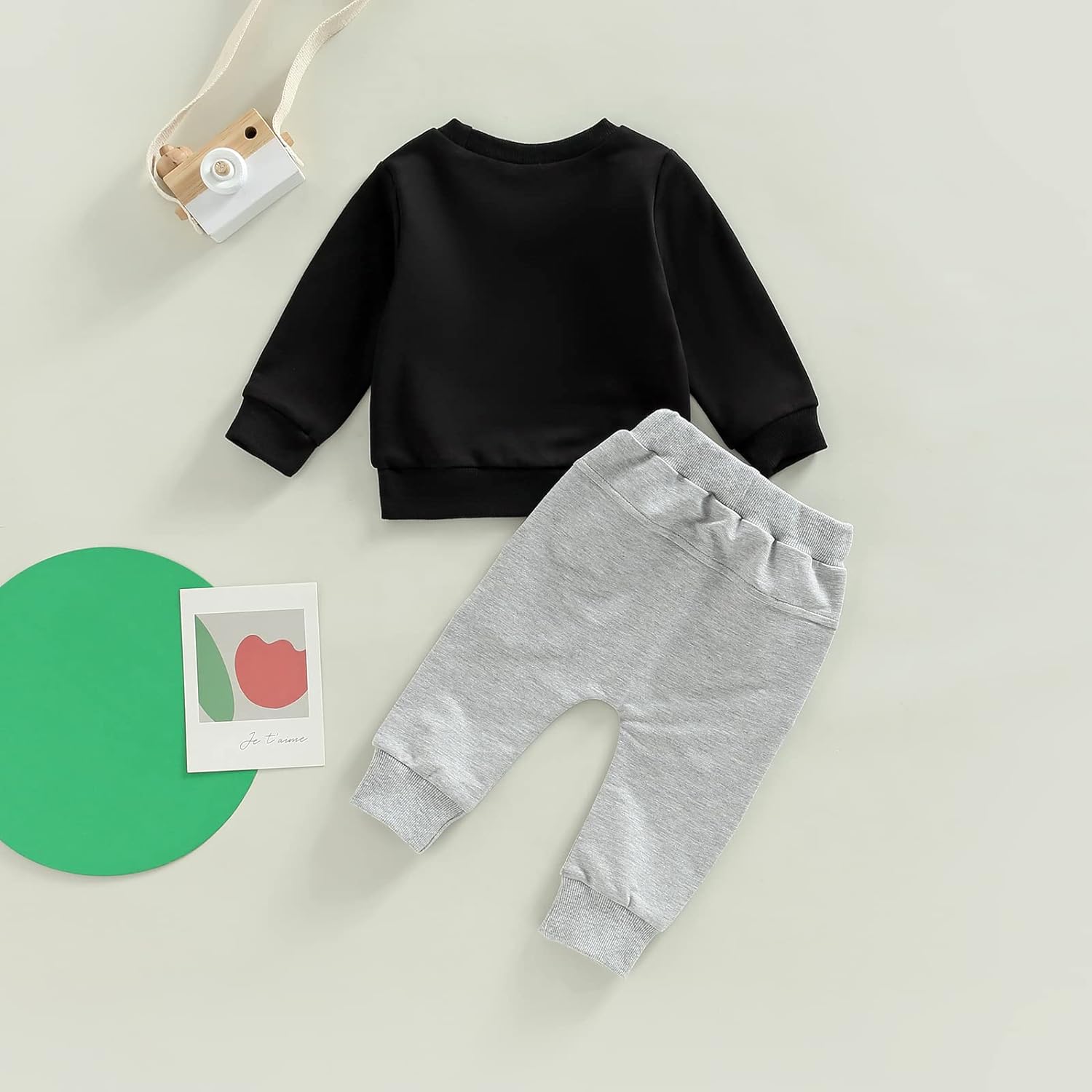 Toddler Baby Boy Clothes Set Solid Color Long Sleeve Crewneck Sweatshirt Top Casual Pants Set Cute Fall Winter Outfits