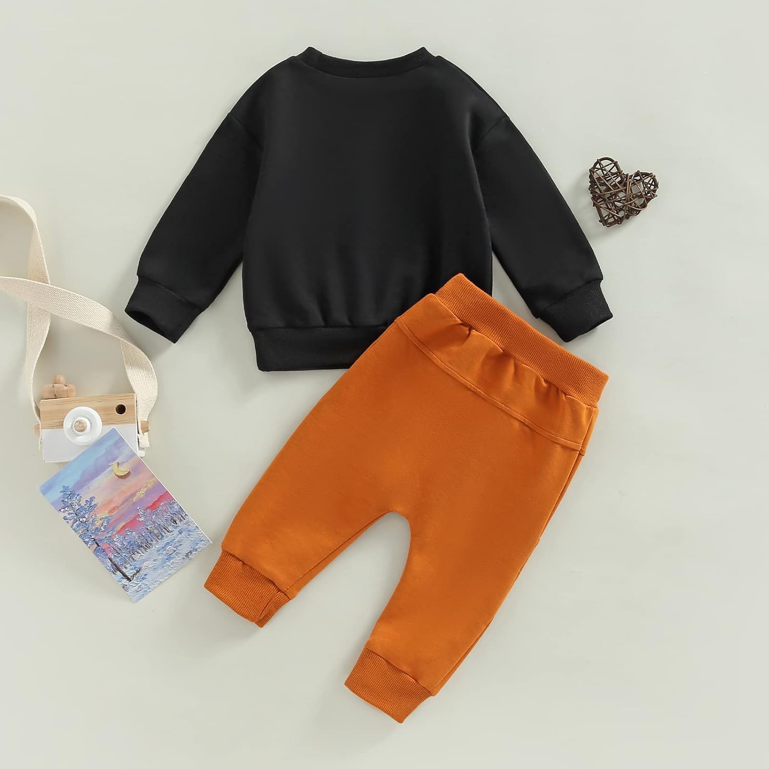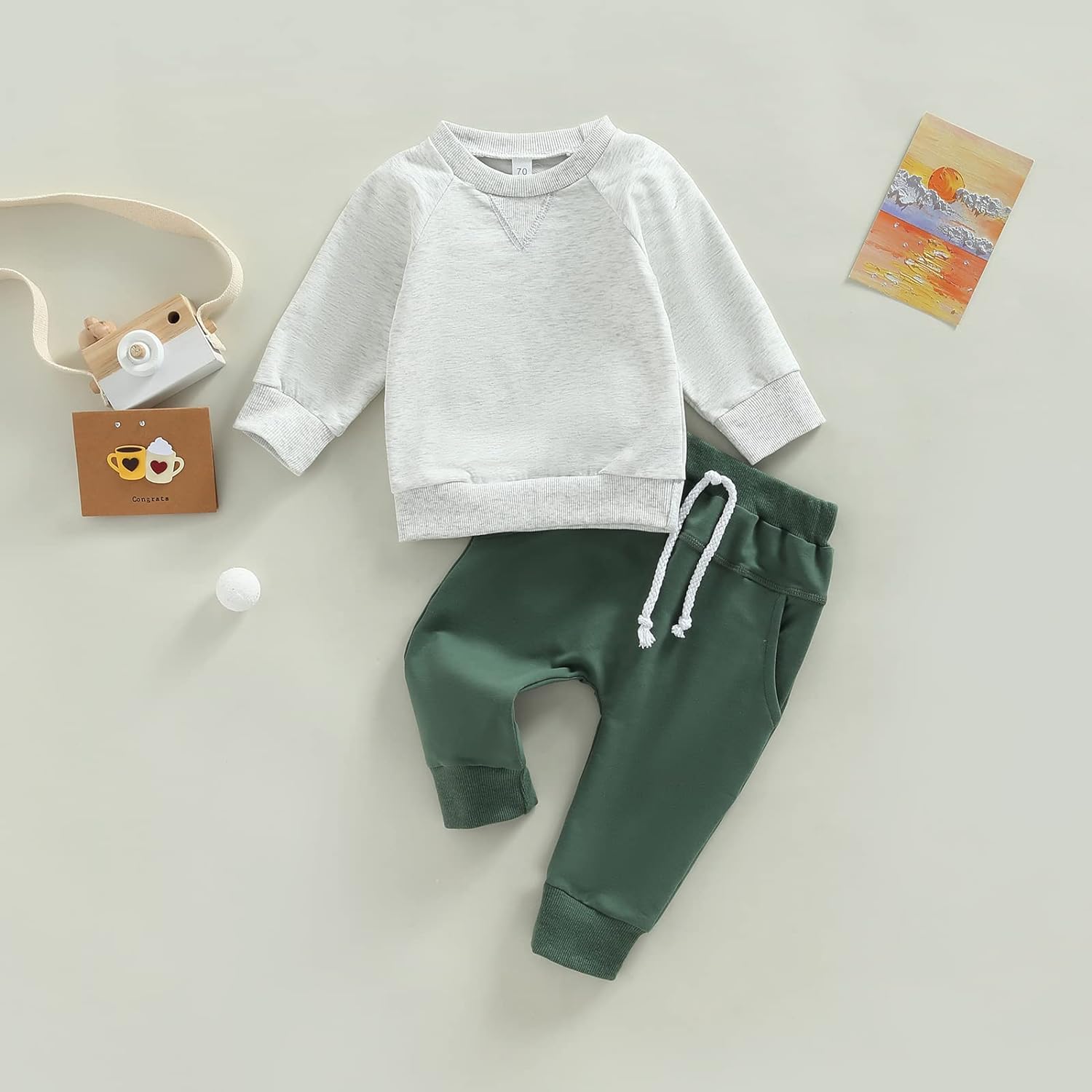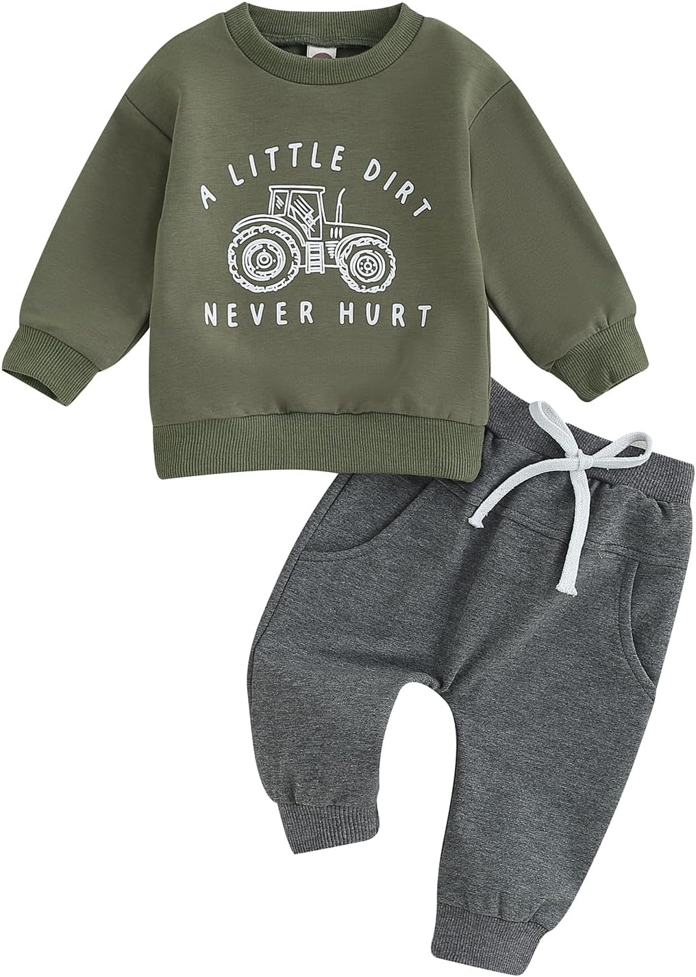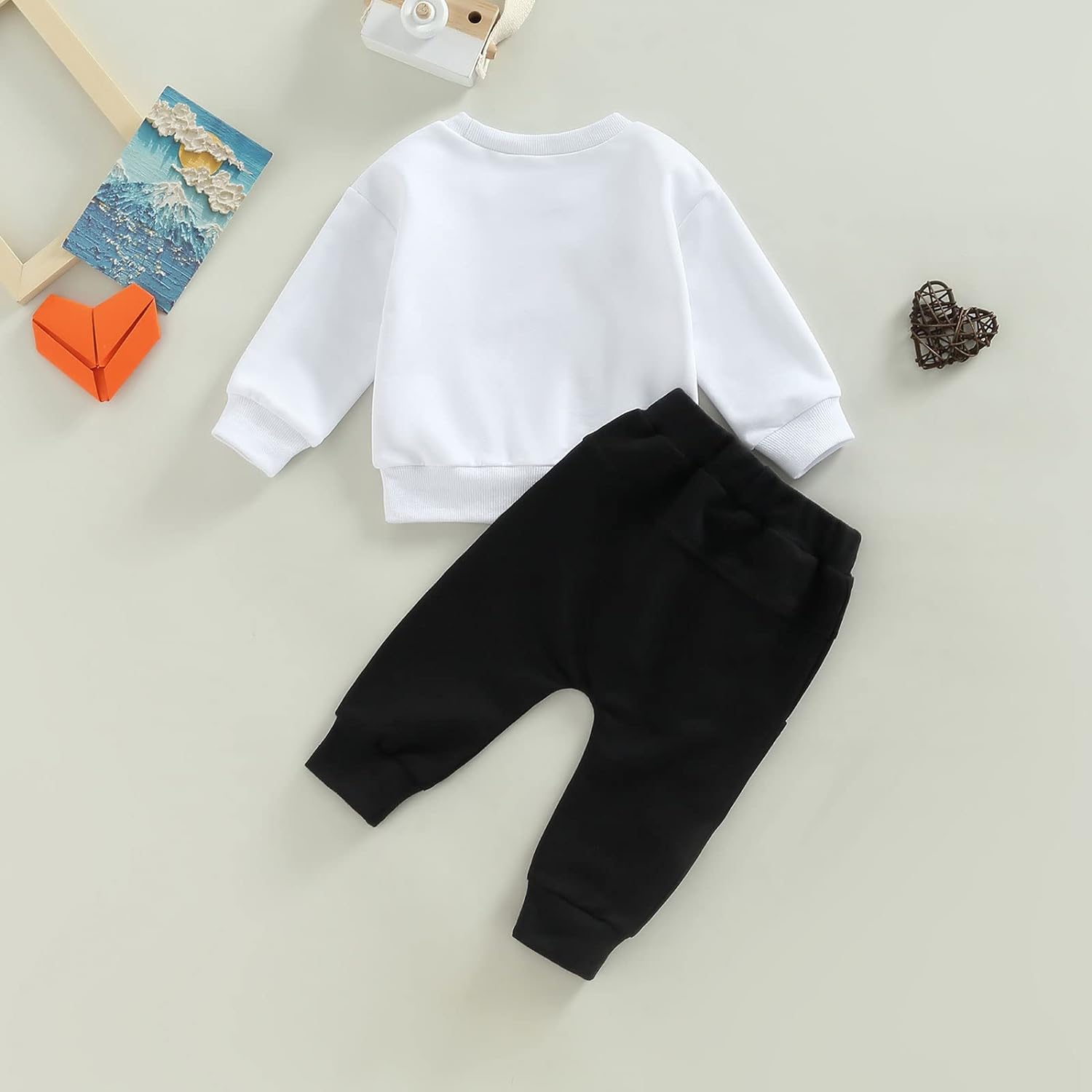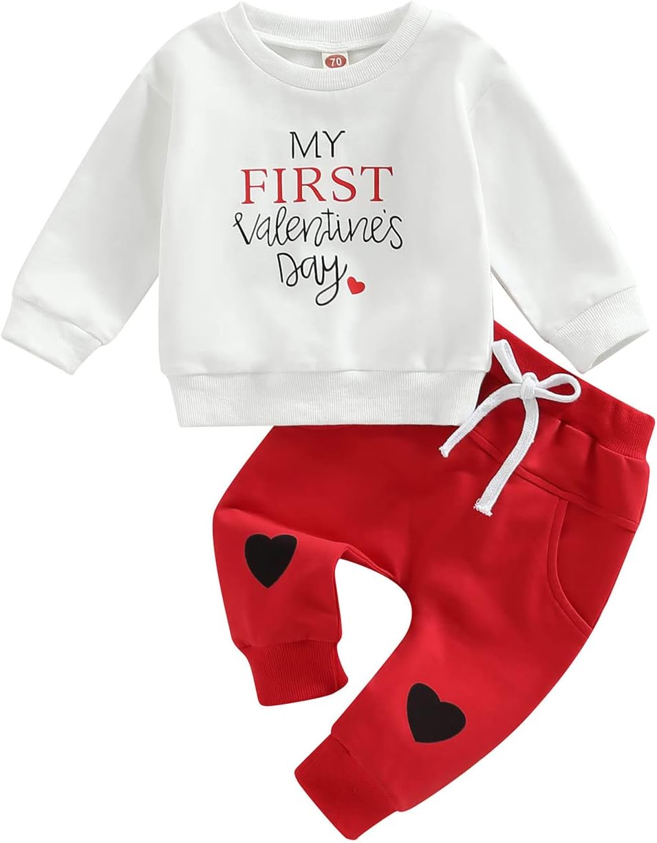 Toddler Baby Boy Clothes Set Solid Color Long Sleeve Crewneck Sweatshirt Top Casual Pants Set Cute Fall Winter Outfits