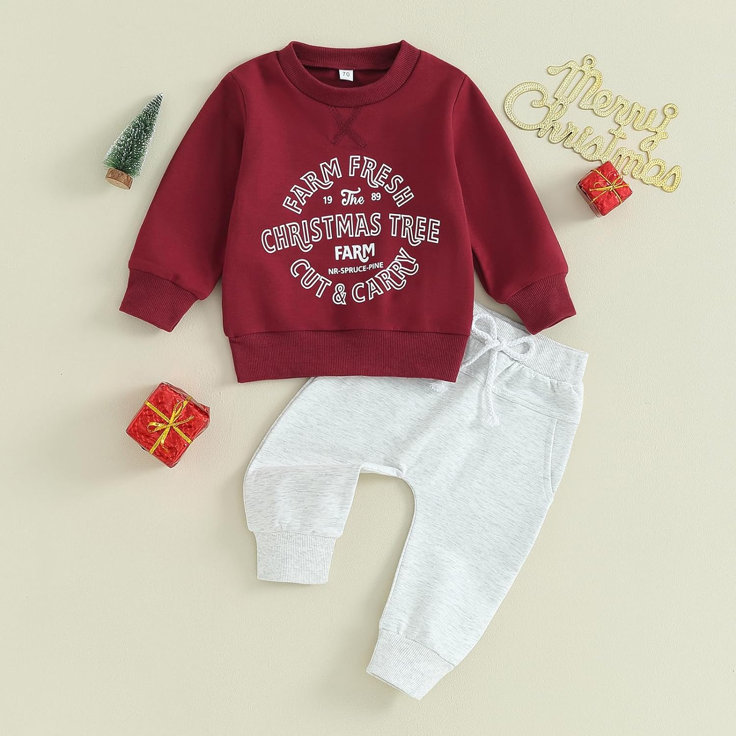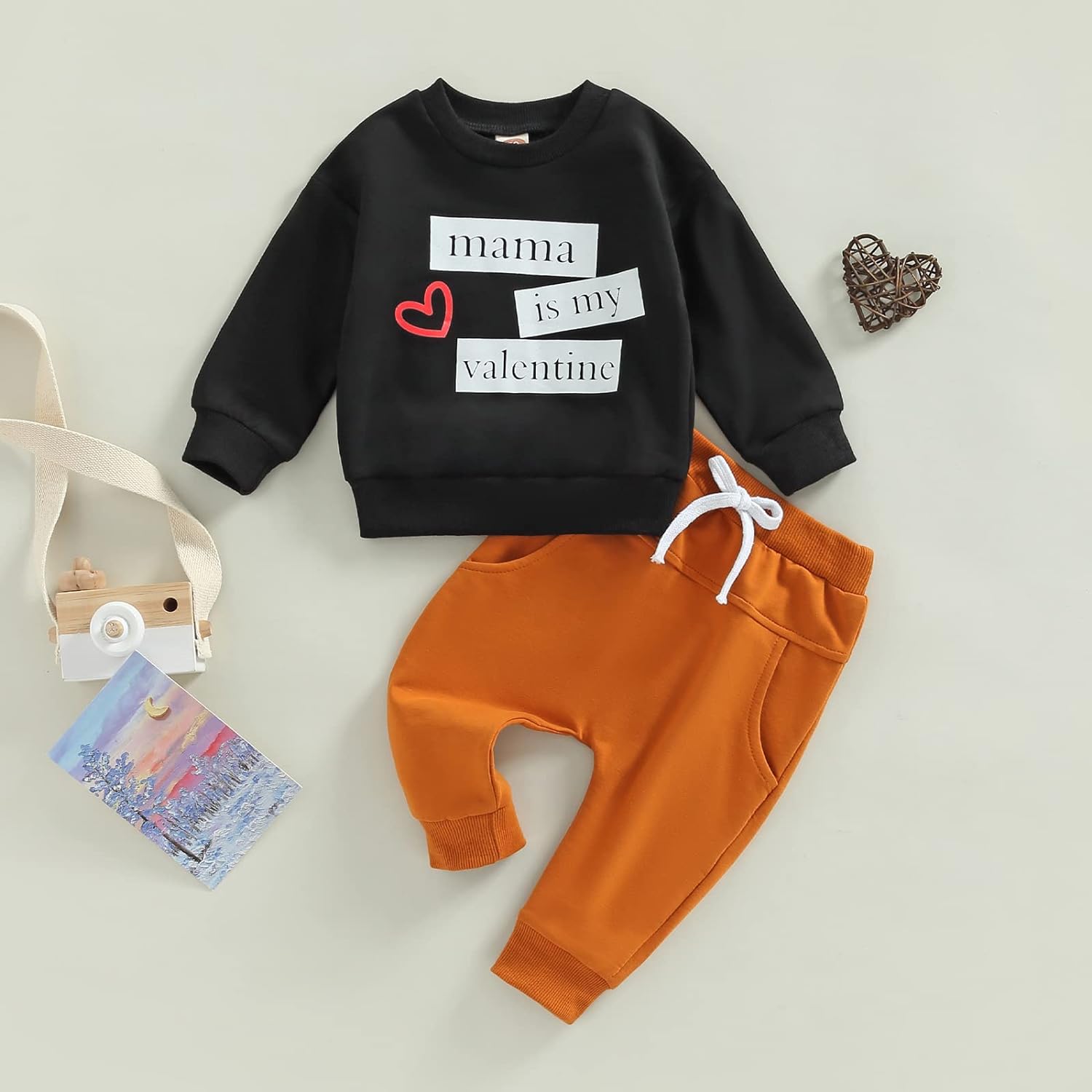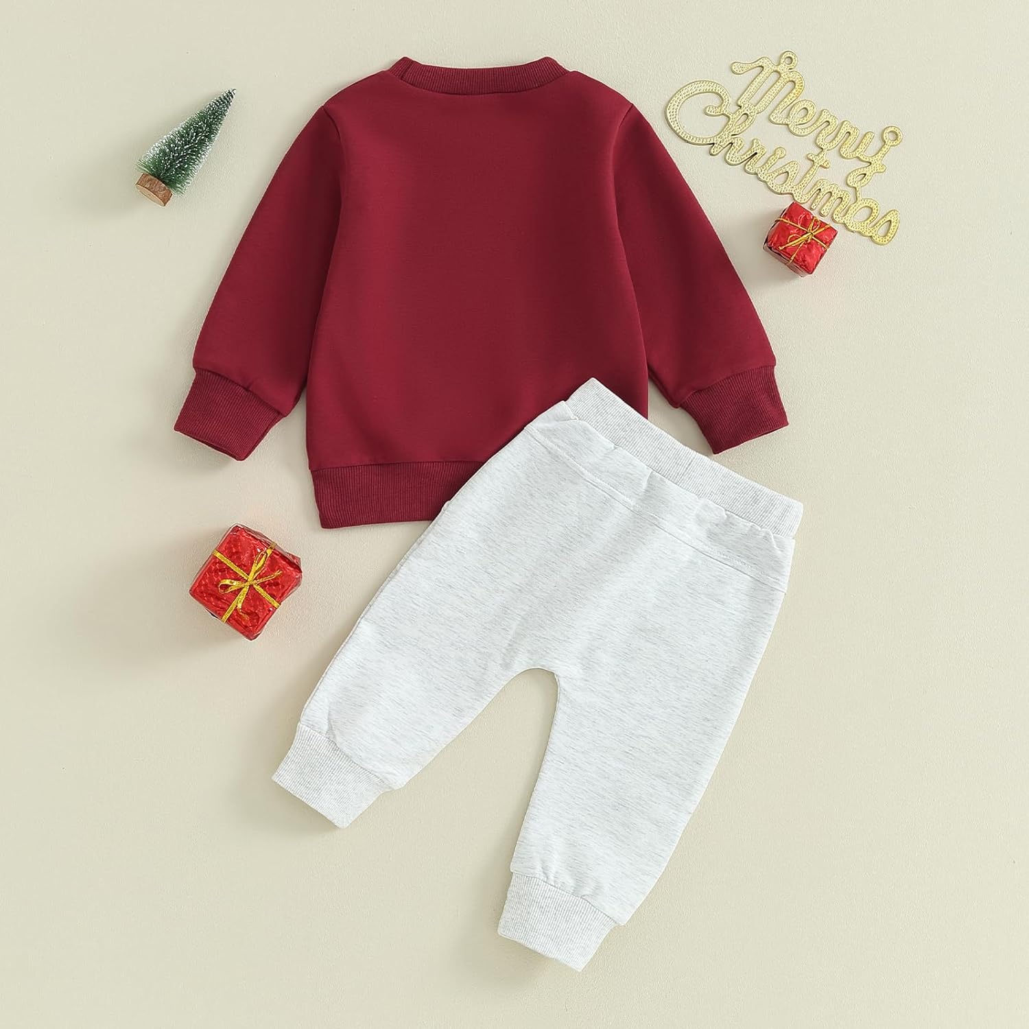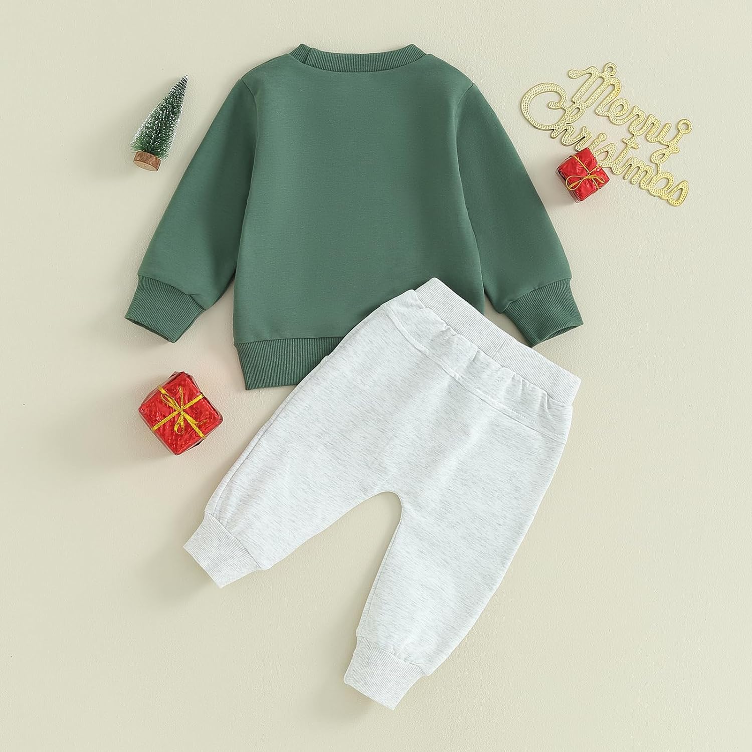 Toddler Baby Boy Clothes Set Solid Color Long Sleeve Crewneck Sweatshirt Top Casual Pants Set Cute Fall Winter Outfits
