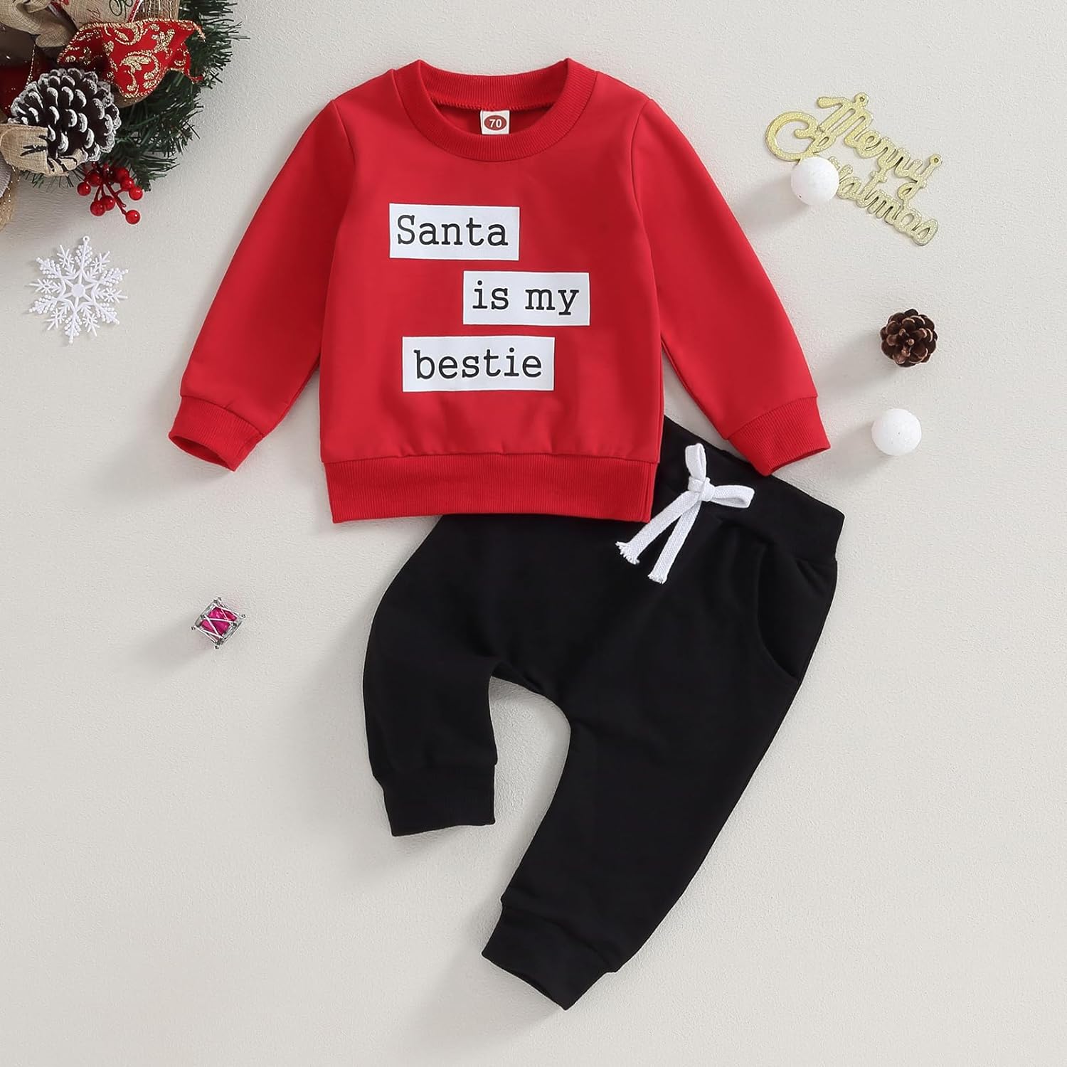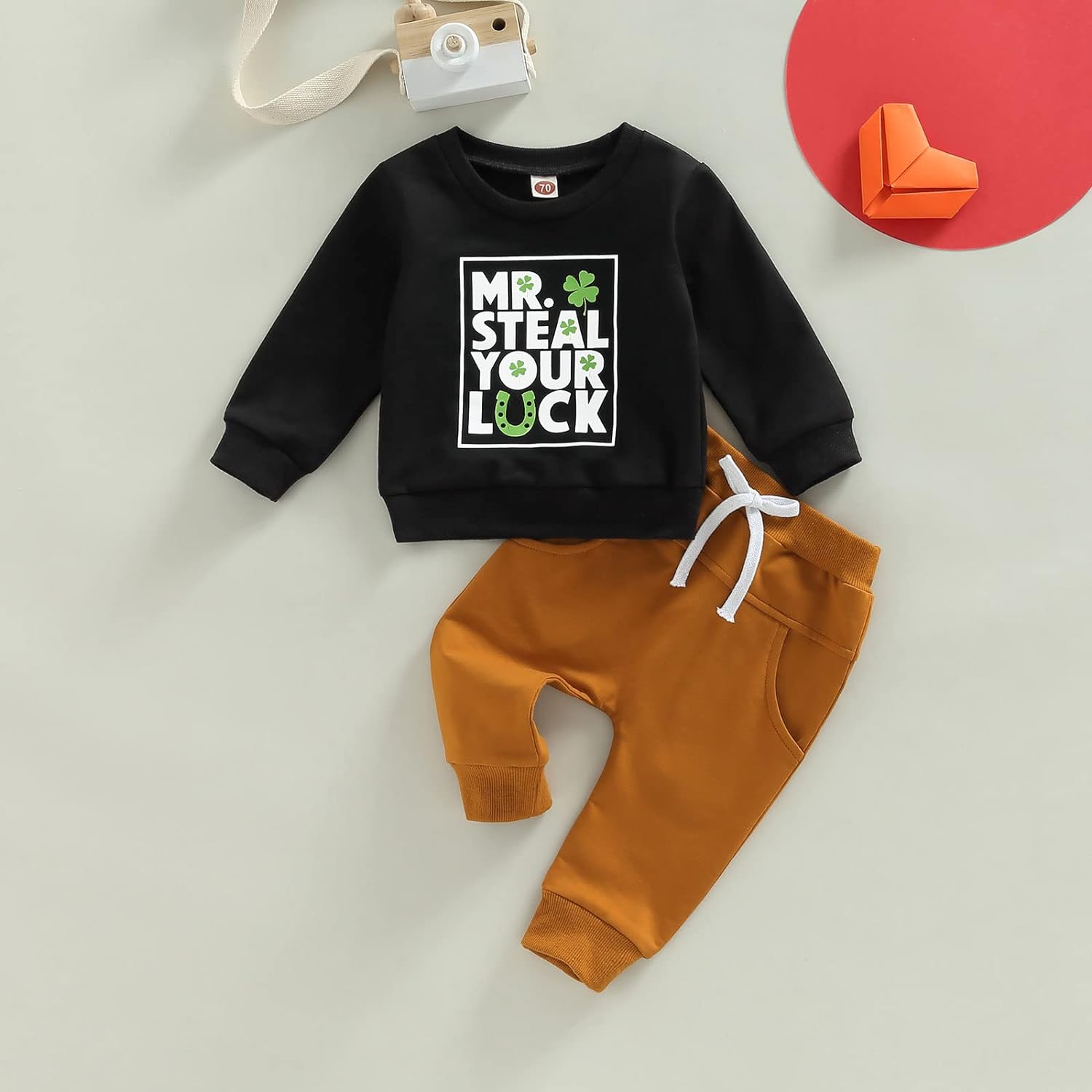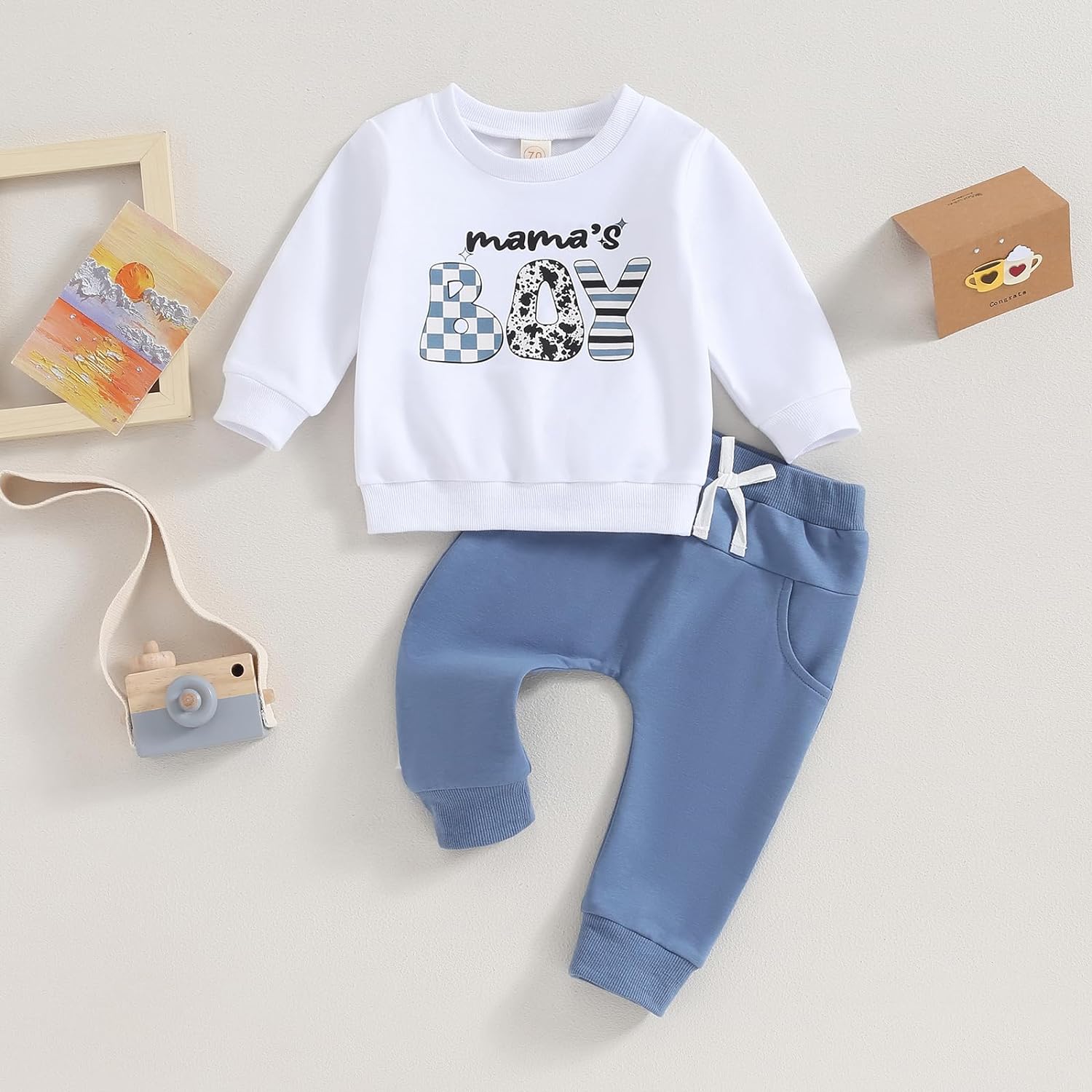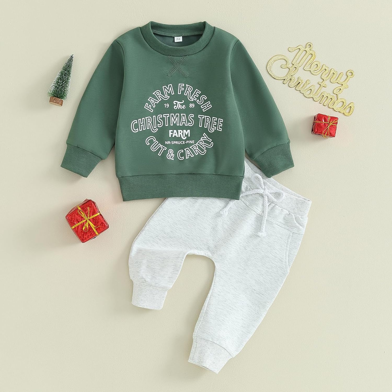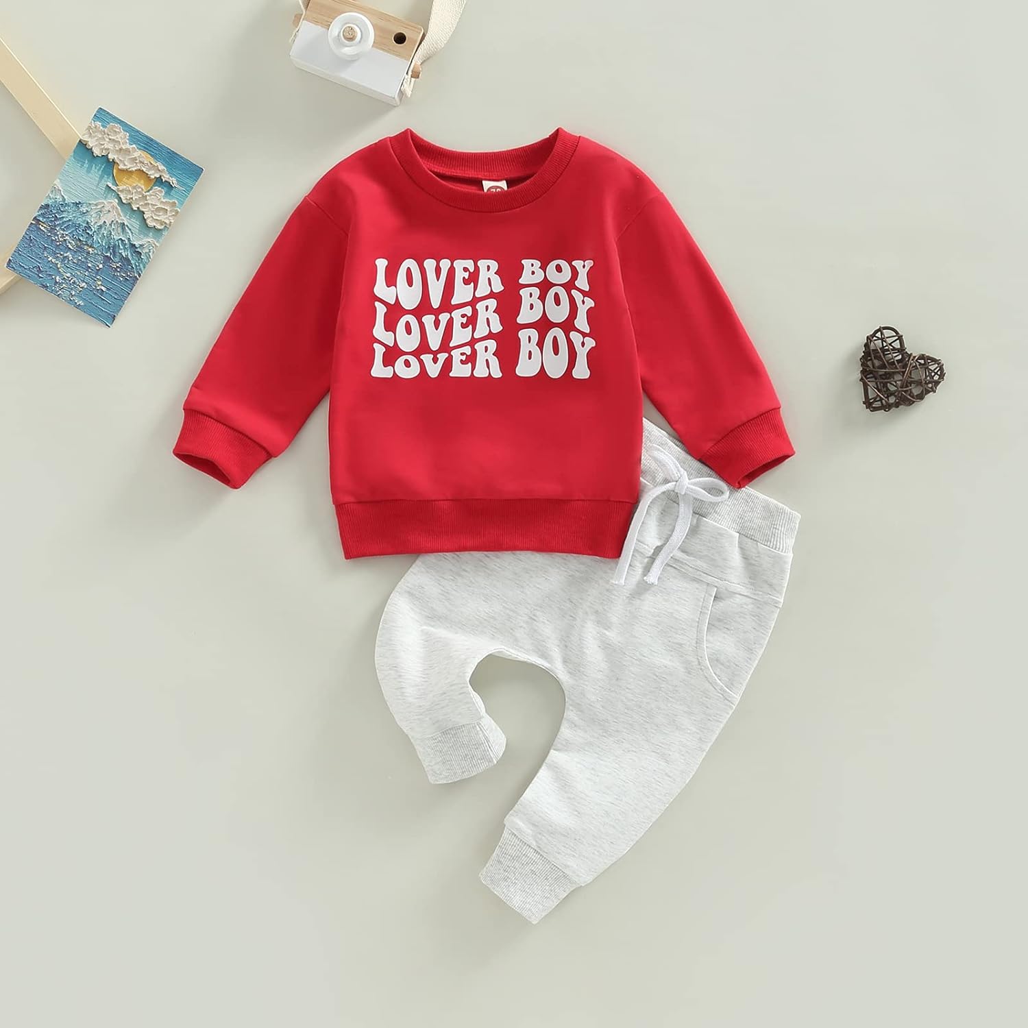 Toddler Baby Boy Clothes Set Solid Color Long Sleeve Crewneck Sweatshirt Top Casual Pants Set Cute Fall Winter Outfits