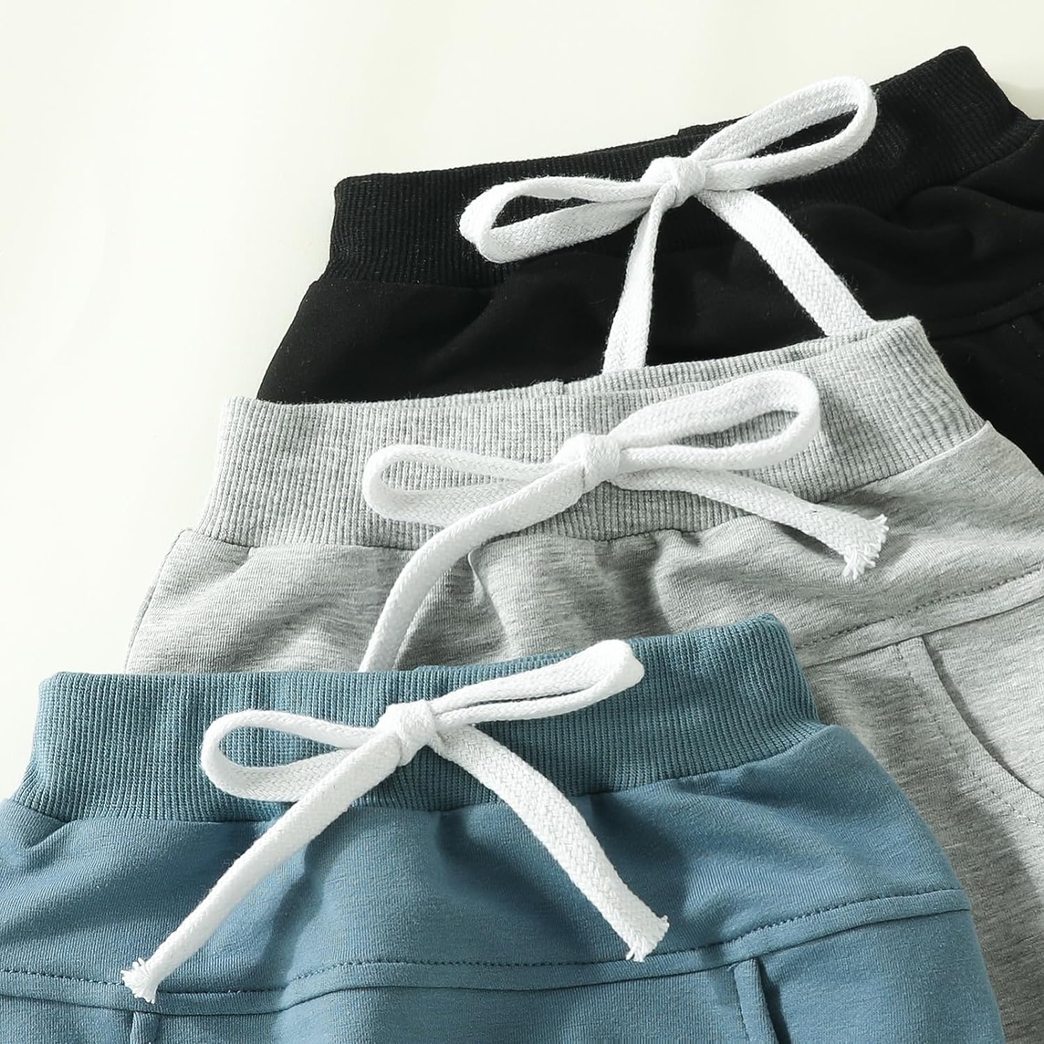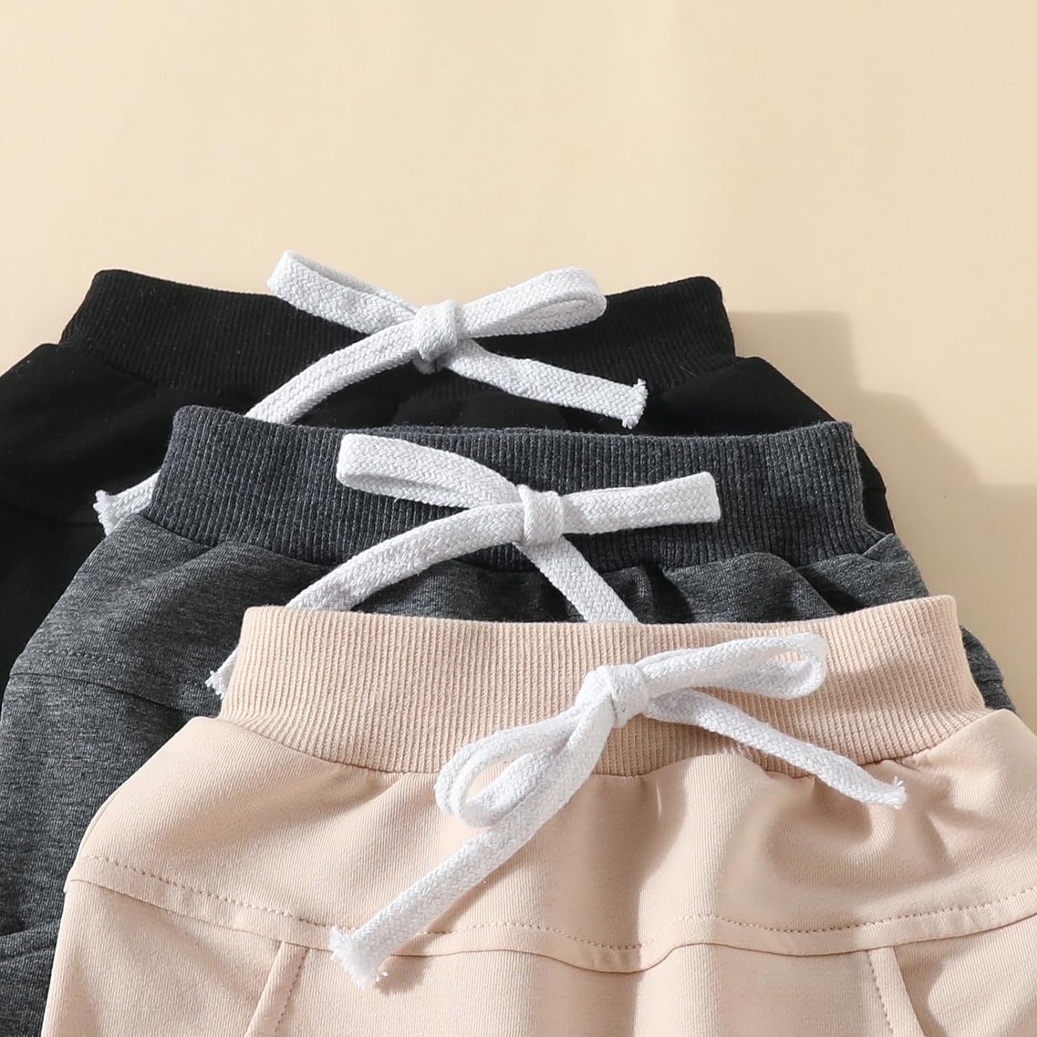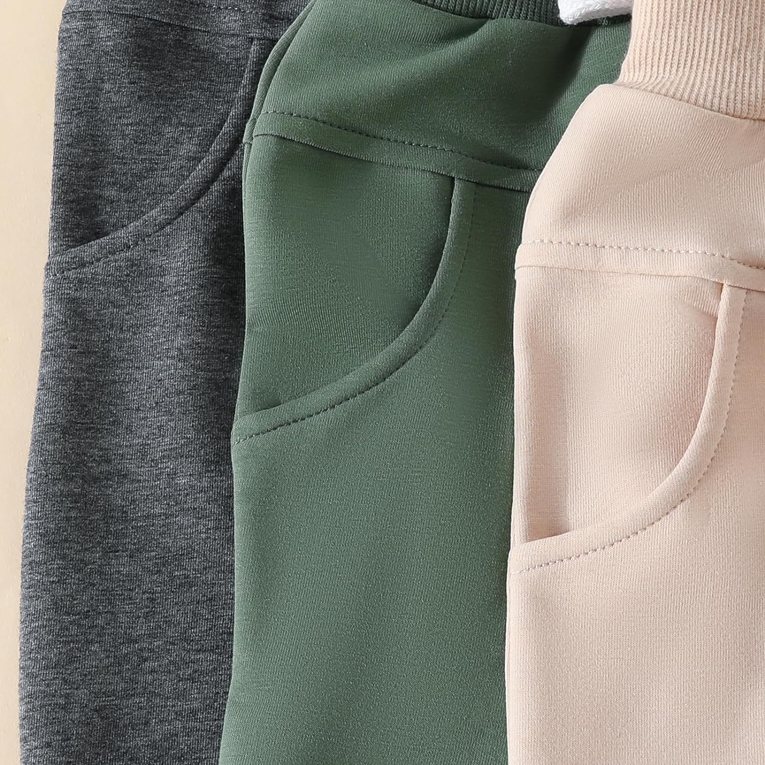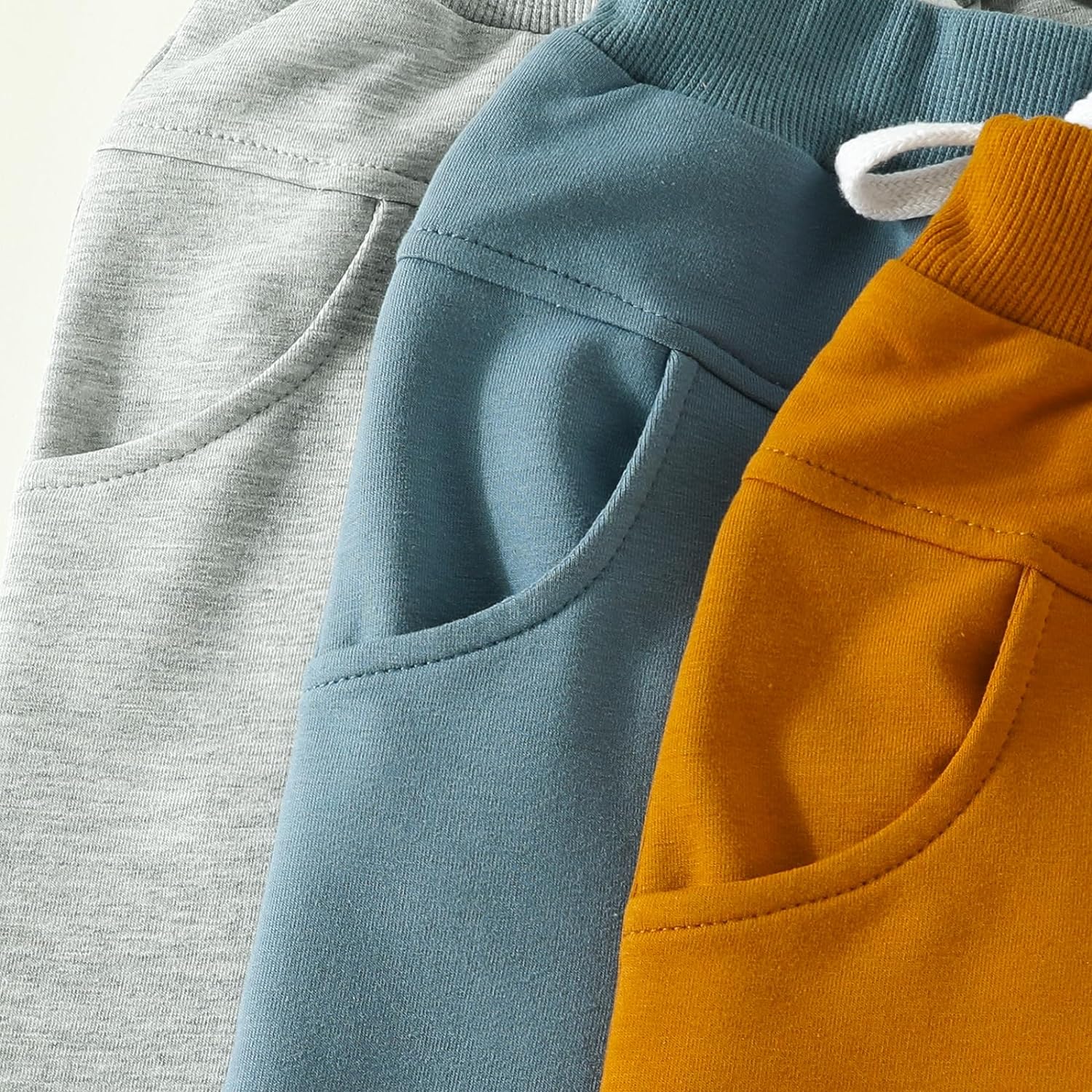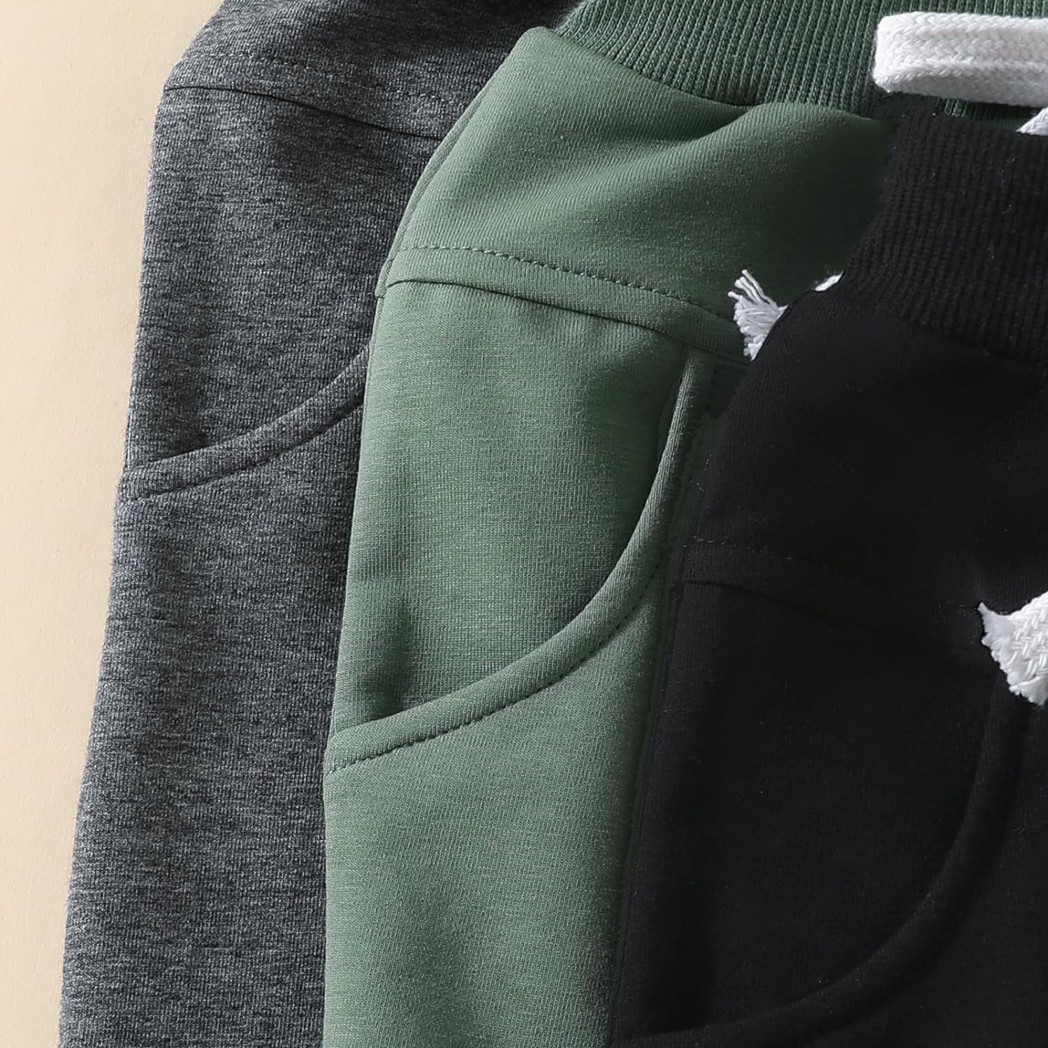 Toddler Baby Boy Fall Pants 3 Pack Active Jogger Casual Athletic Trousers Solid Color Pocket Elastic Waist Harem Bottoms