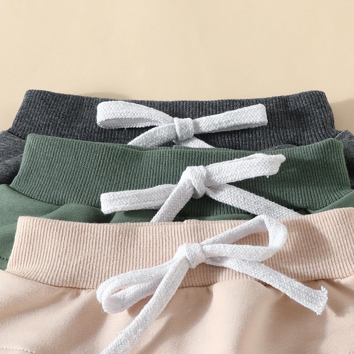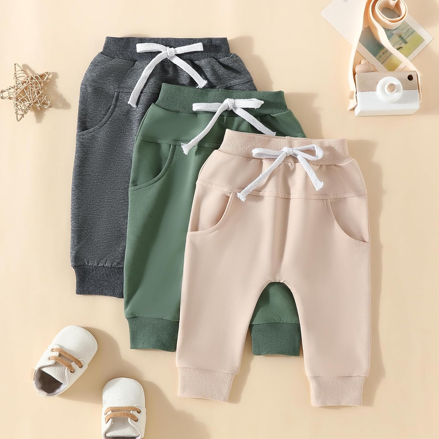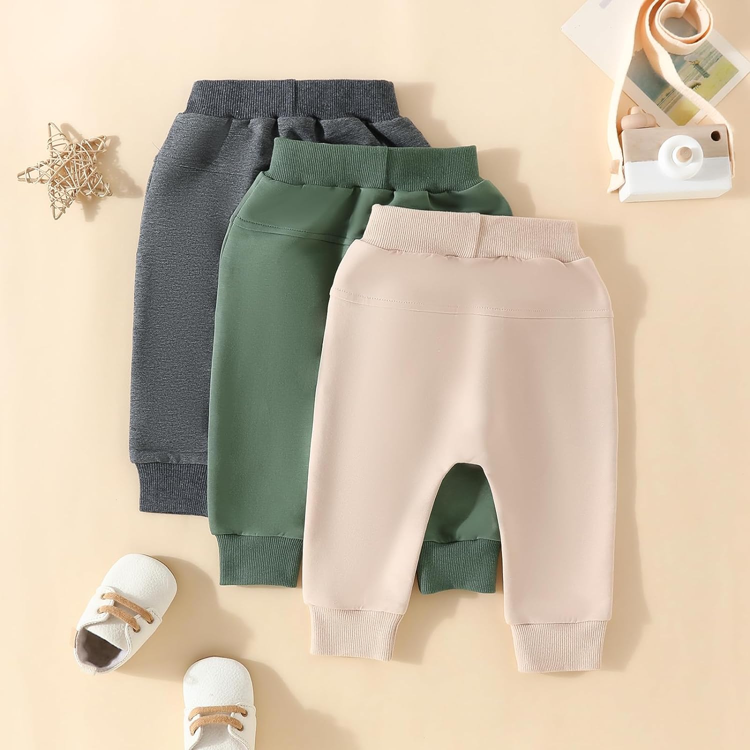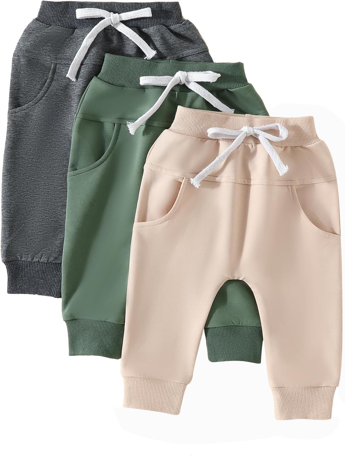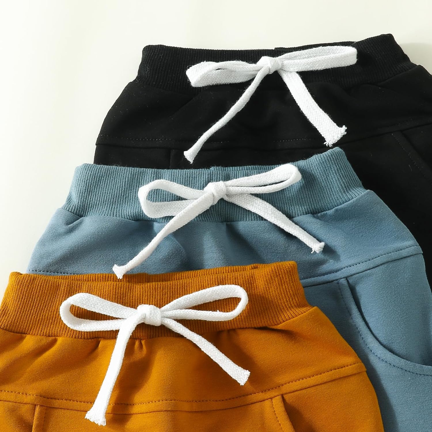 Toddler Baby Boy Fall Pants 3 Pack Active Jogger Casual Athletic Trousers Solid Color Pocket Elastic Waist Harem Bottoms