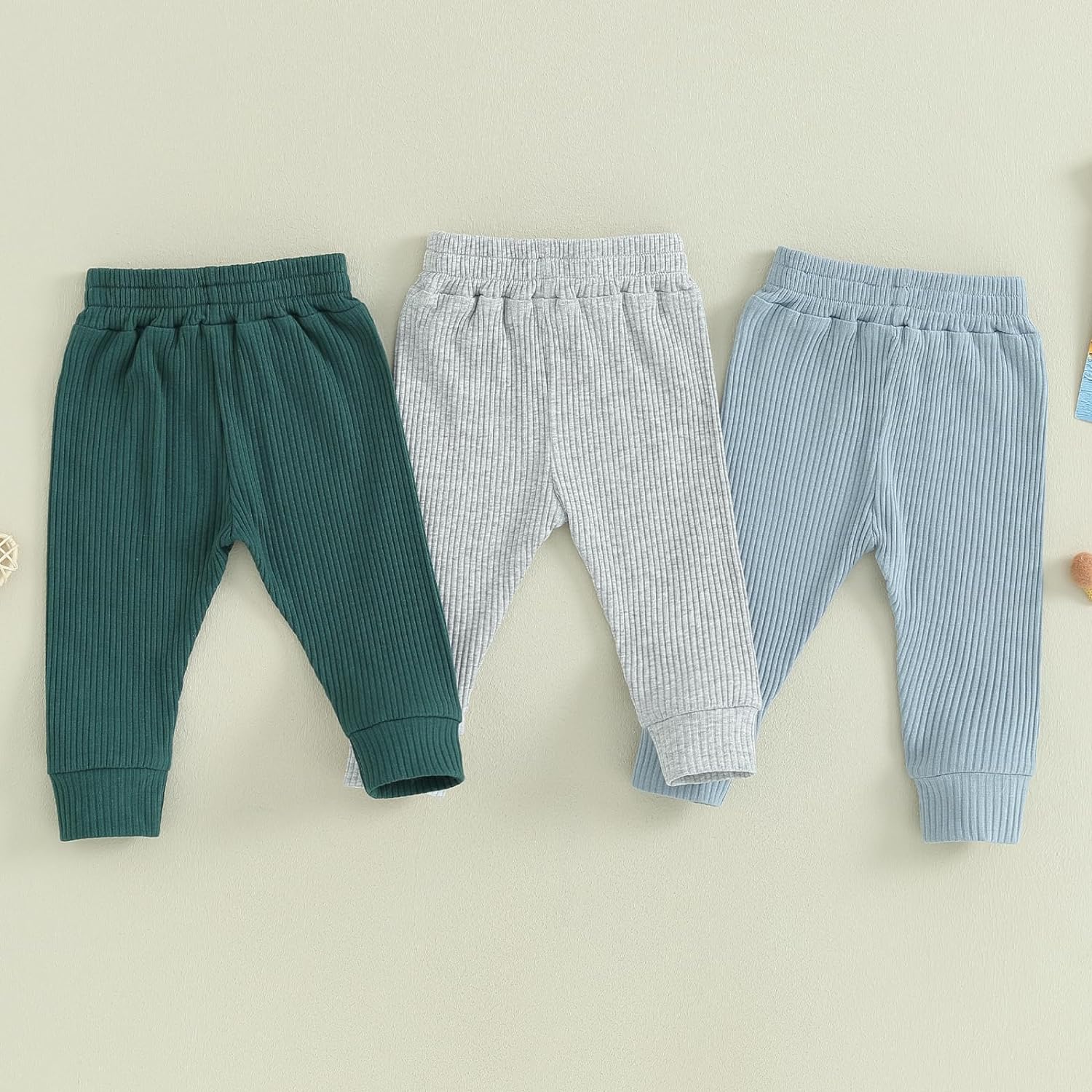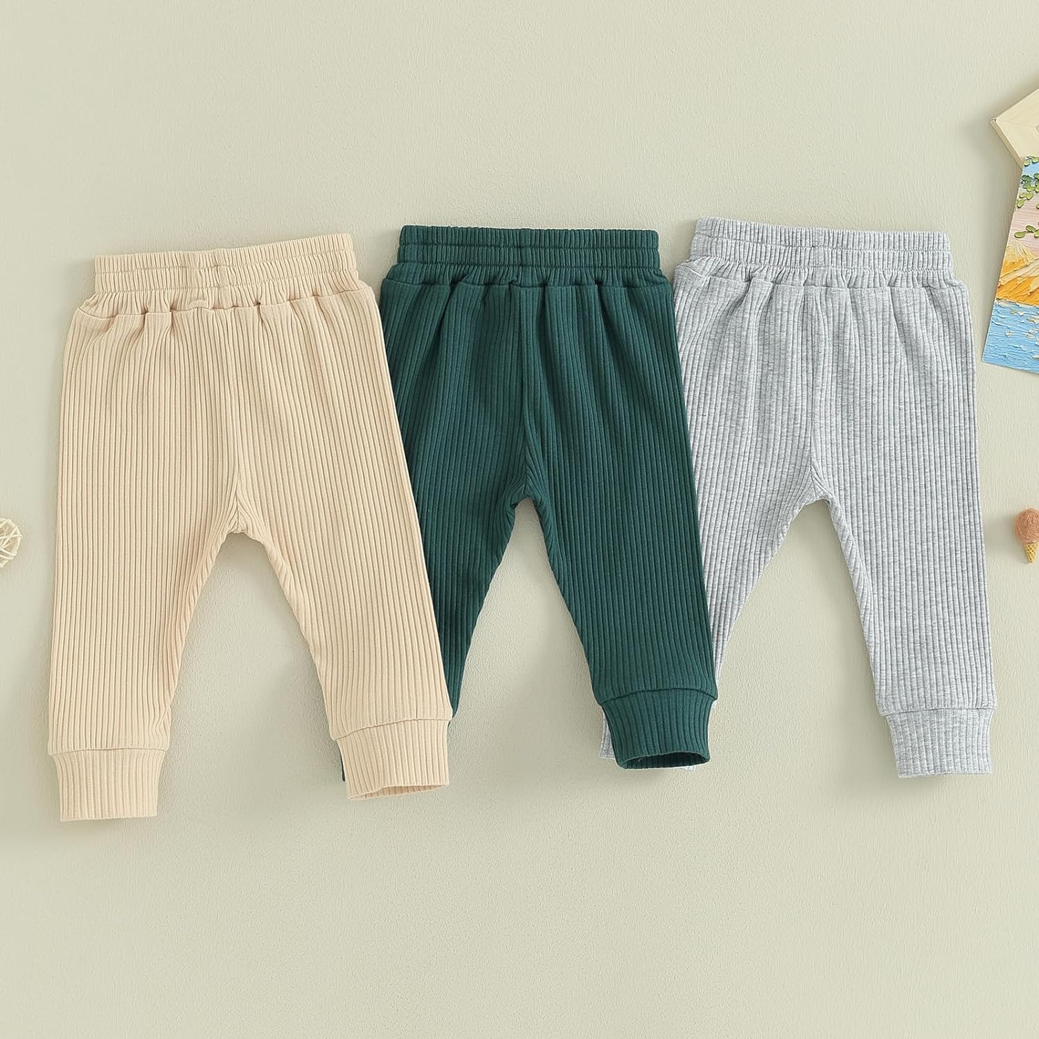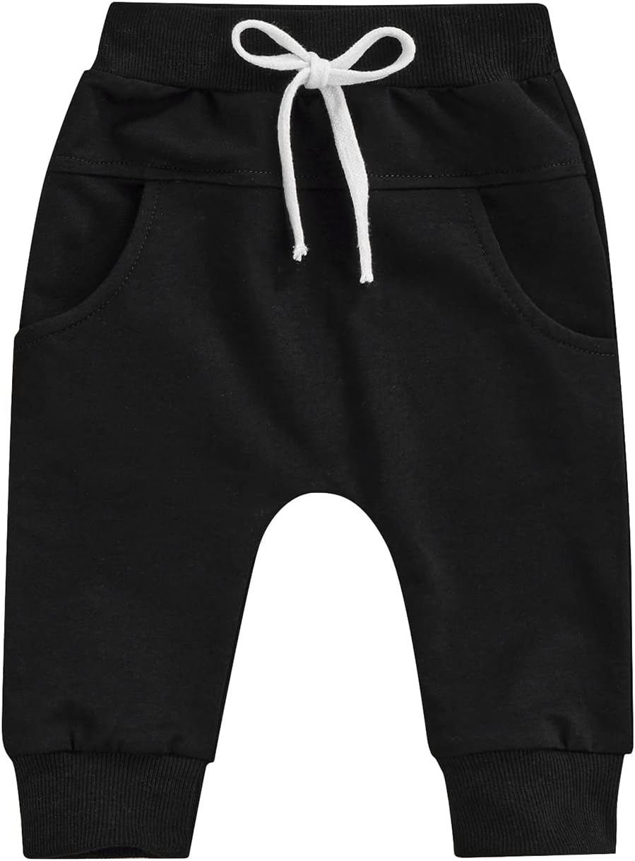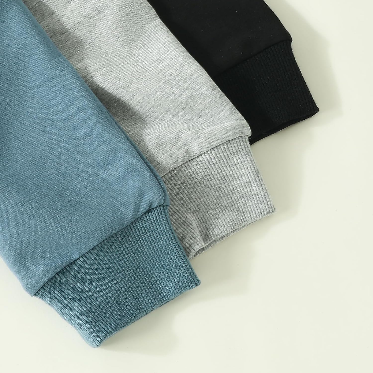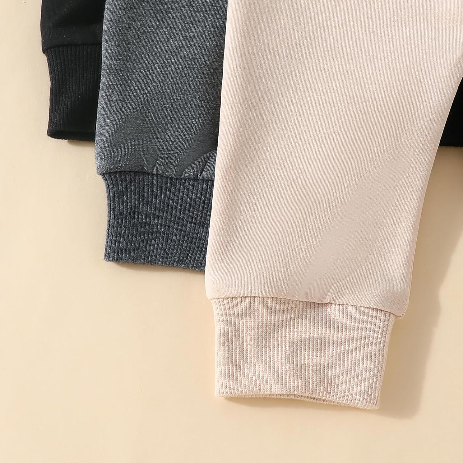 Toddler Baby Boy Fall Pants 3 Pack Active Jogger Casual Athletic Trousers Solid Color Pocket Elastic Waist Harem Bottoms