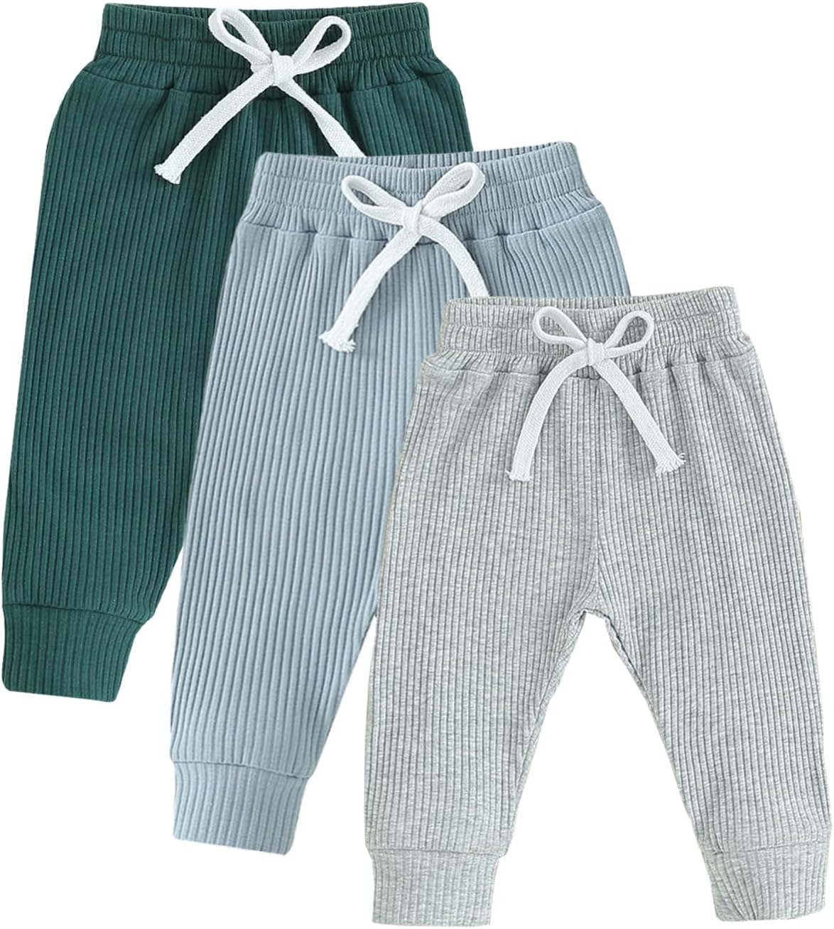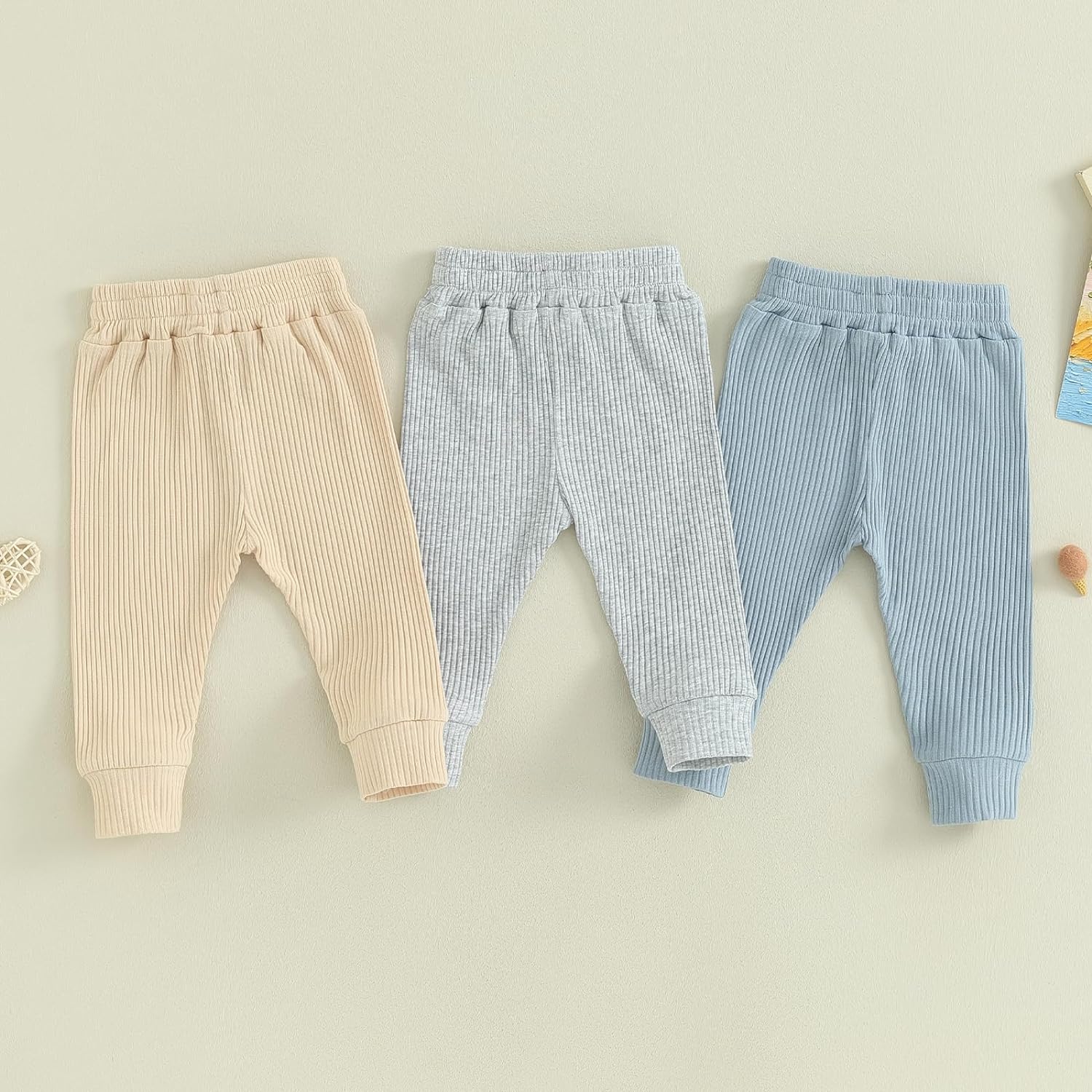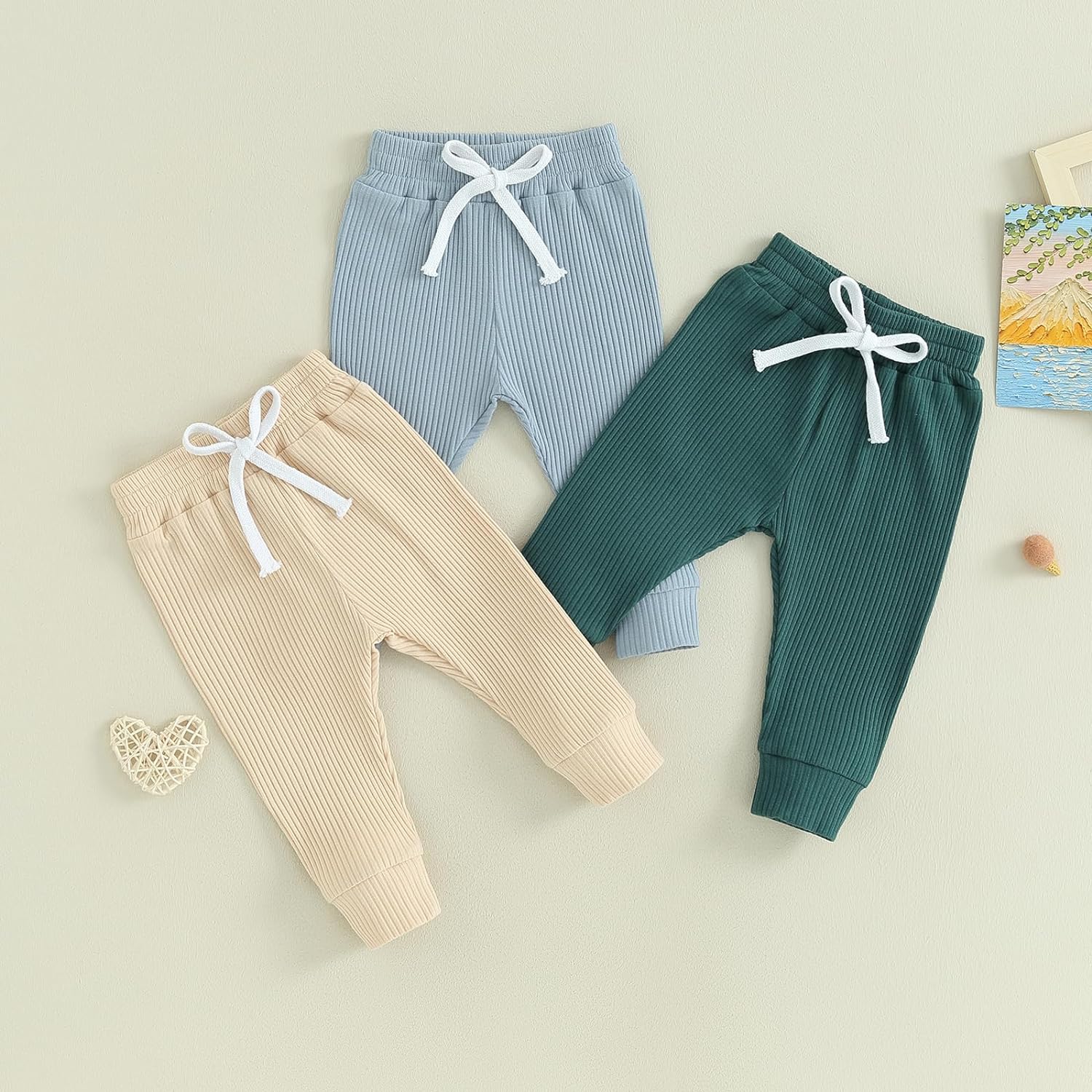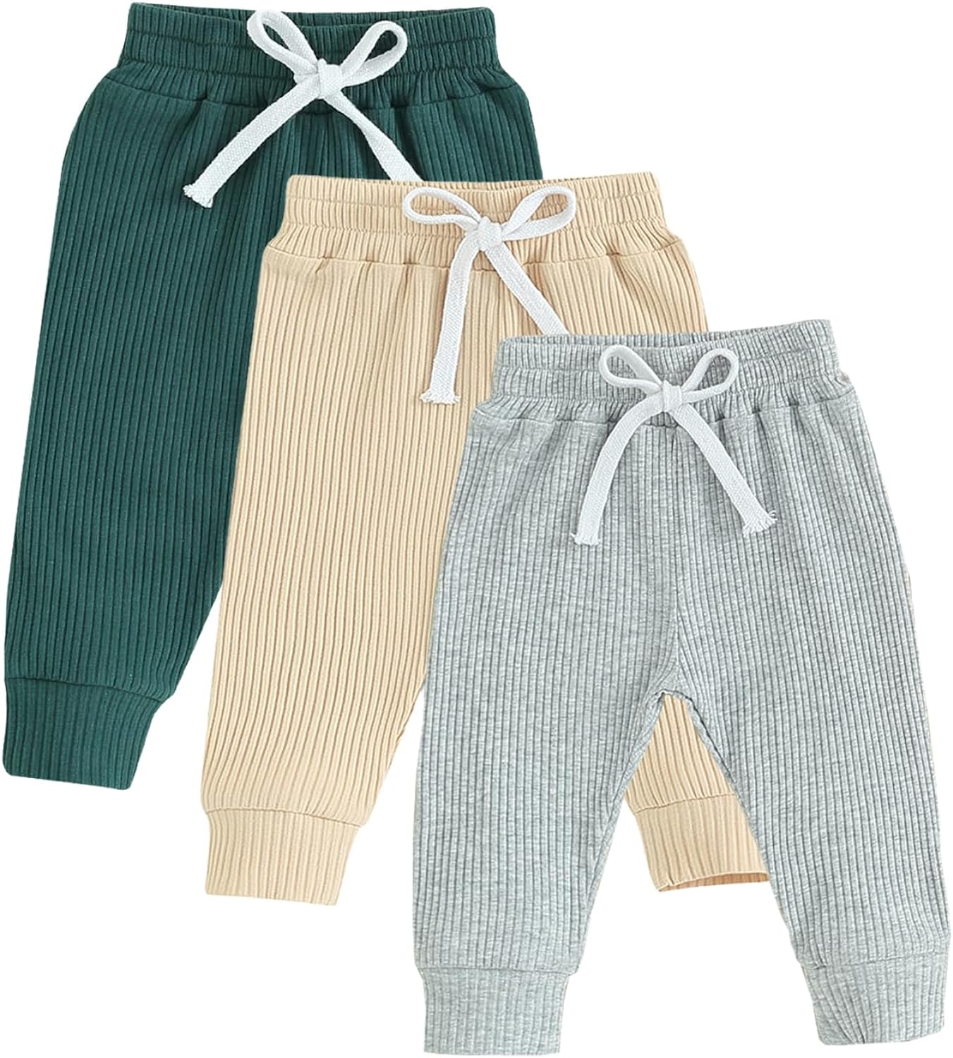 Toddler Baby Boy Fall Pants 3 Pack Active Jogger Casual Athletic Trousers Solid Color Pocket Elastic Waist Harem Bottoms