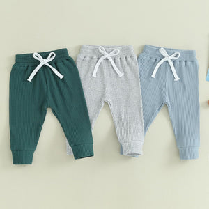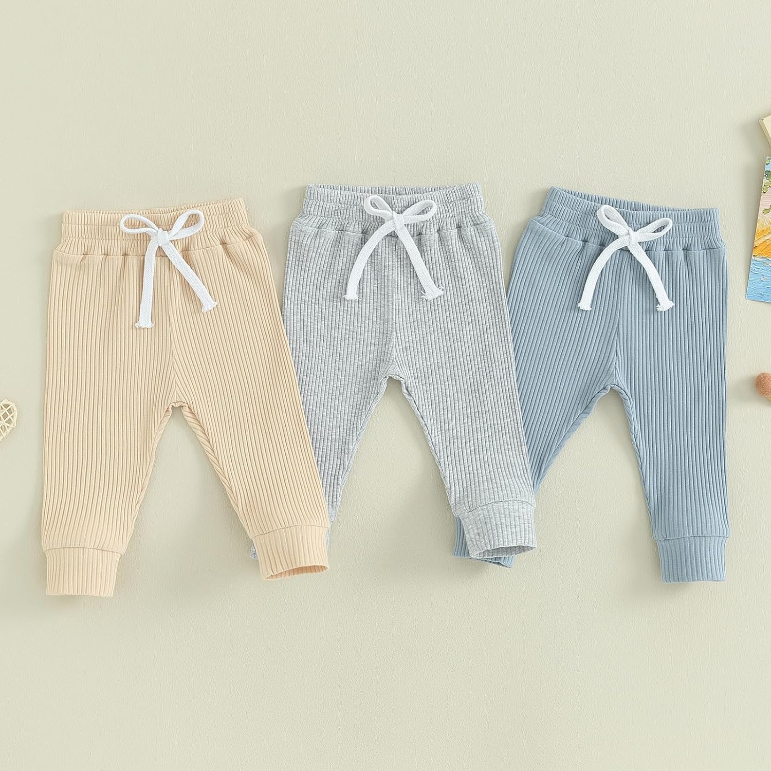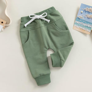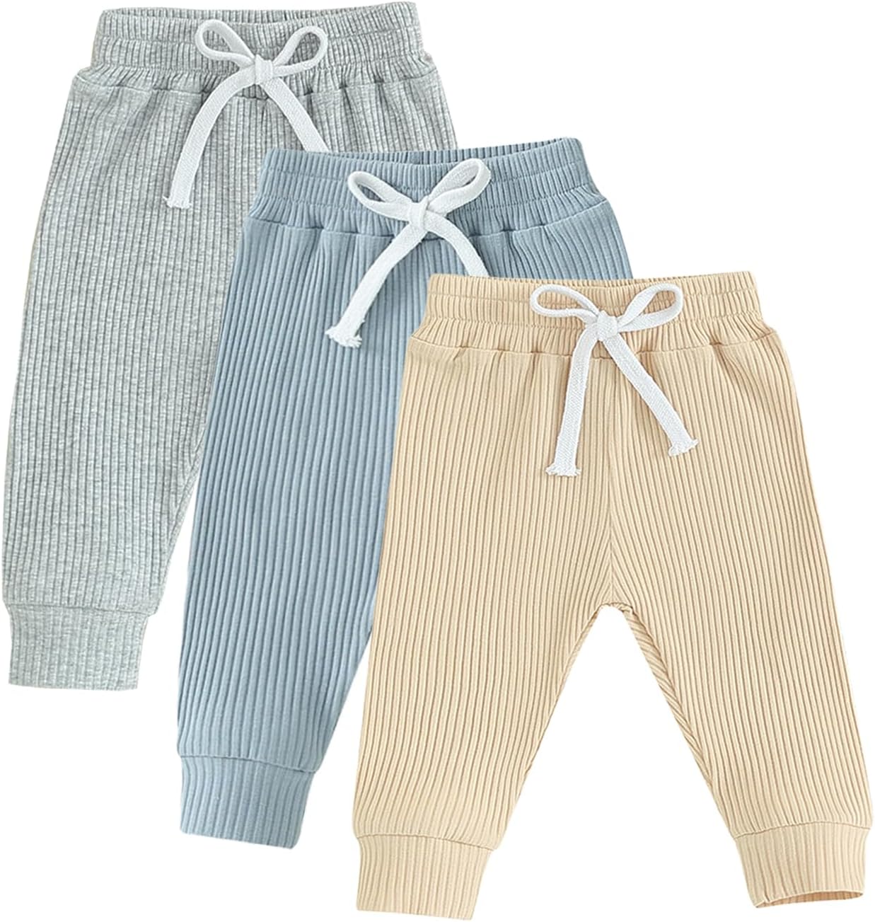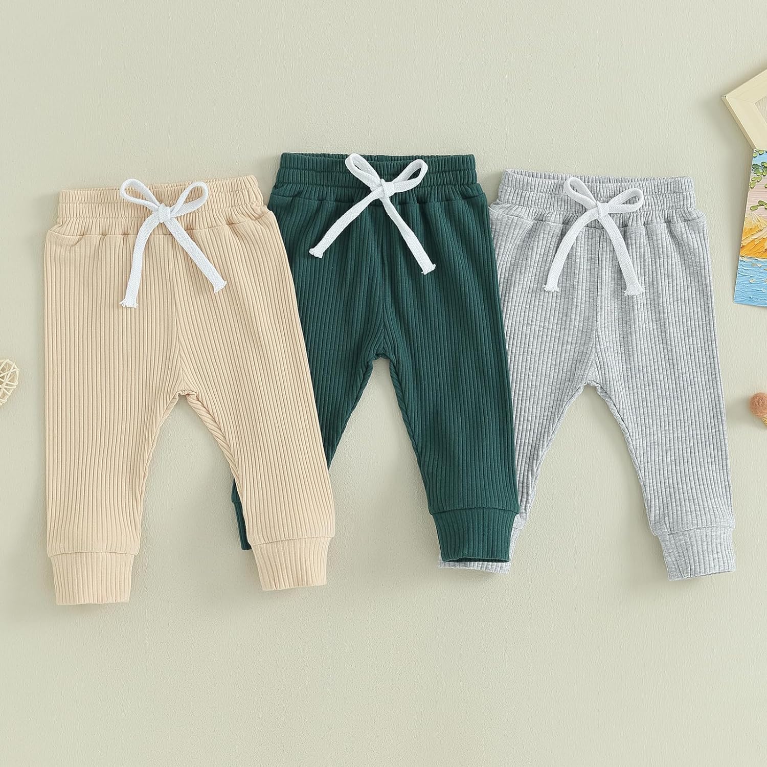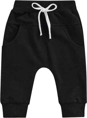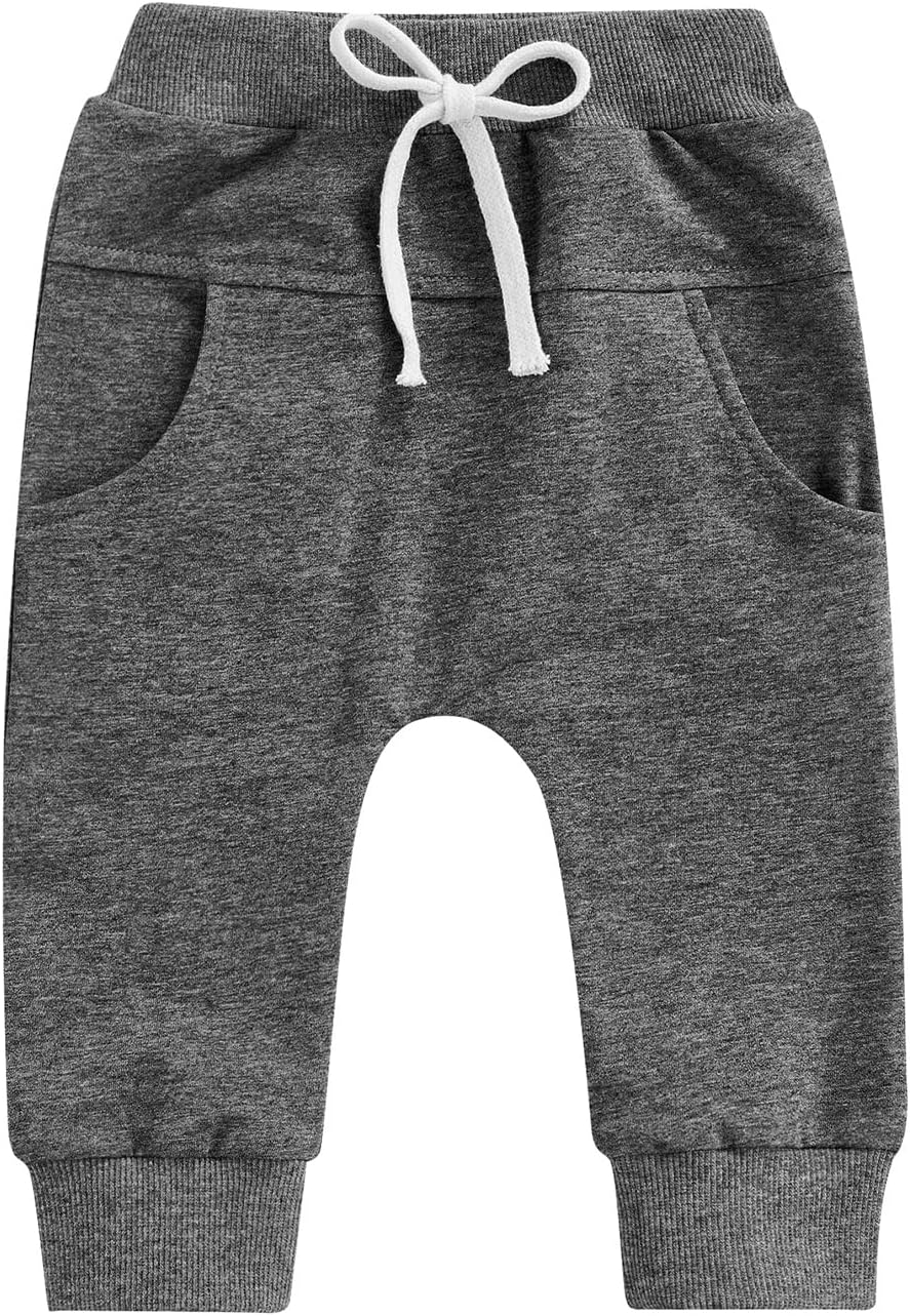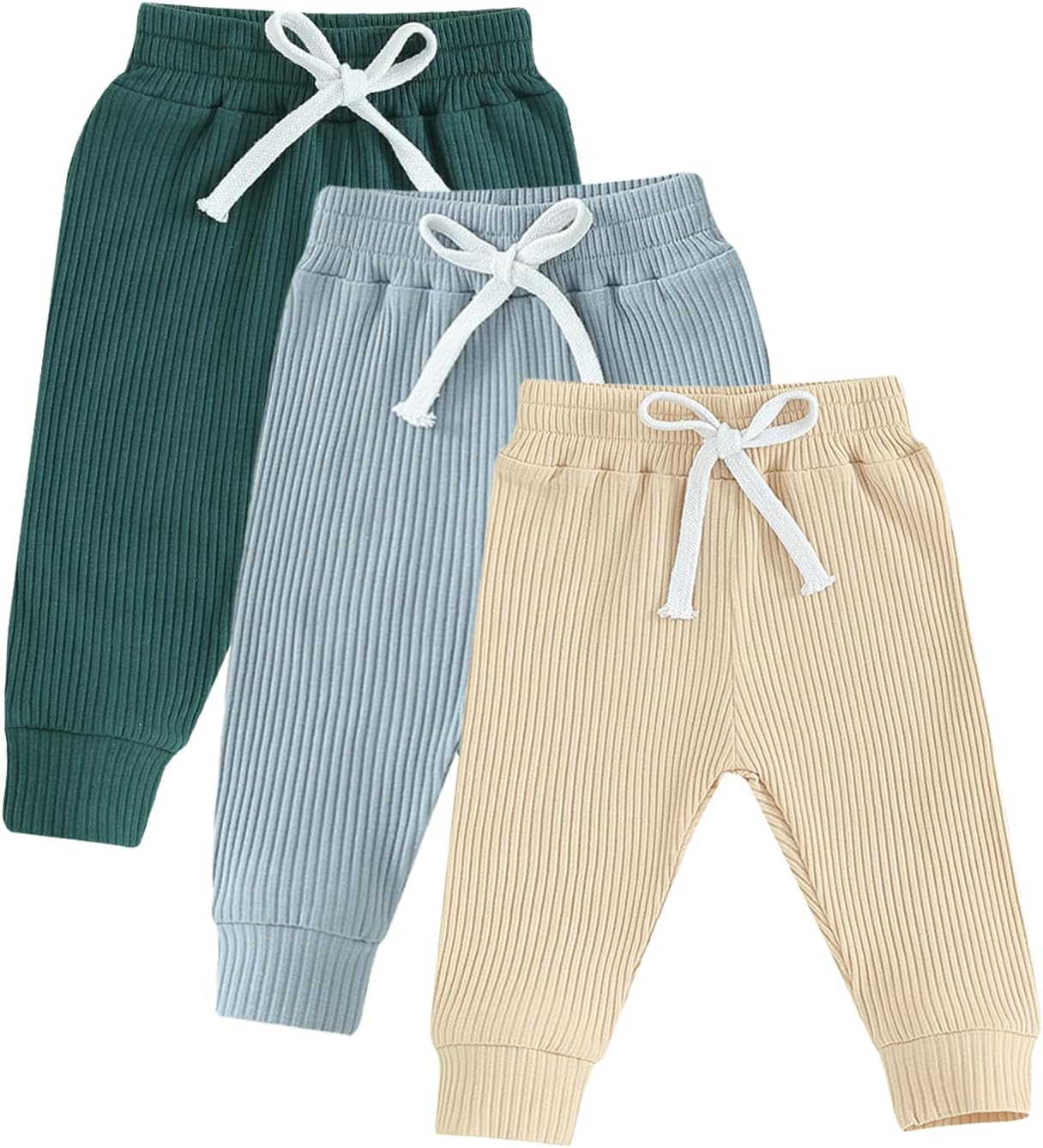 Toddler Baby Boy Fall Pants 3 Pack Active Jogger Casual Athletic Trousers Solid Color Pocket Elastic Waist Harem Bottoms