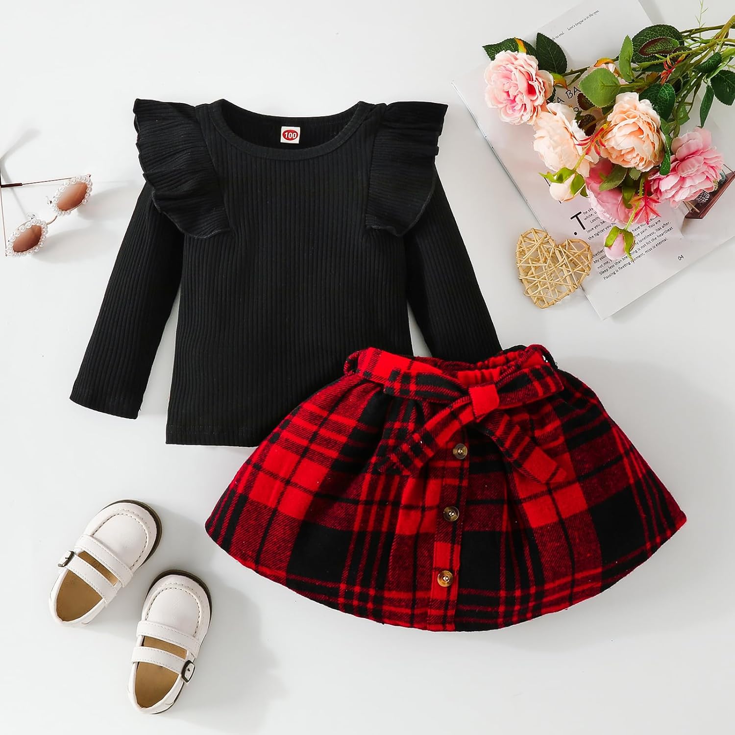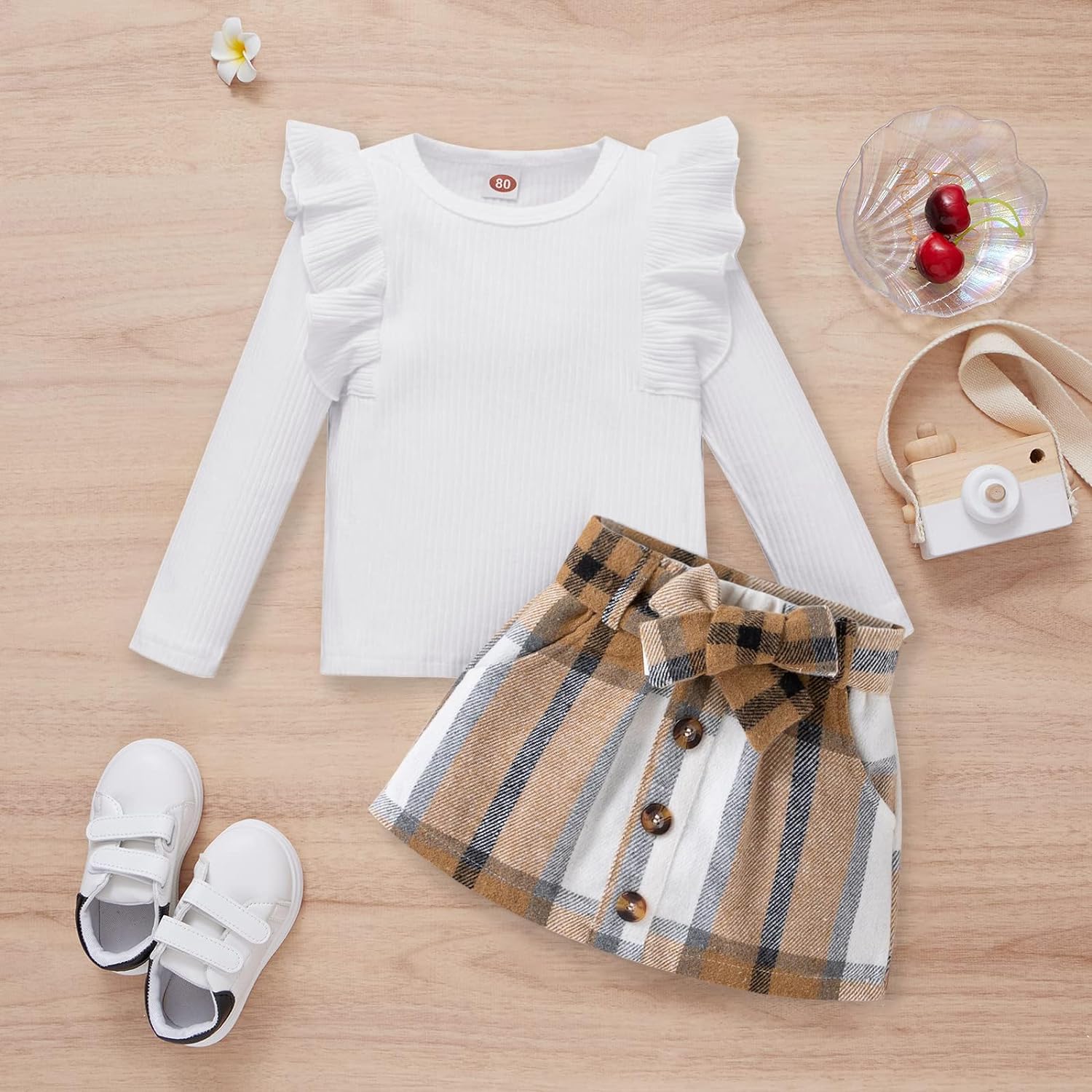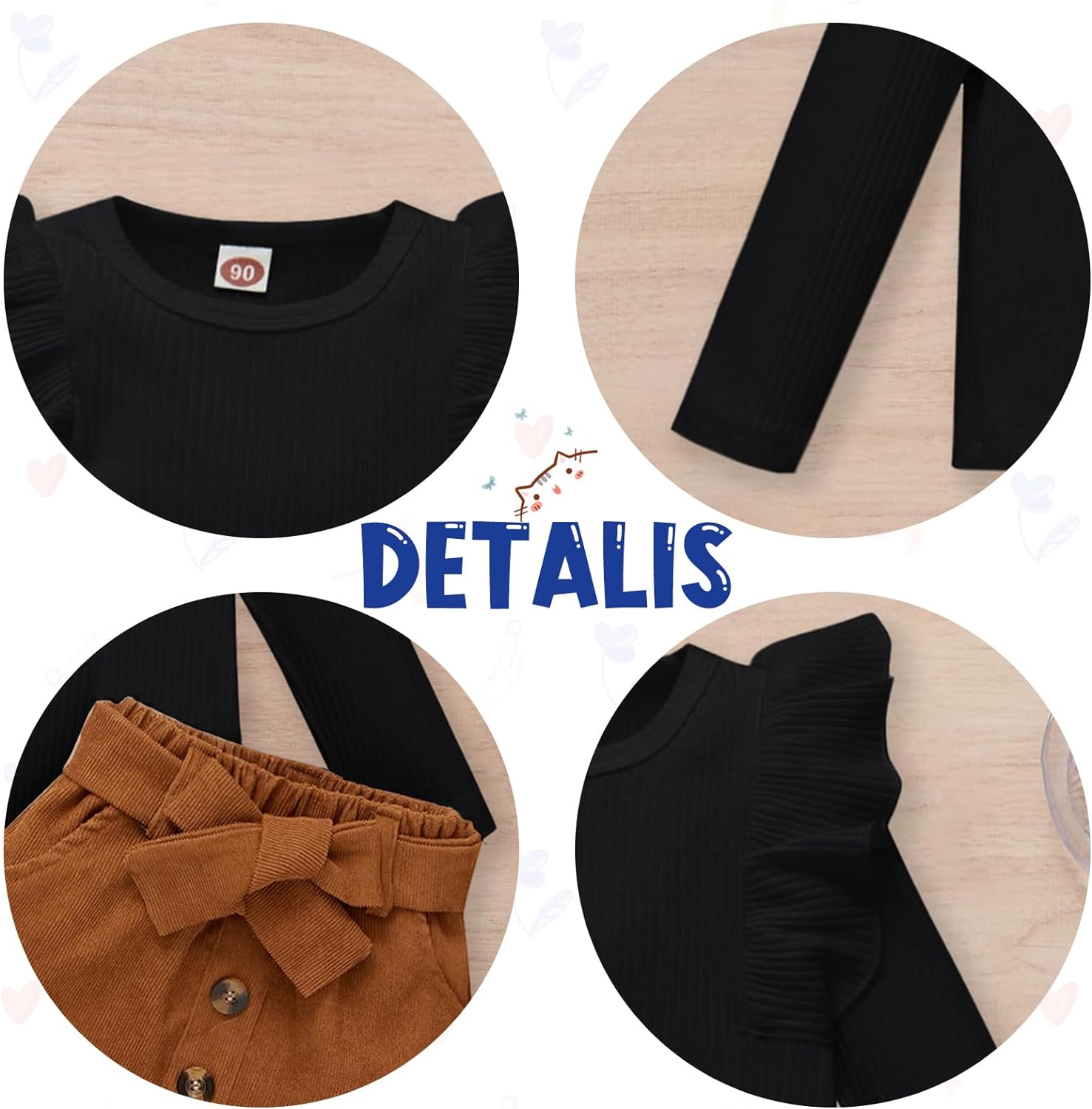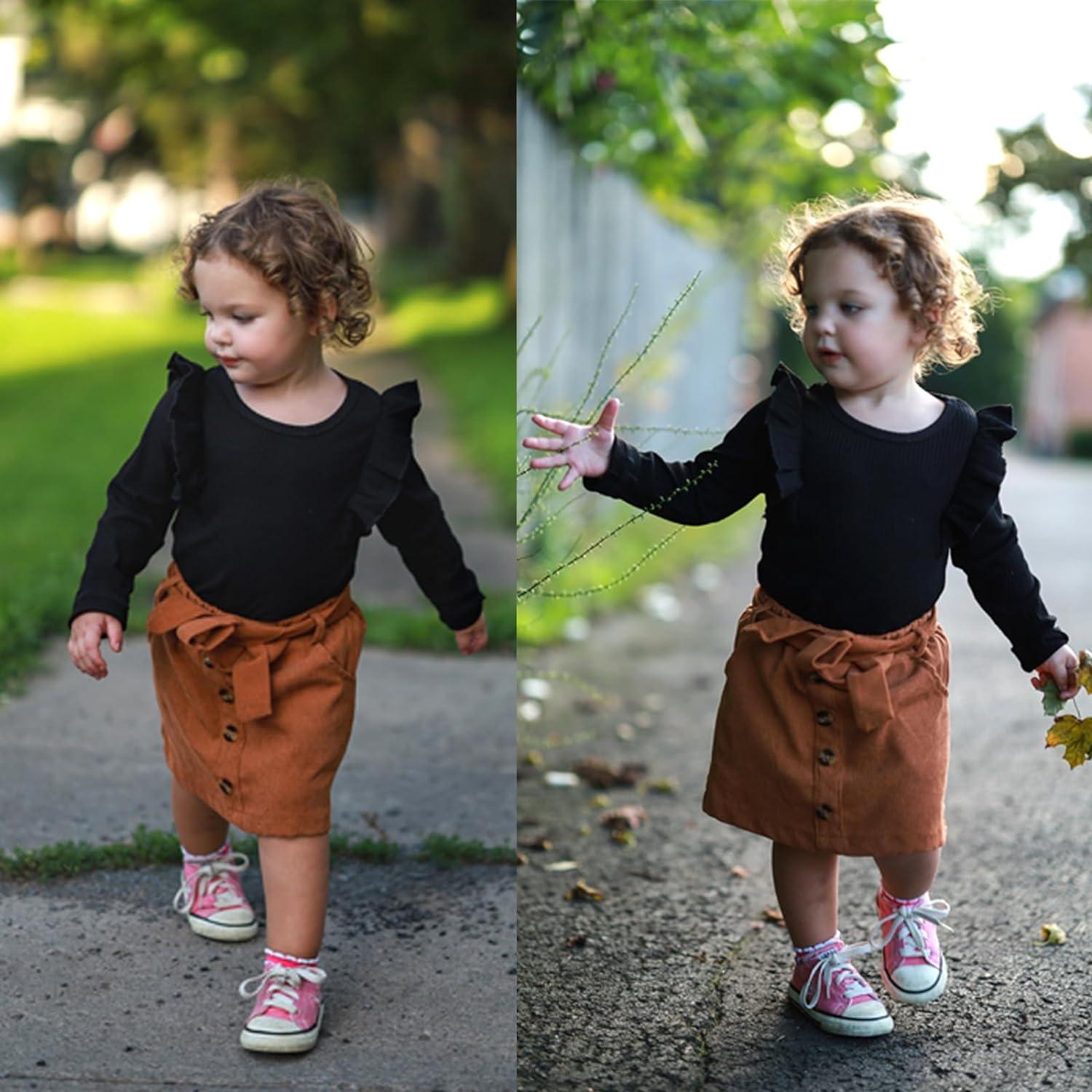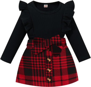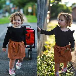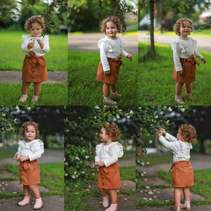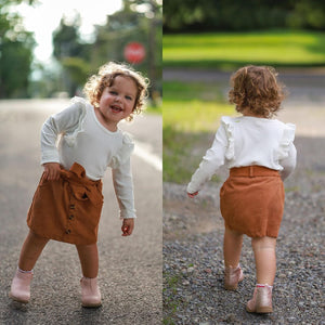 Toddler Baby Girl Fall Winter Clothes Long Sleeve Ruffle Shirt Corduroy Mini Skirt Infant Girl A-line Dress Clothing