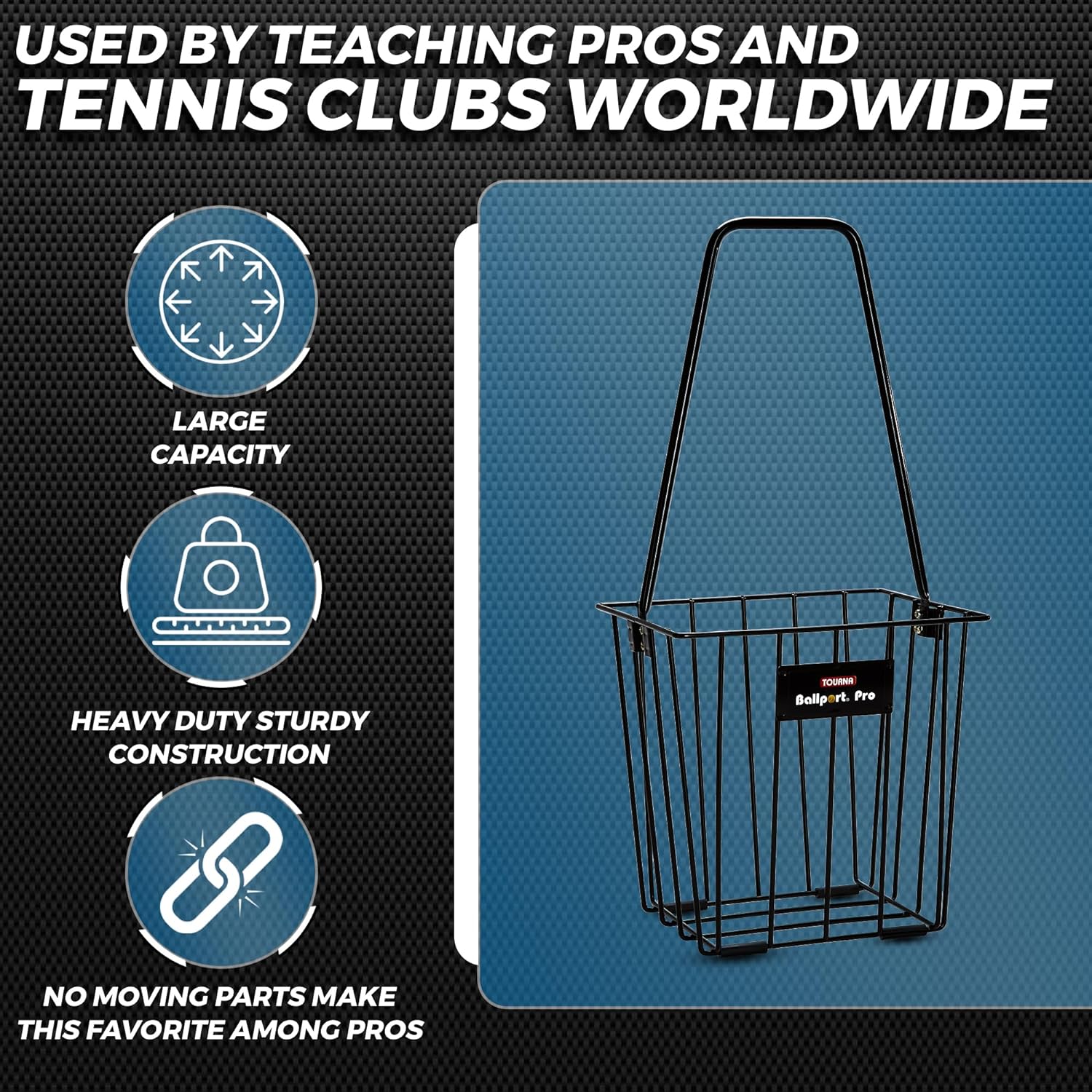 Tourna Ball Port Pro holds 85 balls. Heavy duty construction for durability. Portable and easy to pick up and hold tennis balls. 6 pack.