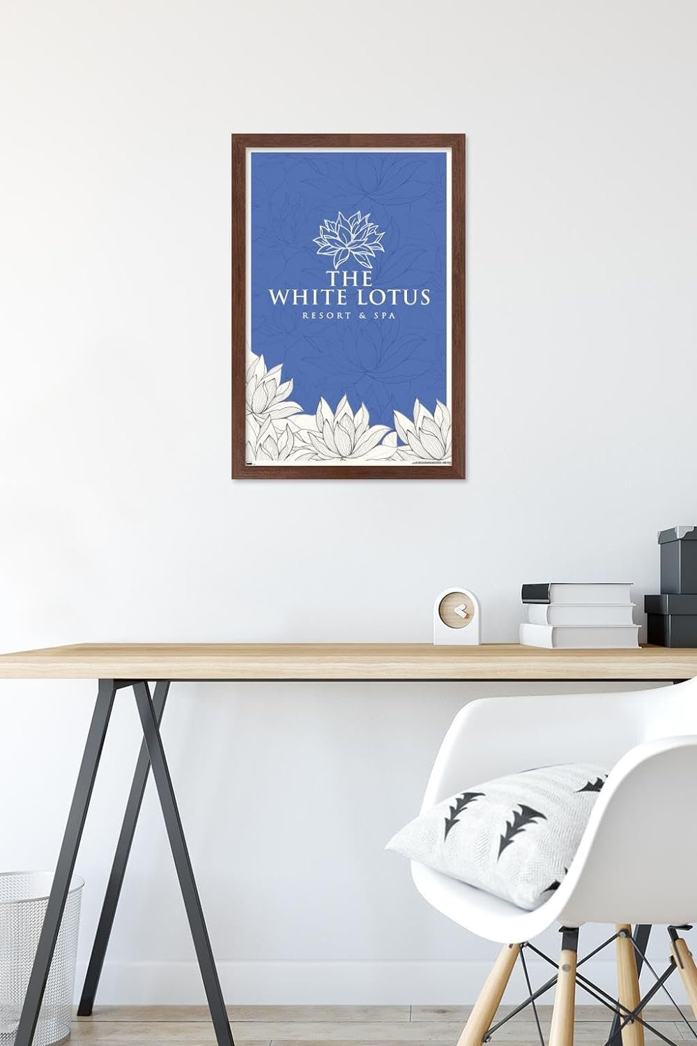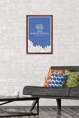 Trends International The White Lotus - White and Blue Logo Wall Poster, 22.37" x 34.00", Mahogany Framed Version