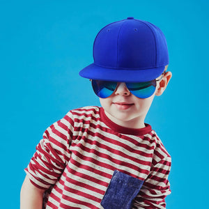 Trendy Apparel Shop Infant to Youth Plain Structured Flatbill Snapback Cap . 100% Polyester. Plain adjustable infant size flat bill snapback hat for your toddlers . 6 panels, High profile and Structured crown. Fitted with an inner hatband, Stiff and flat bill . Adjustable plastic snap closure . One Size Fits Most For Kids.
