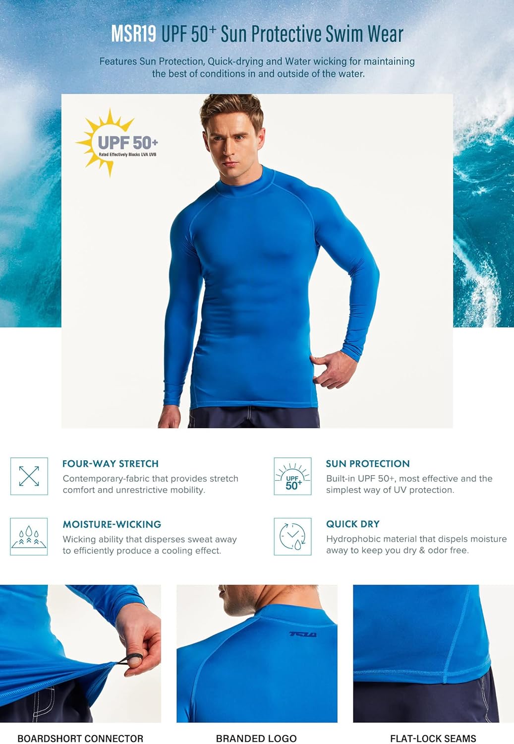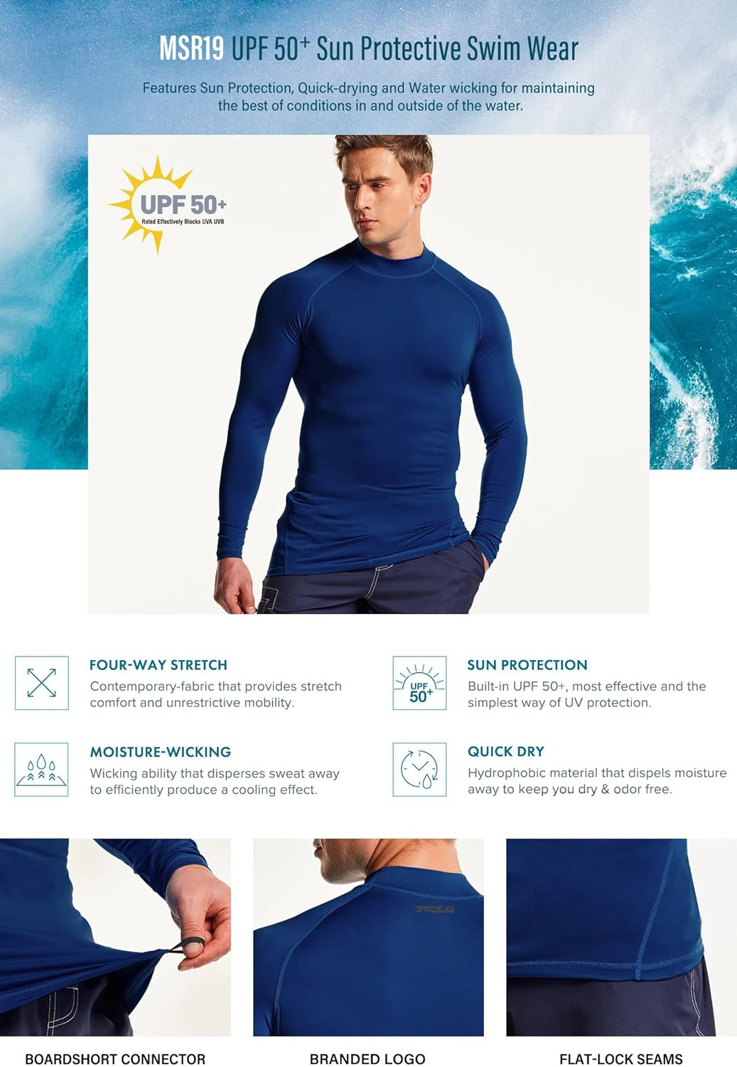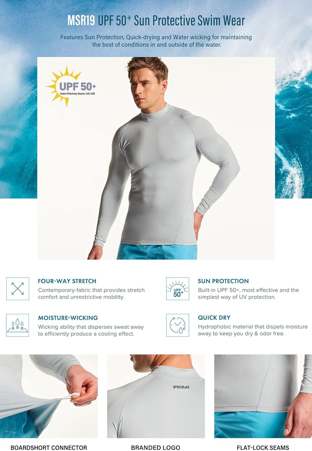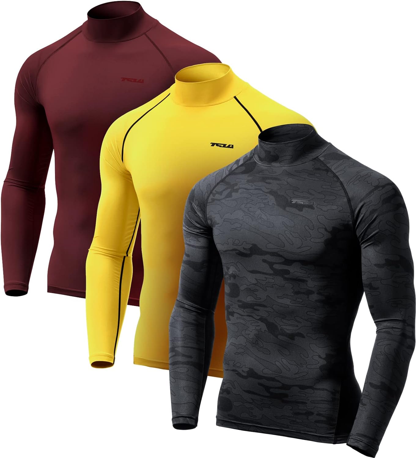 TSLA 1 or 3 Pack Men's UPF 50+ Long Sleeve Compression Shirts Athletic Workout Shirt Rash Guard for Water Sports