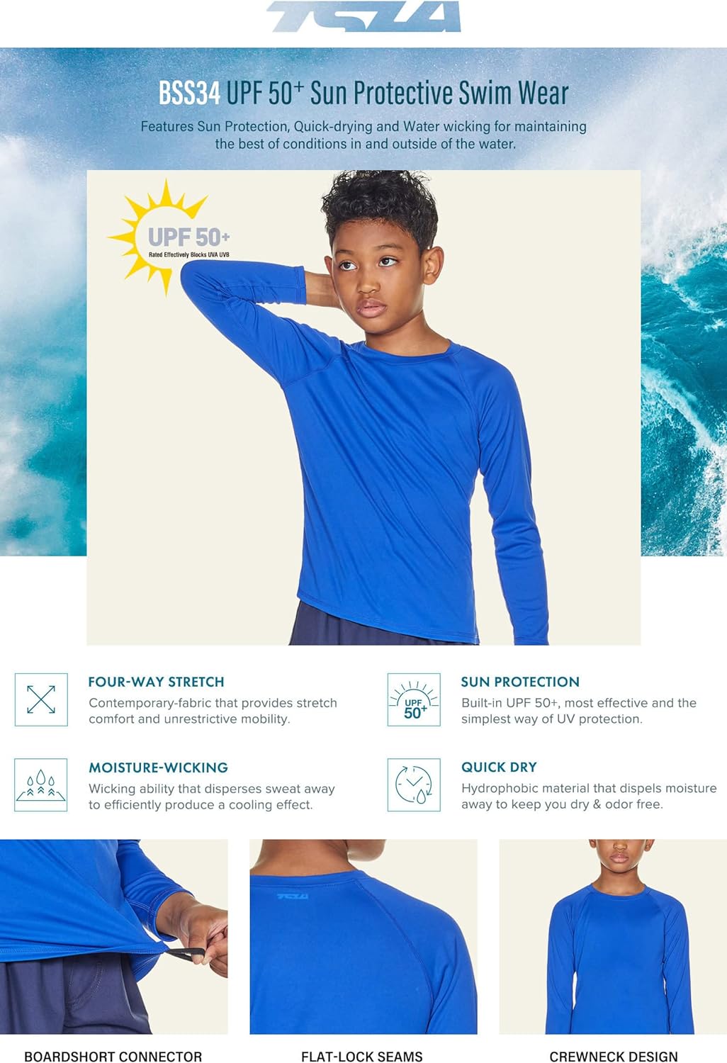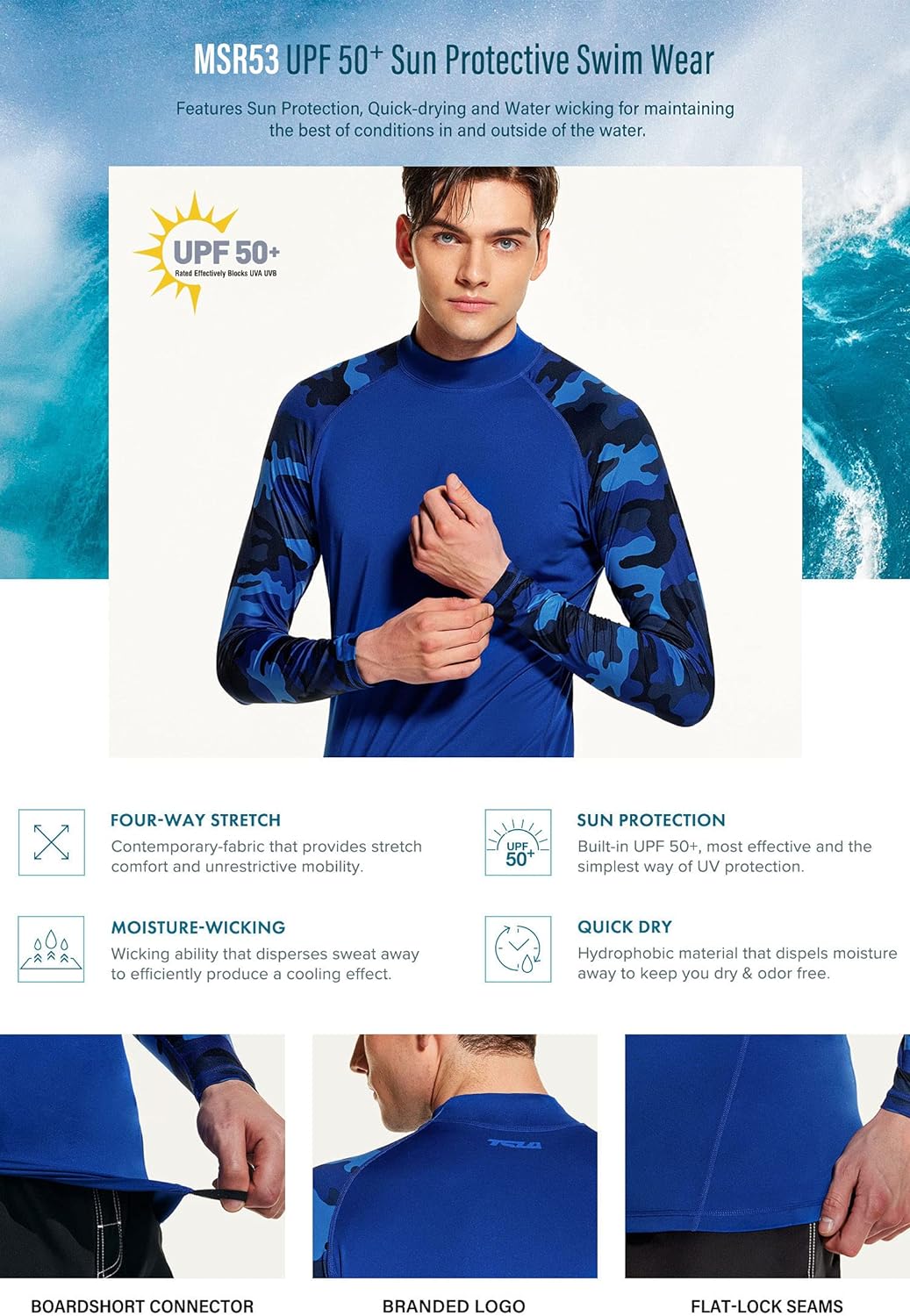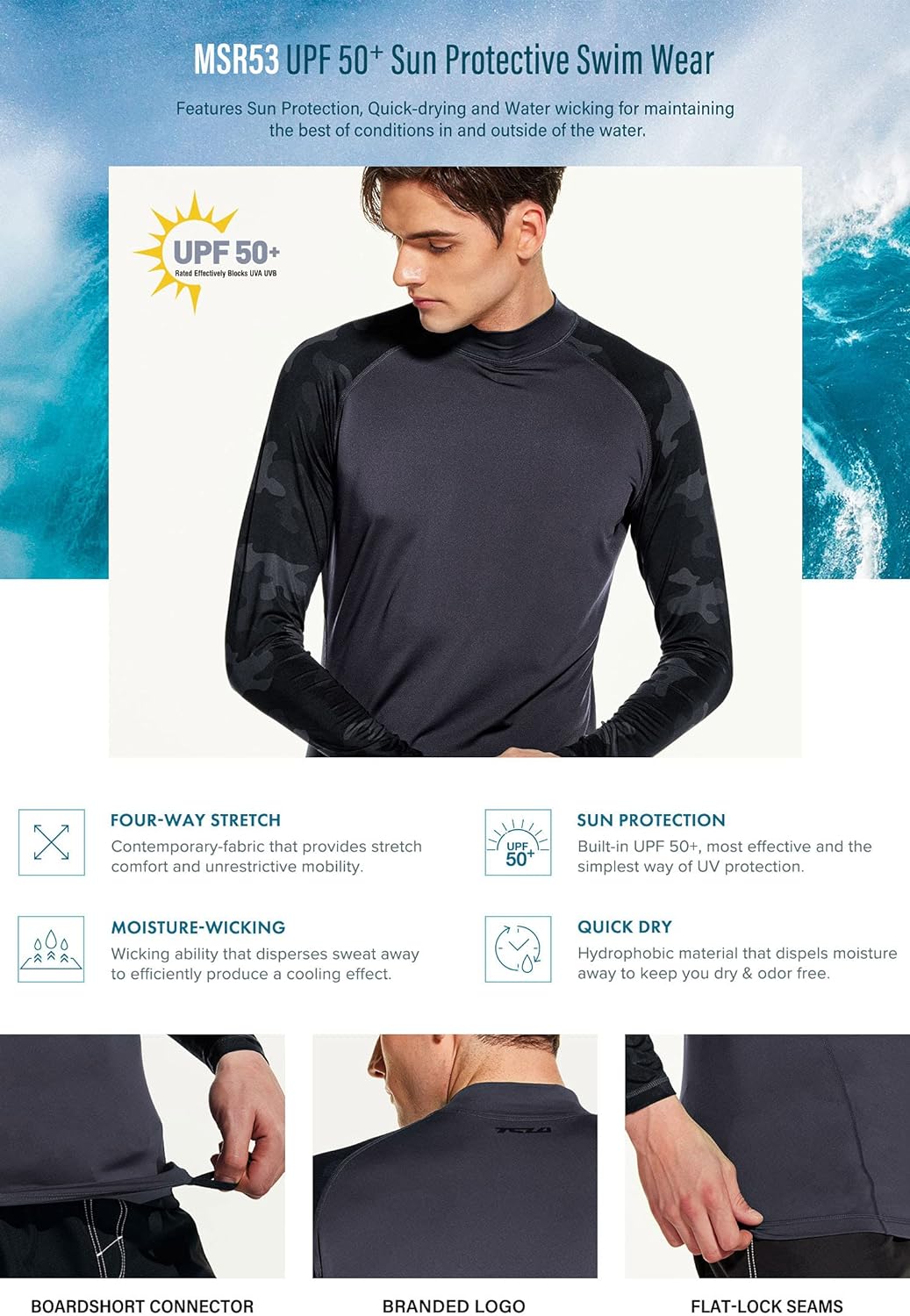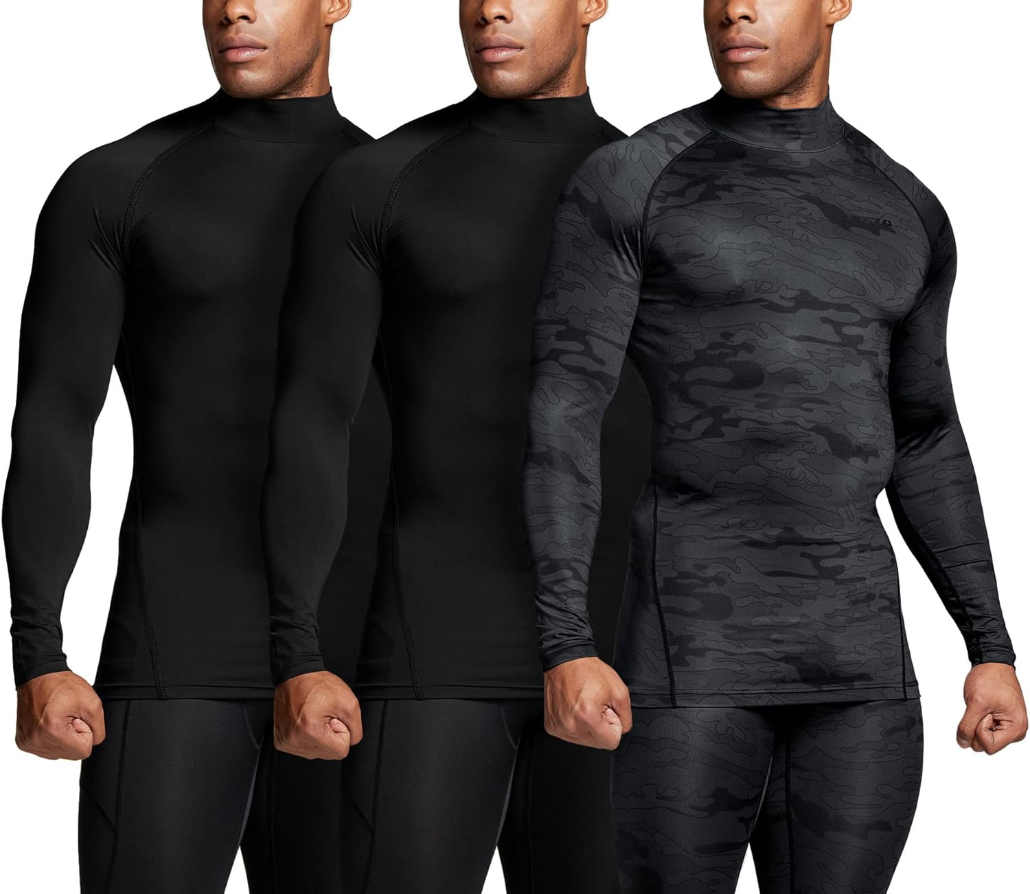 TSLA 1 or 3 Pack Men's UPF 50+ Long Sleeve Compression Shirts Athletic Workout Shirt Rash Guard for Water Sports
