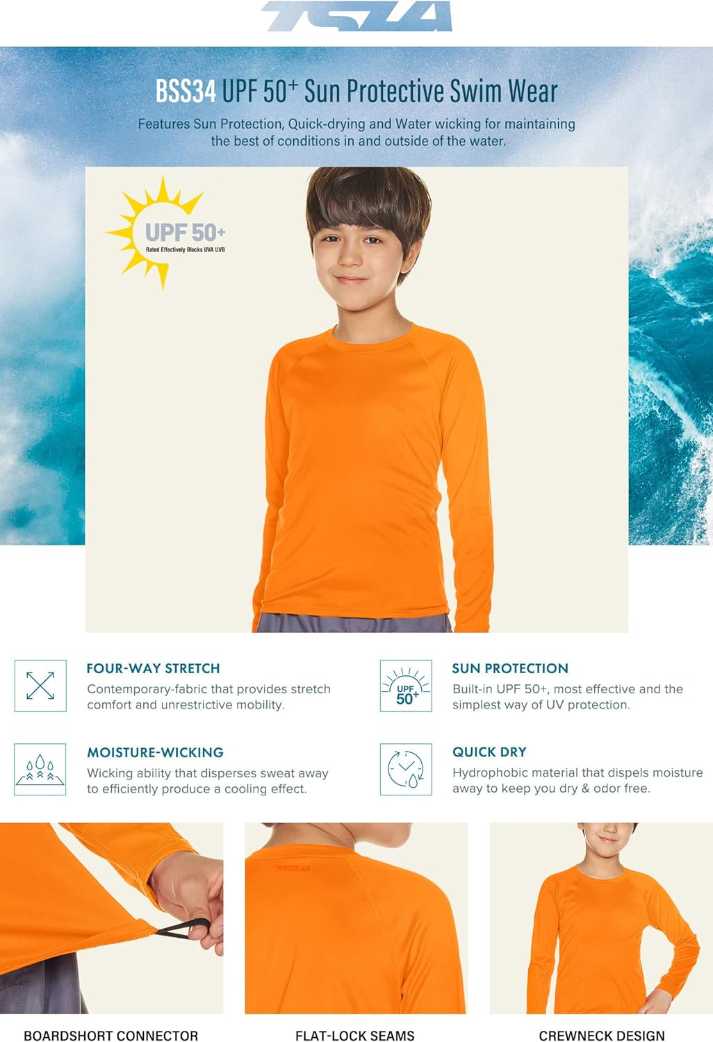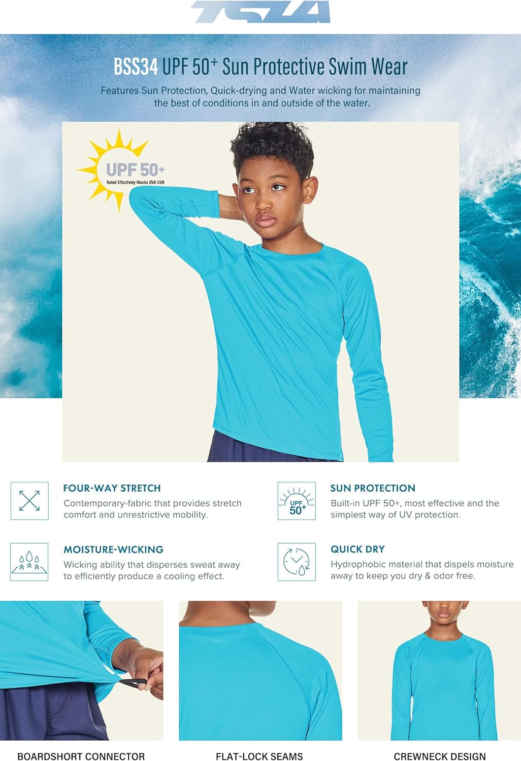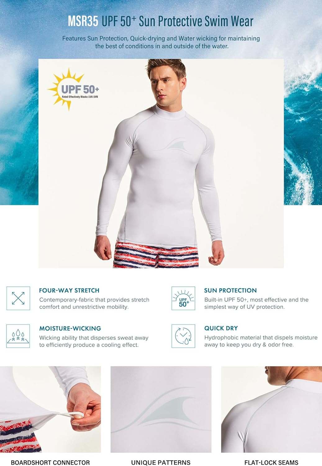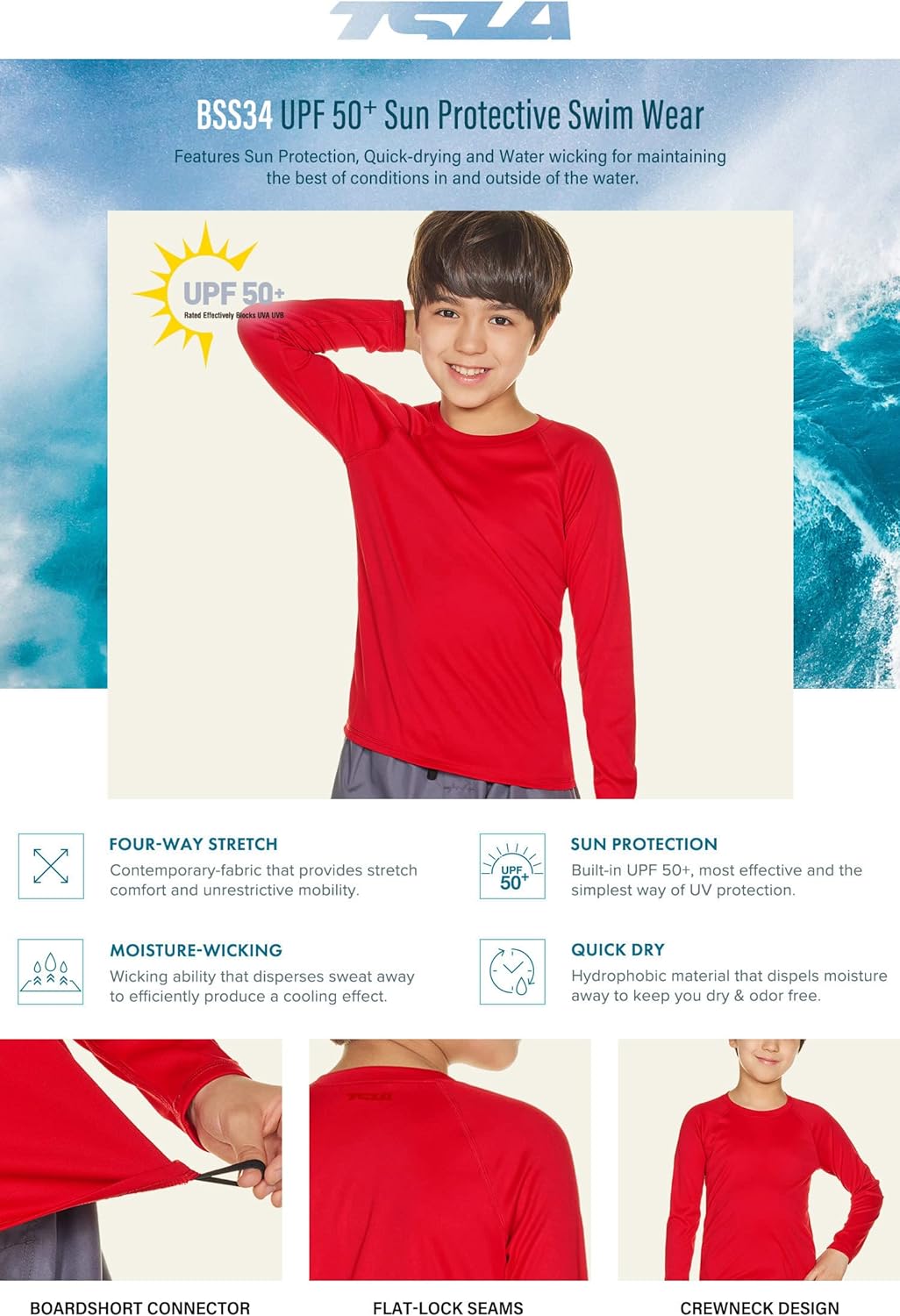 TSLA 1 or 3 Pack Men's UPF 50+ Long Sleeve Compression Shirts Athletic Workout Shirt Rash Guard for Water Sports