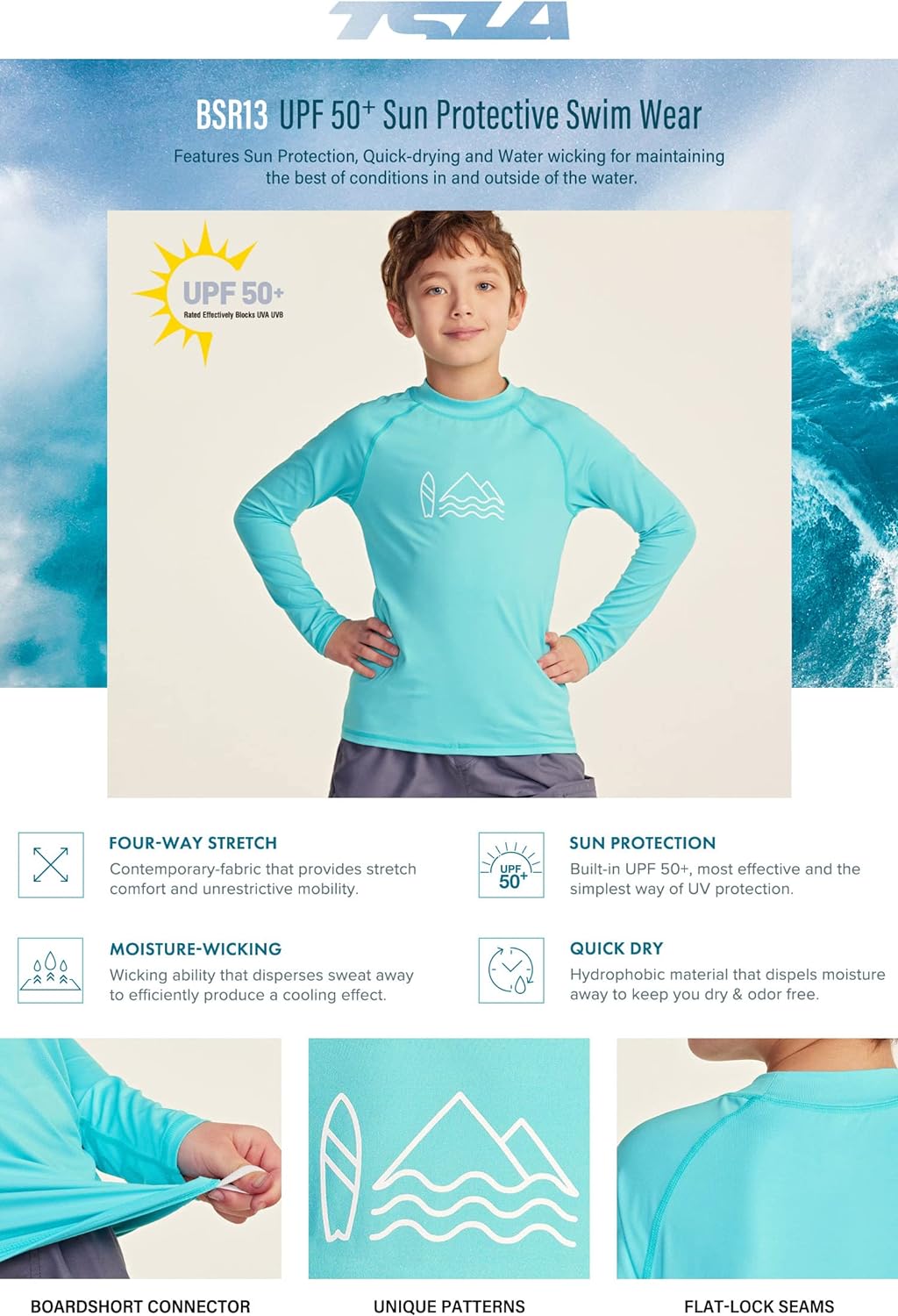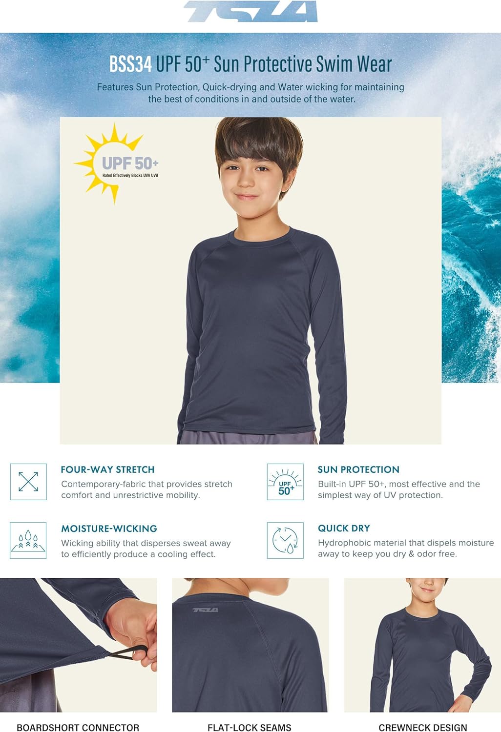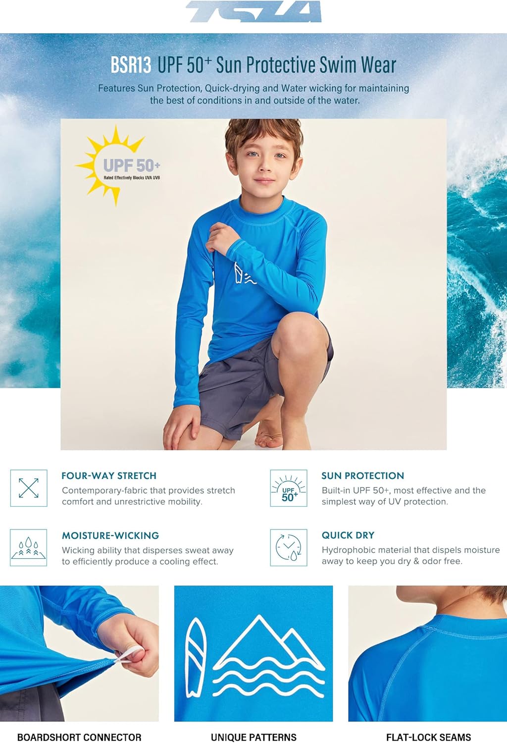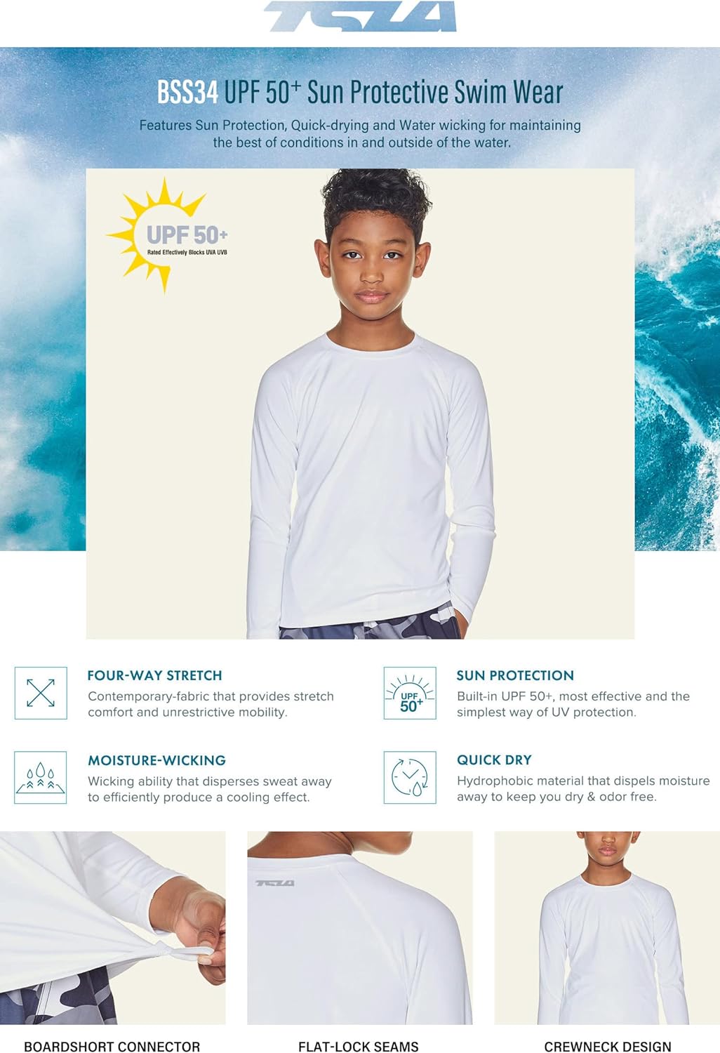 TSLA 1 or 3 Pack Men's UPF 50+ Long Sleeve Compression Shirts Athletic Workout Shirt Rash Guard for Water Sports