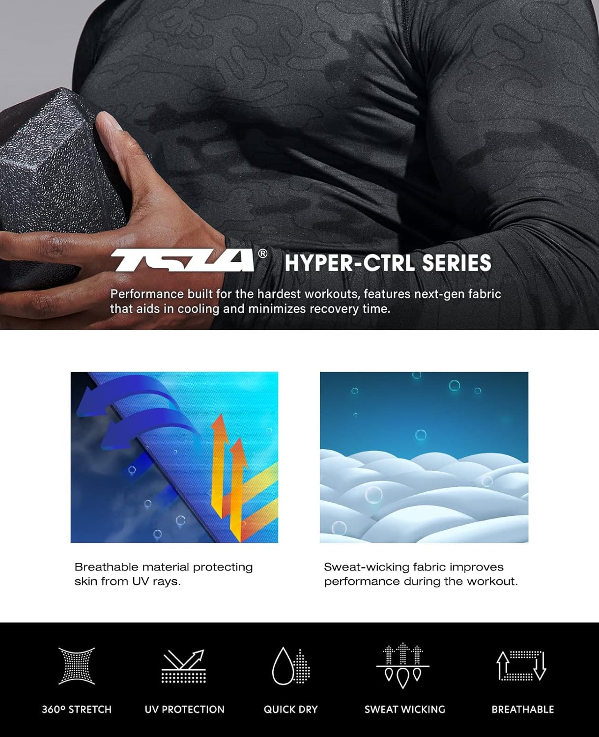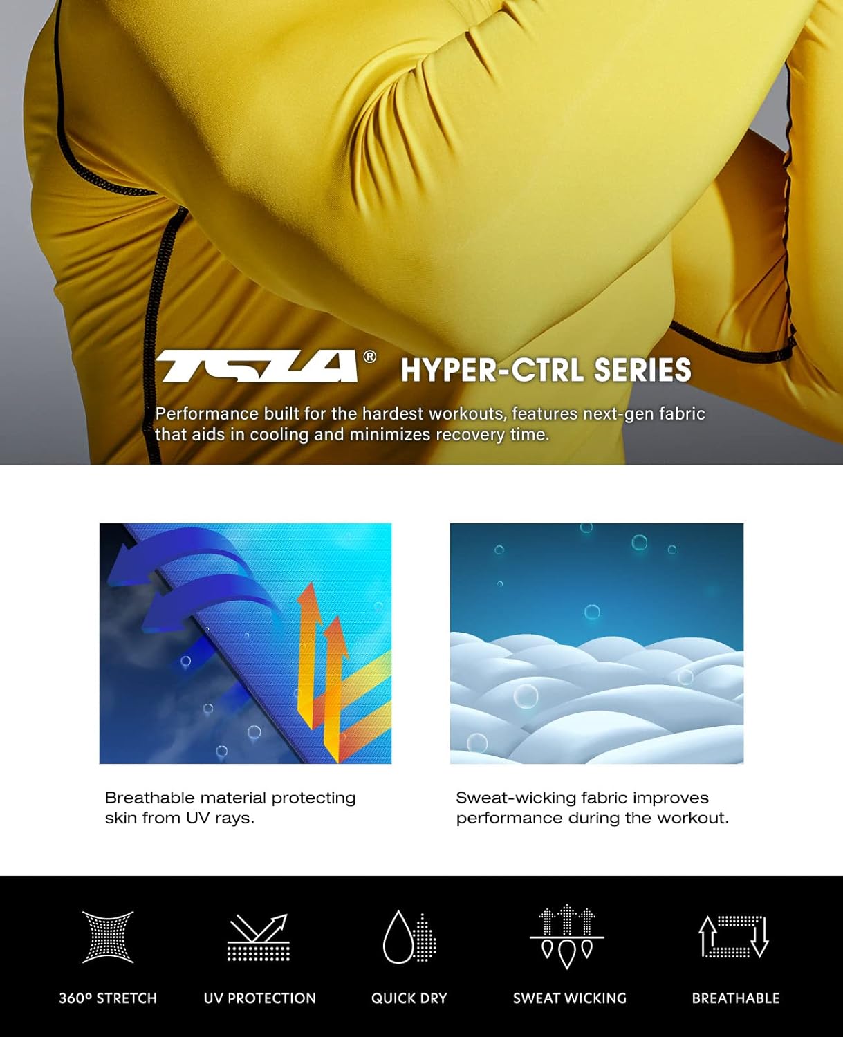 TSLA compression garments are designed for all seasons (exudes heat and wicks away moisture with a cooling effect).