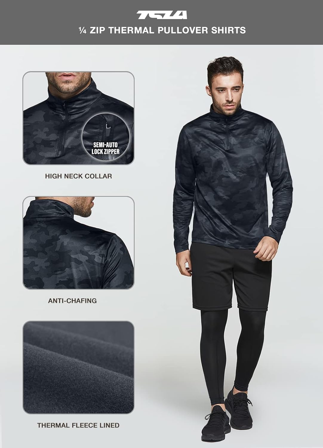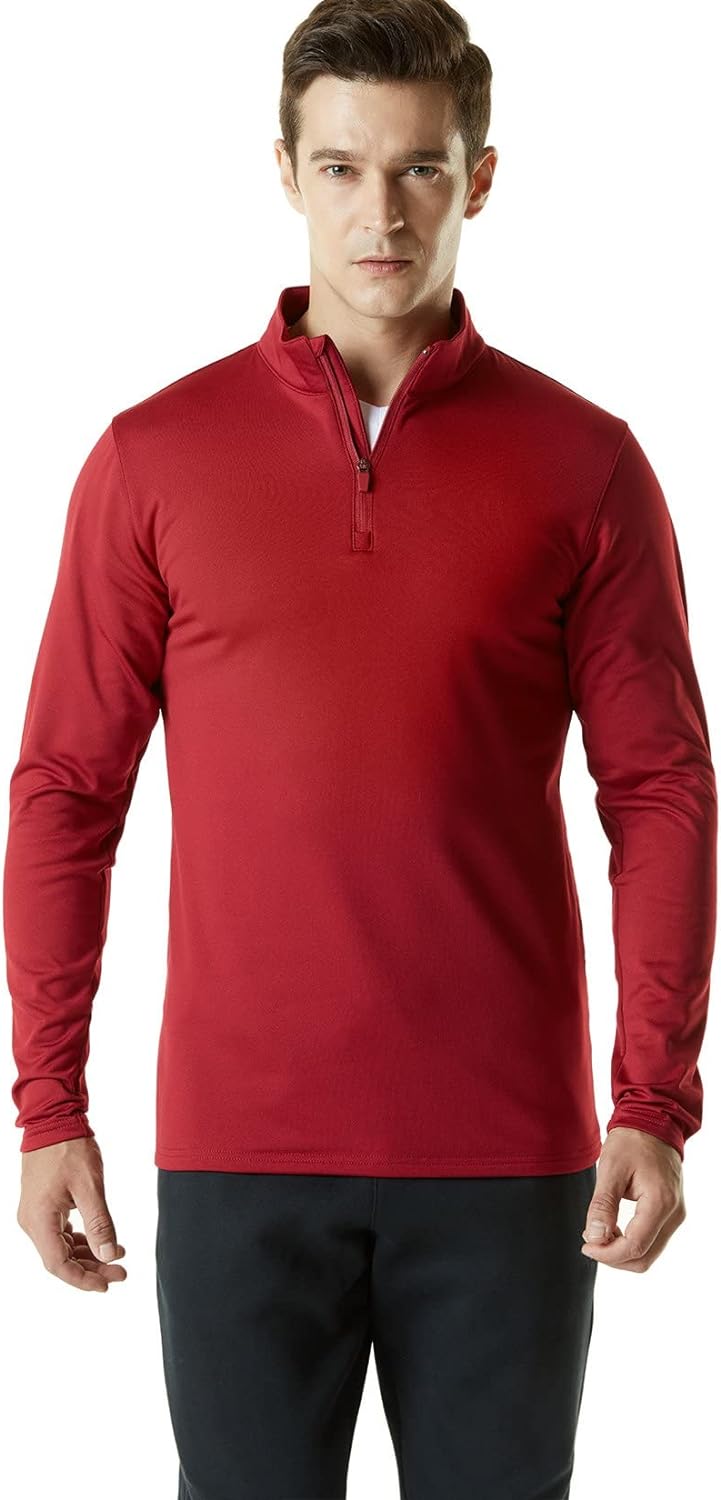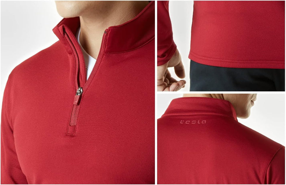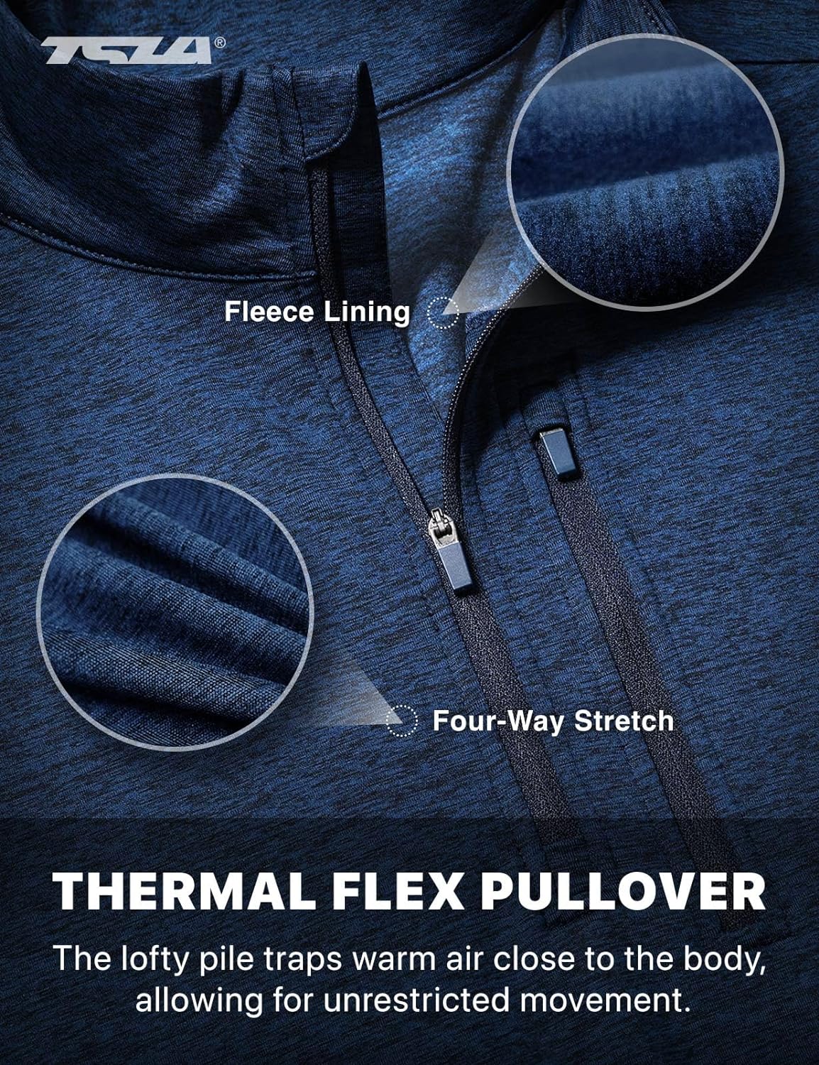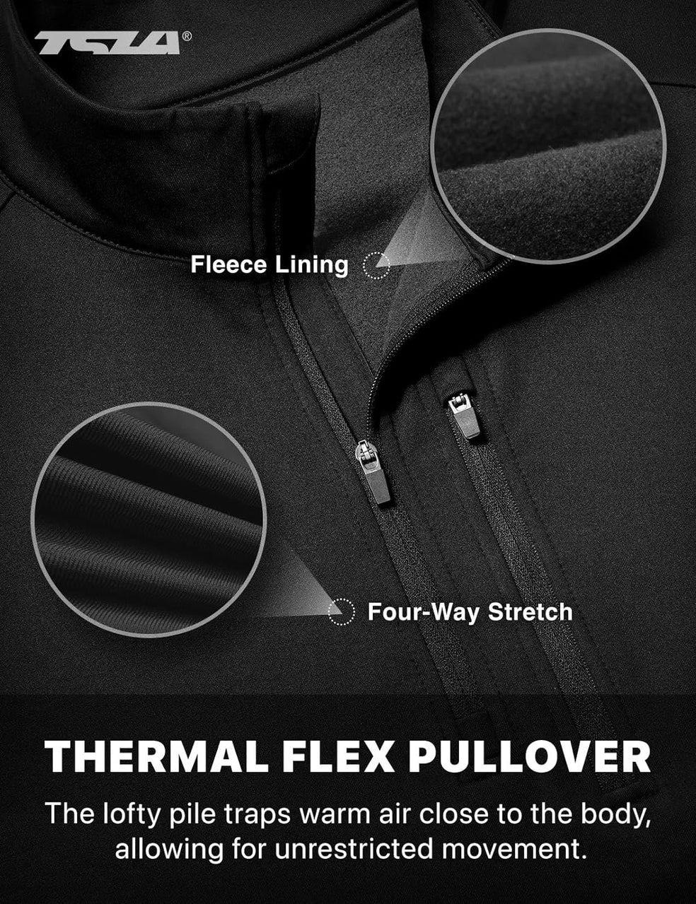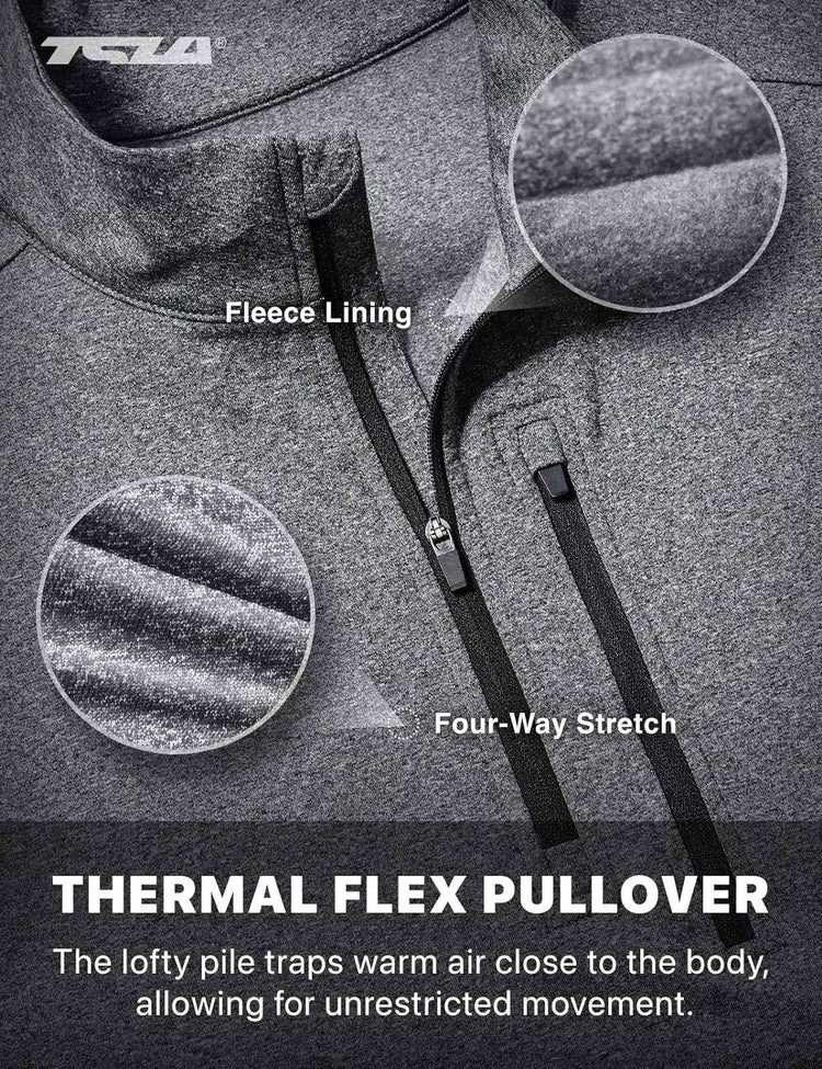TSLA Men's Quarter Zip Thermal Pullover Shirts, Winter Fleece Lined Lightweight Running Sweatshirt