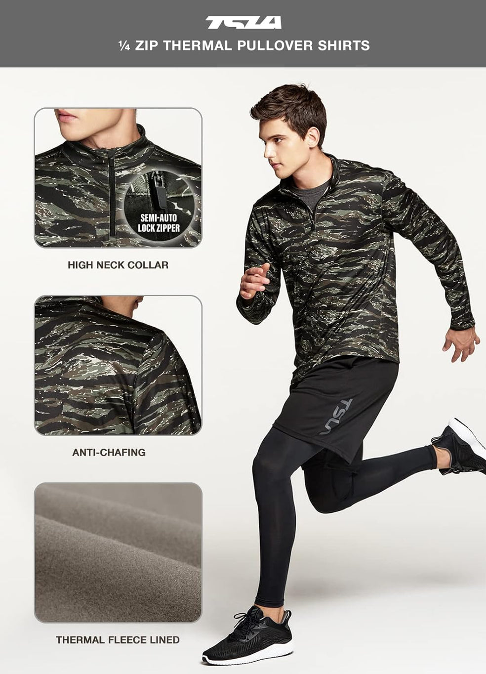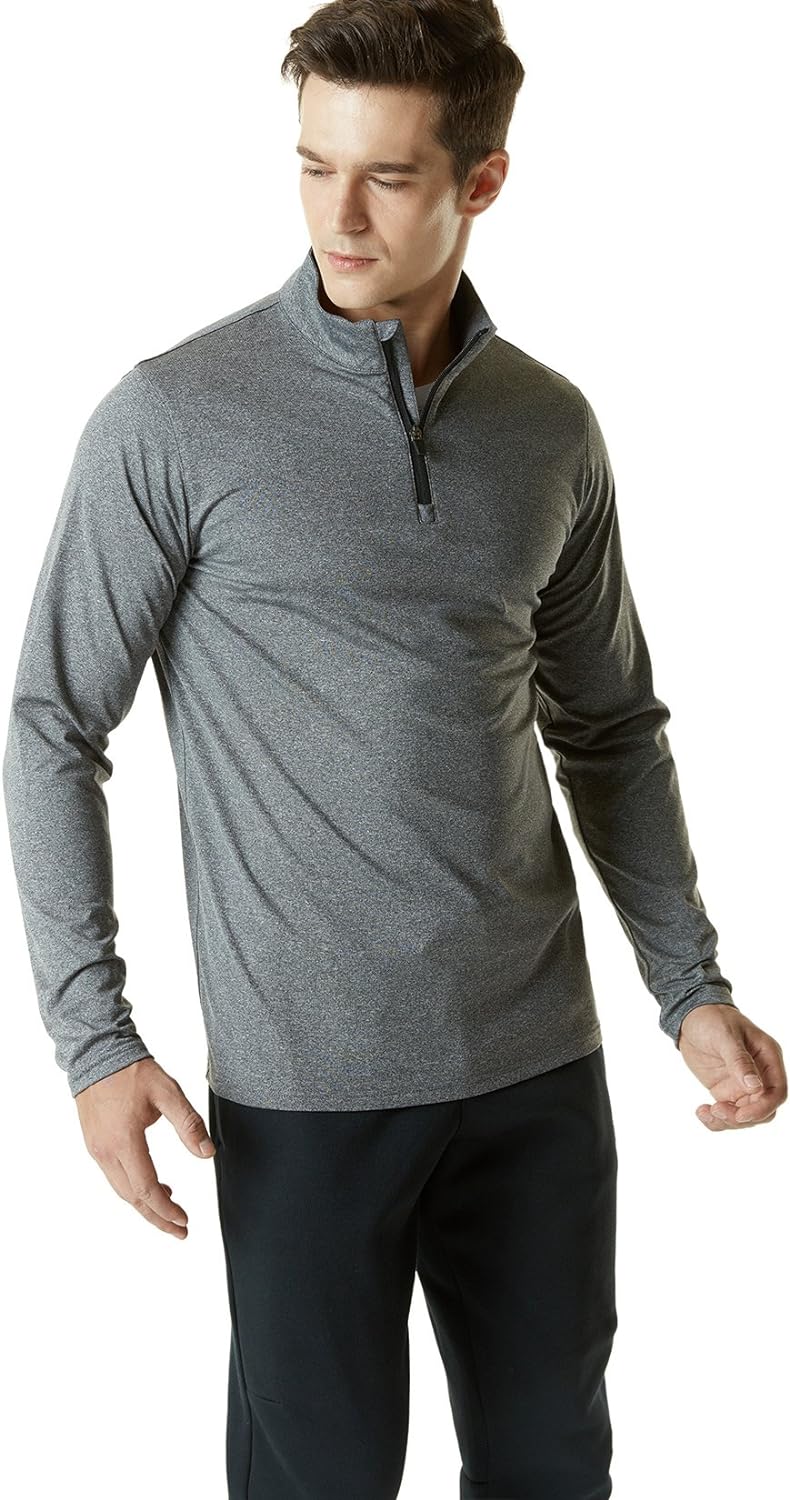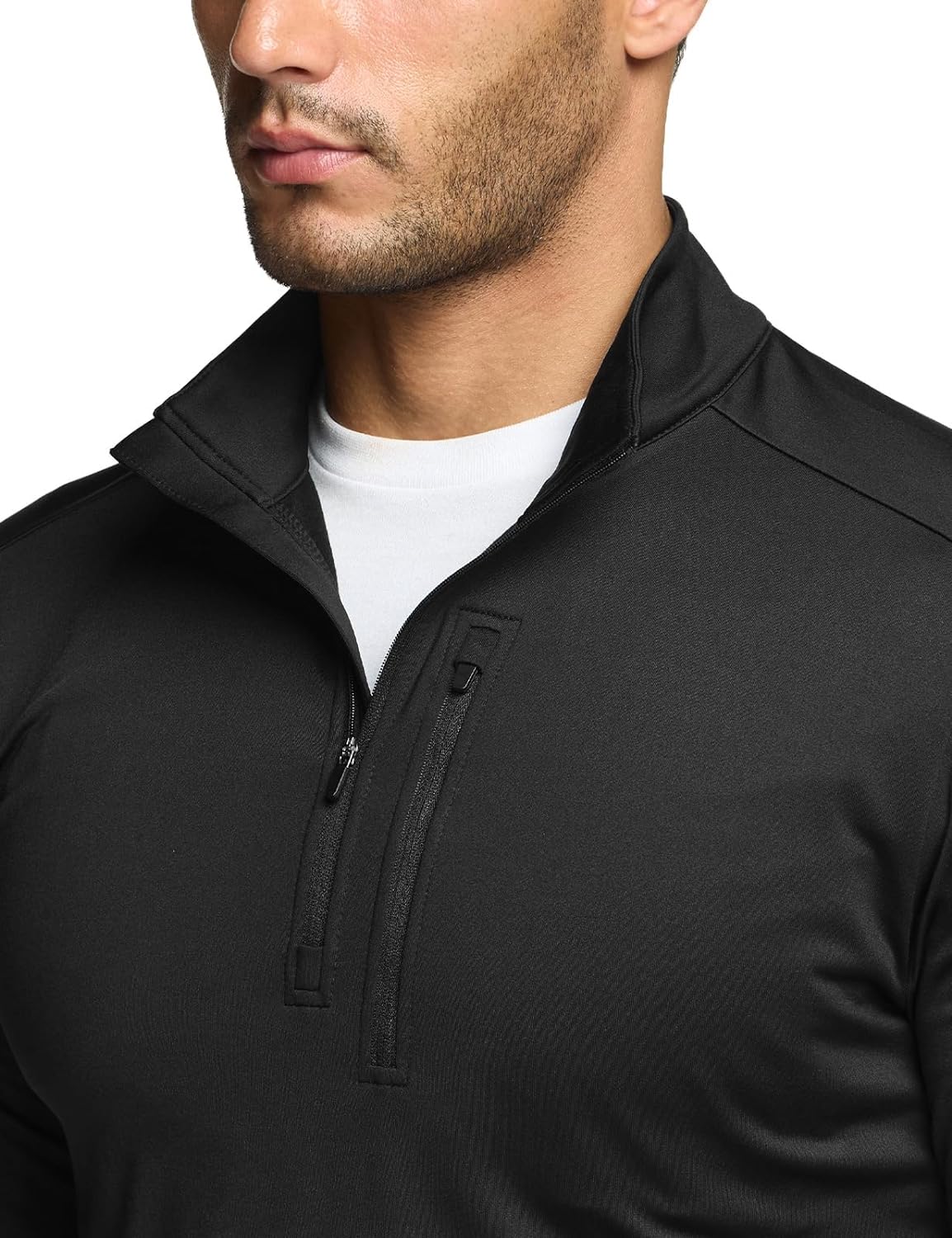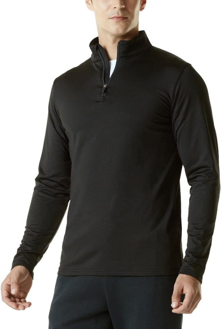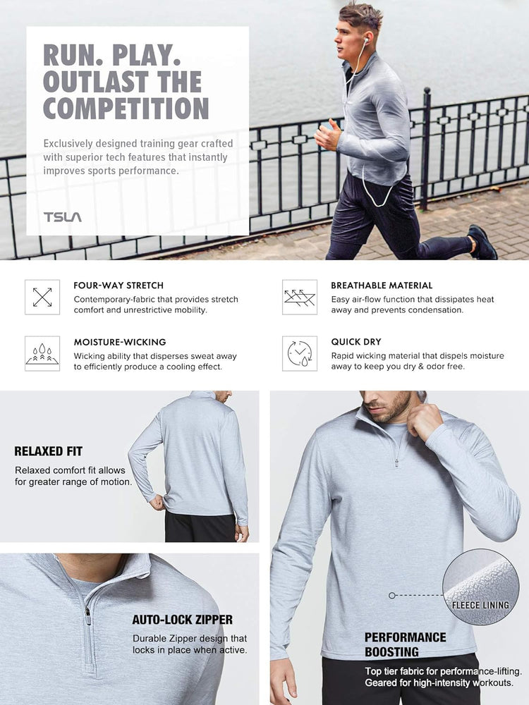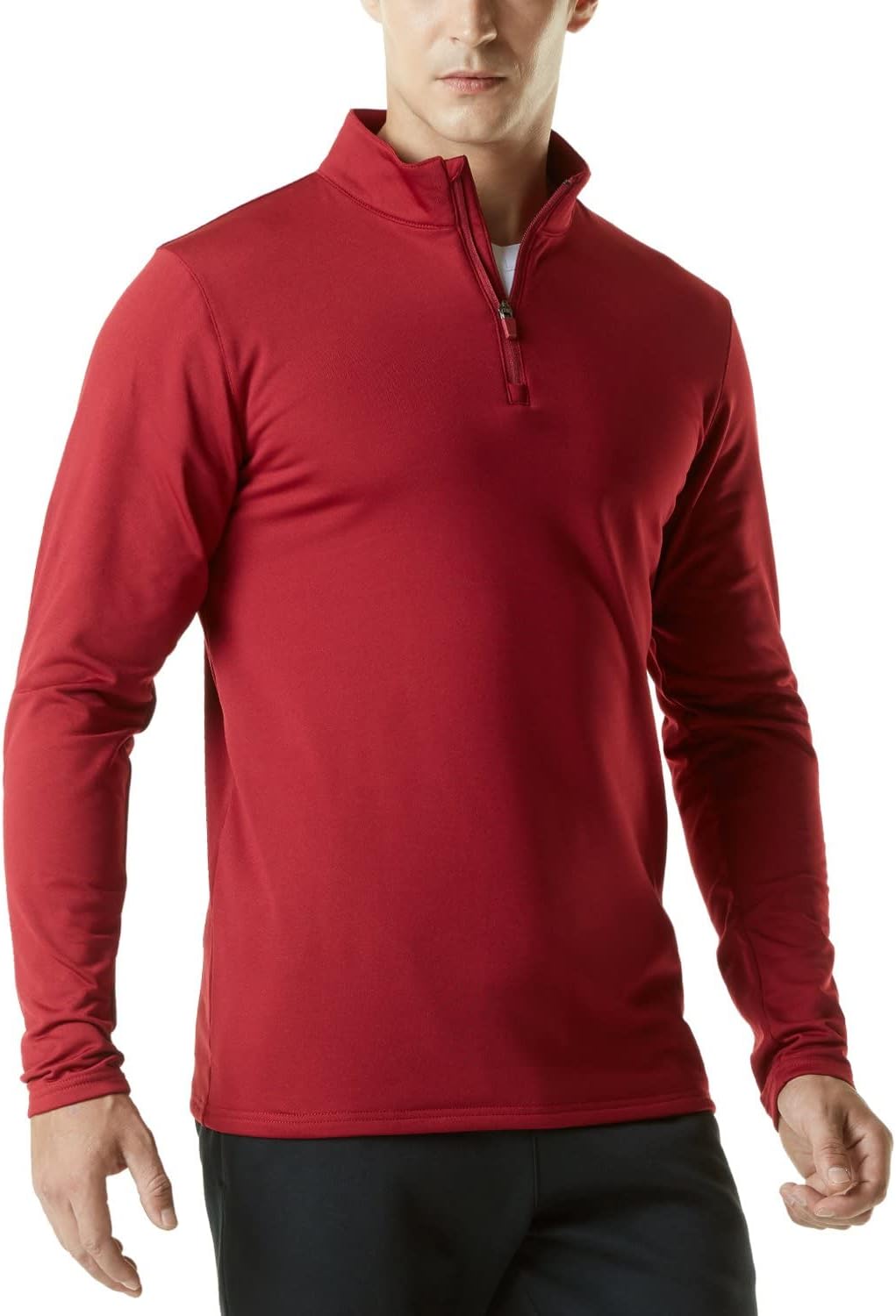 TSLA Men's Quarter Zip Thermal Pullover Shirts, Winter Fleece Lined Lightweight Running Sweatshirt