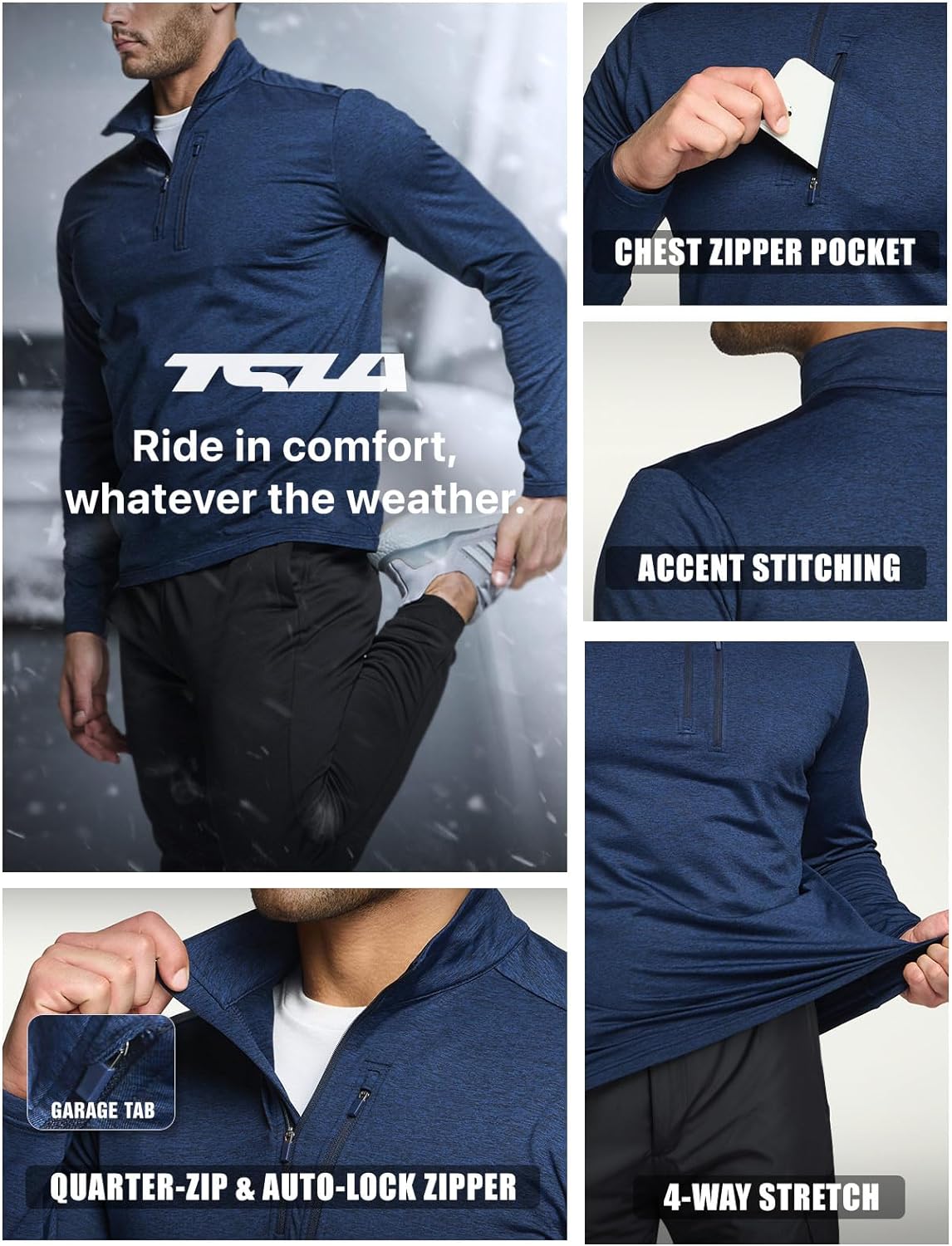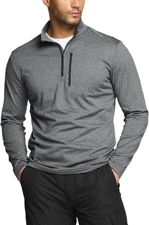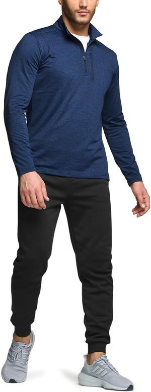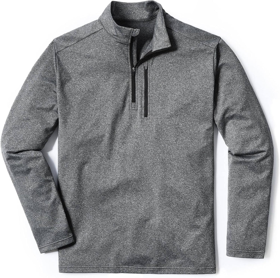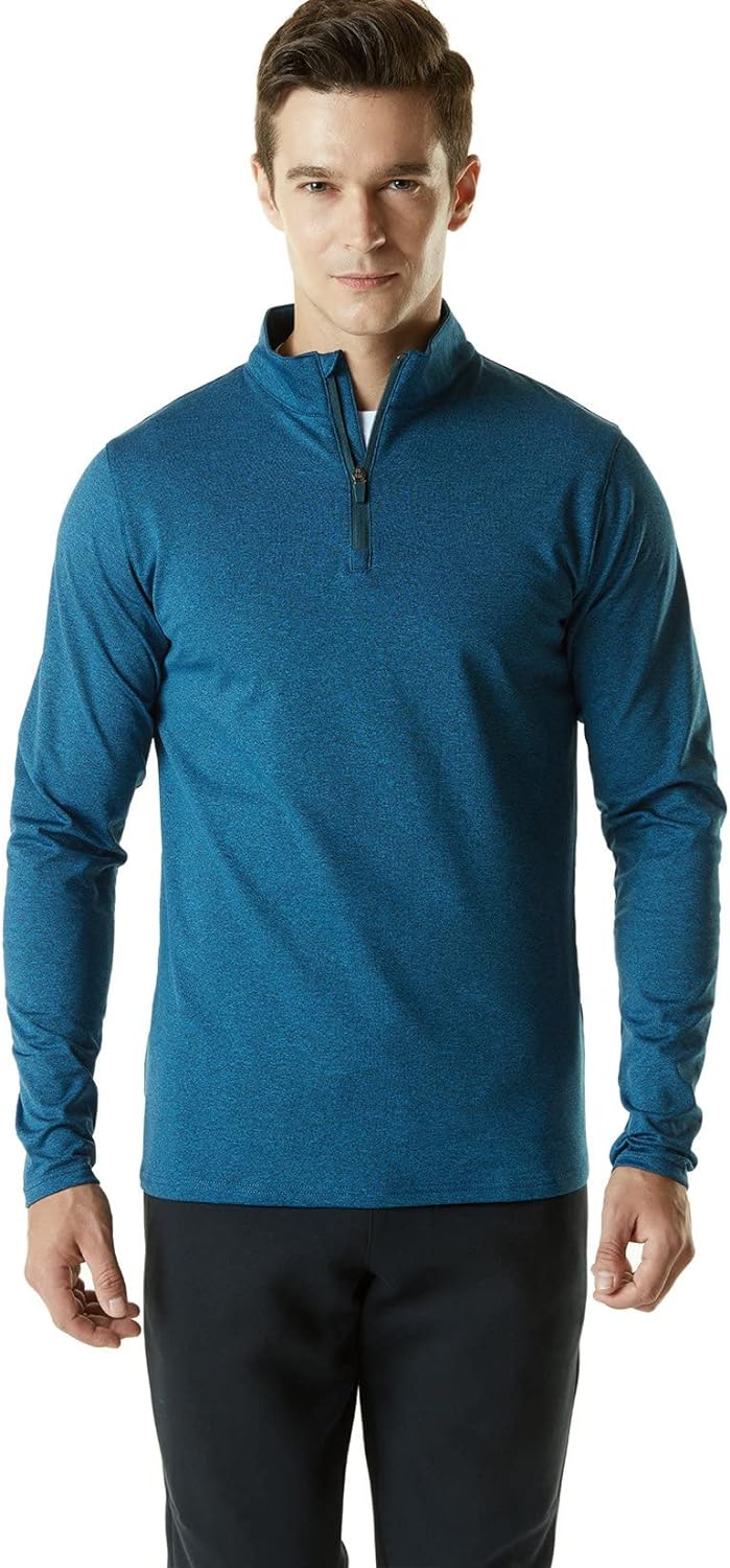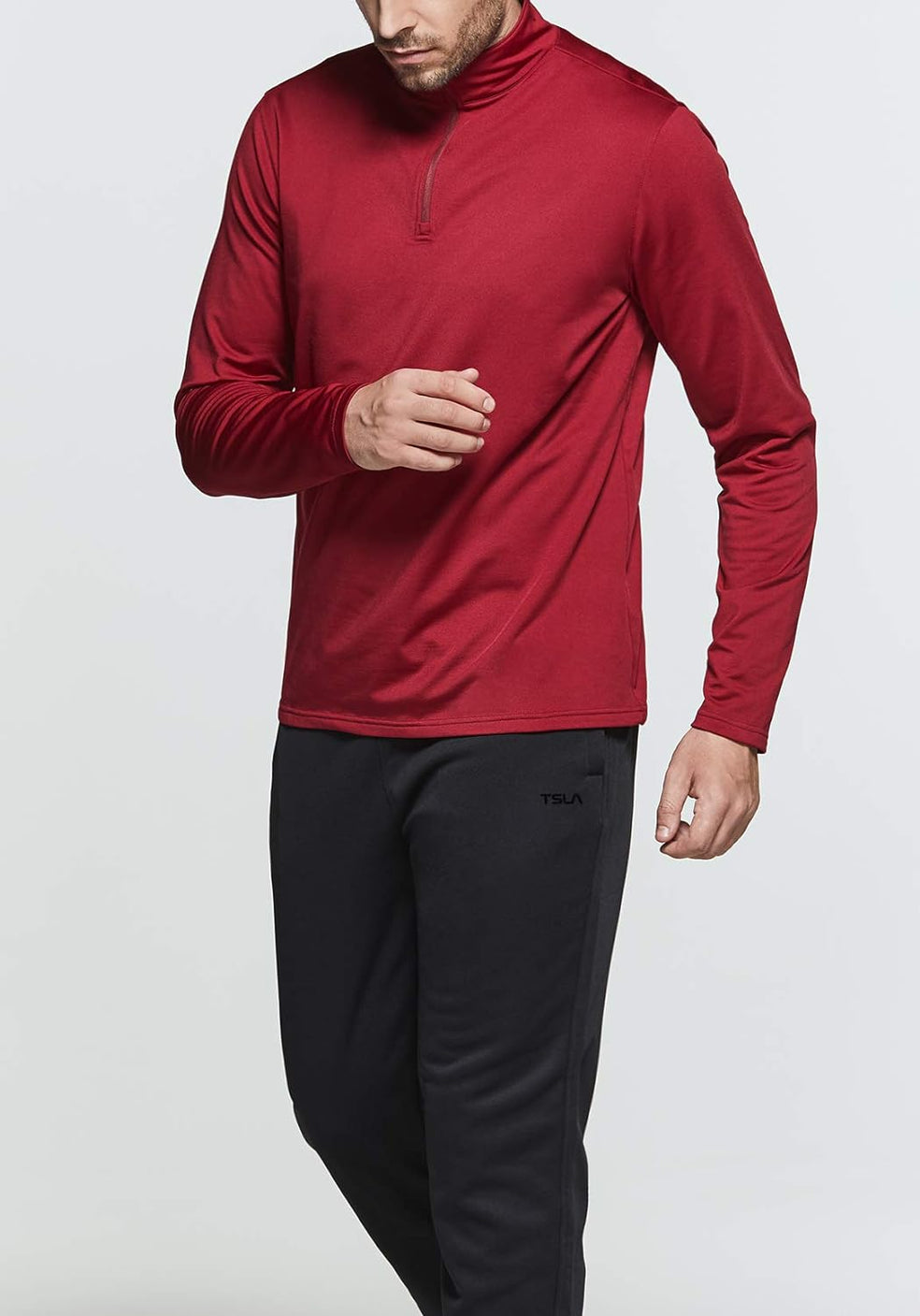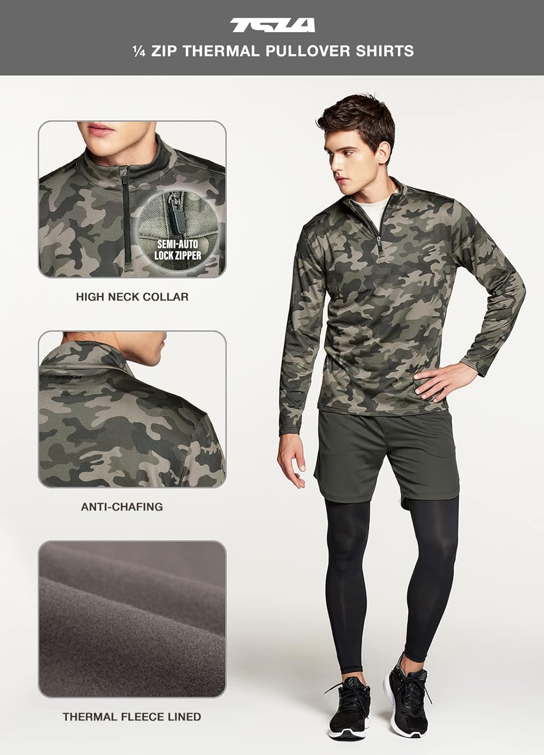 TSLA Men's Quarter Zip Thermal Pullover Shirts, Winter Fleece Lined Lightweight Running Sweatshirt
