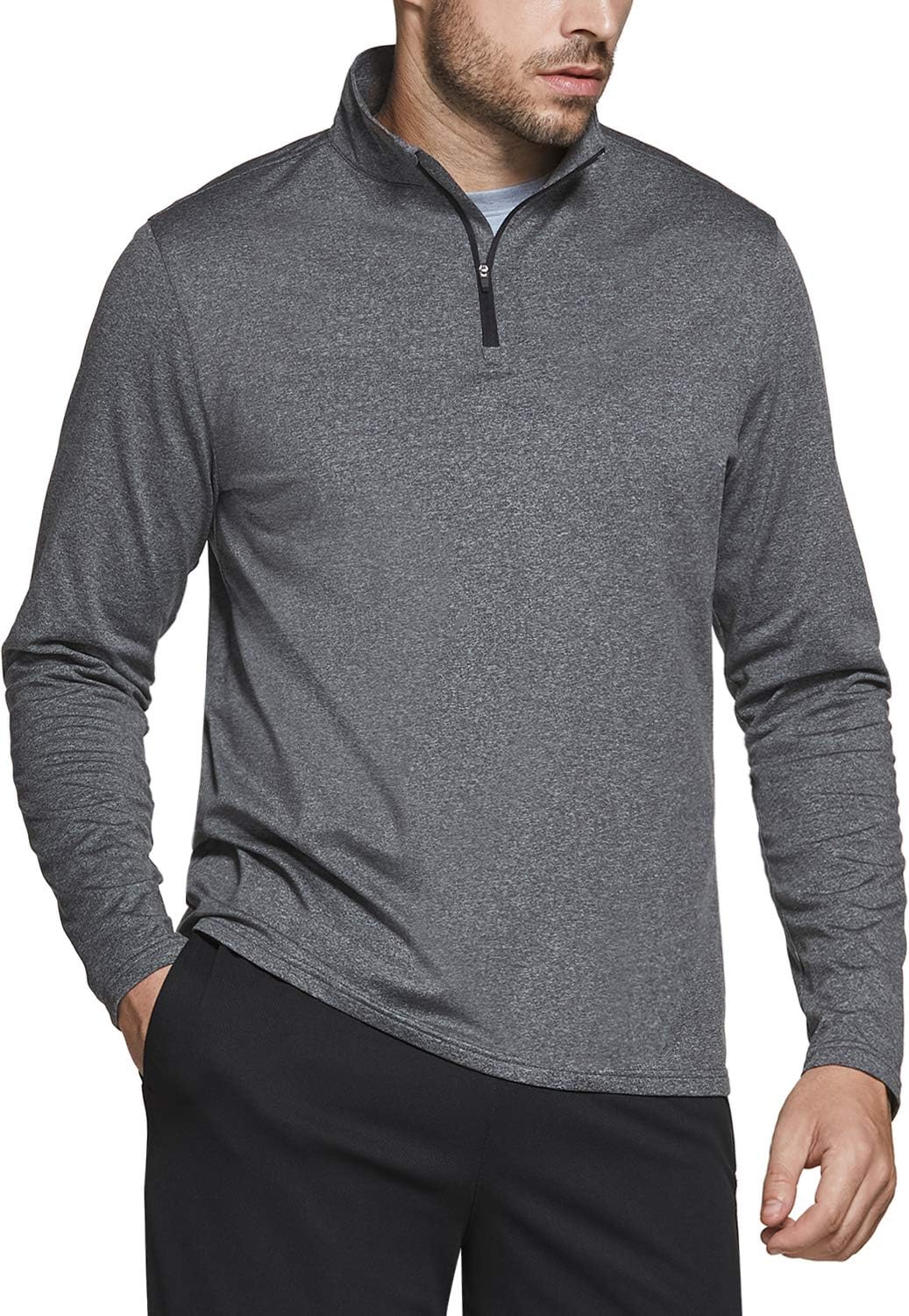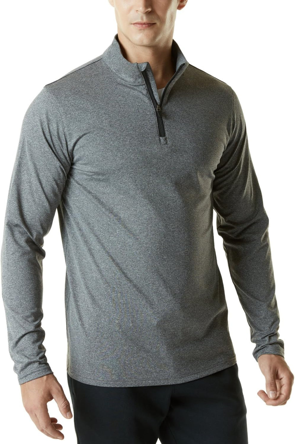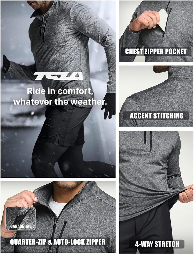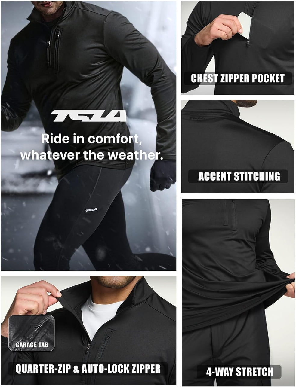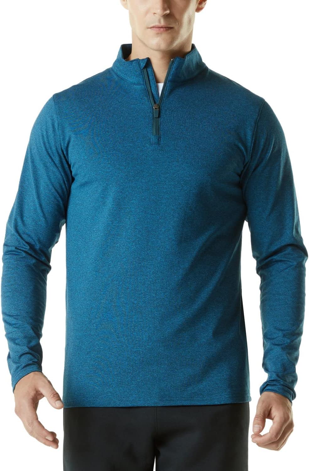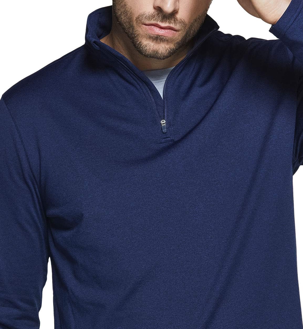 TSLA Men's Quarter Zip Thermal Pullover Shirts, Winter Fleece Lined Lightweight Running Sweatshirt