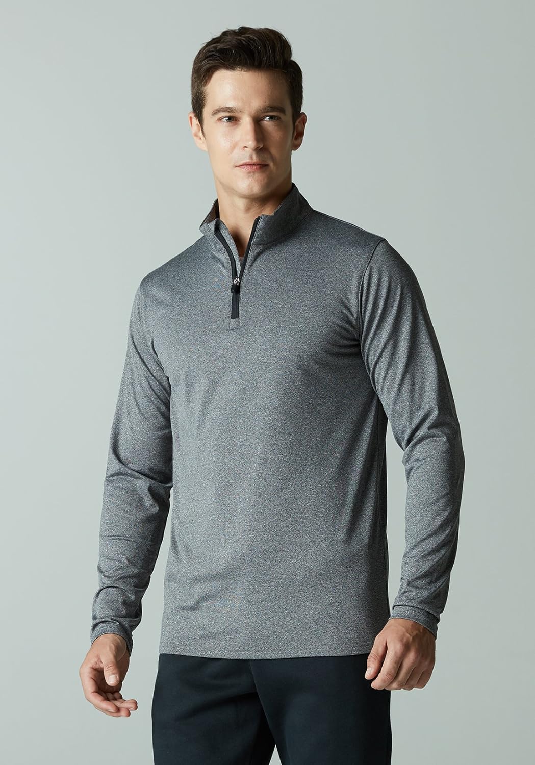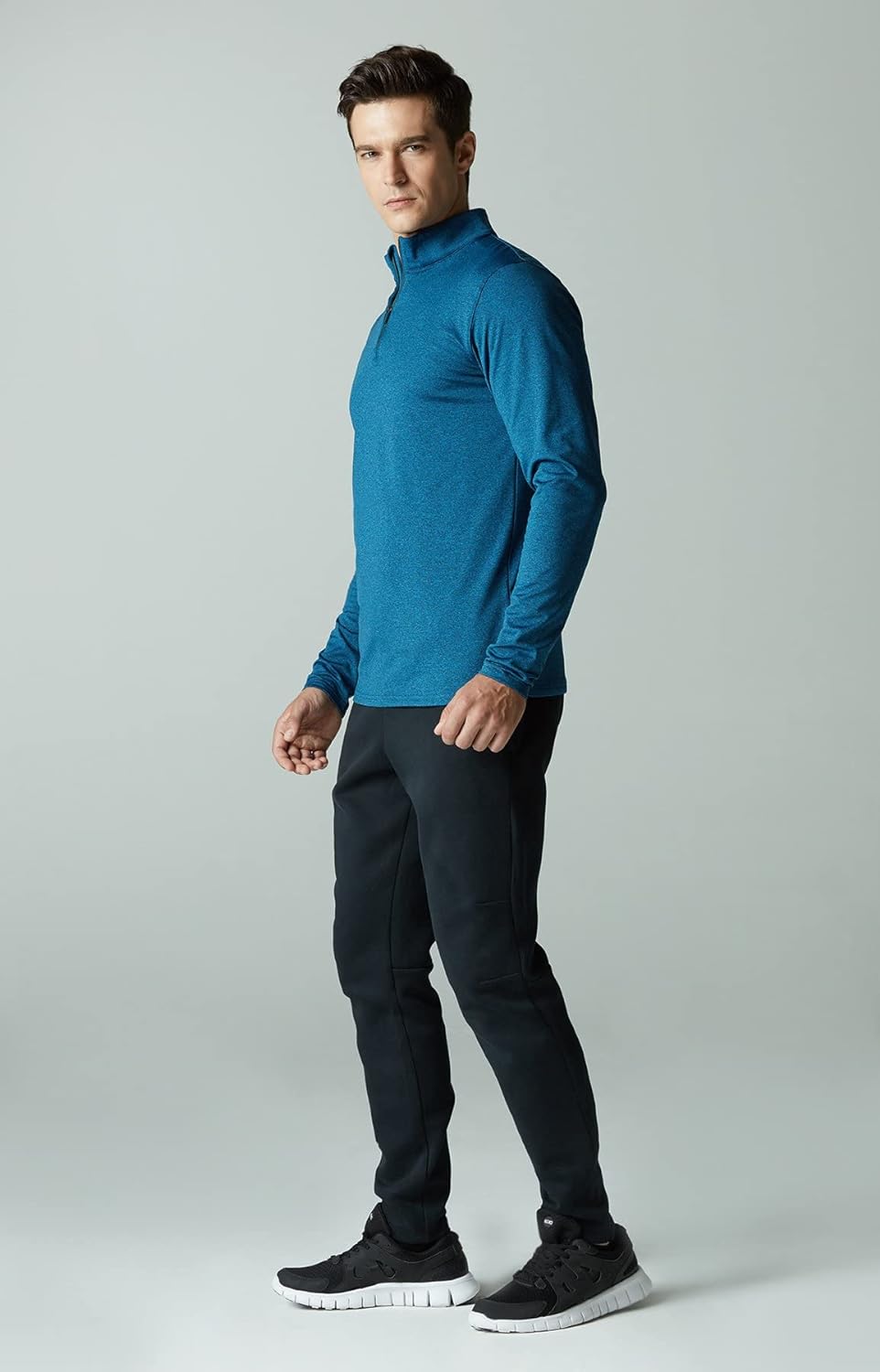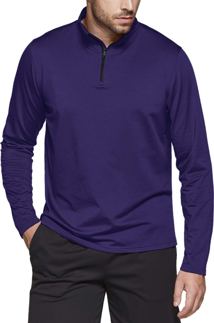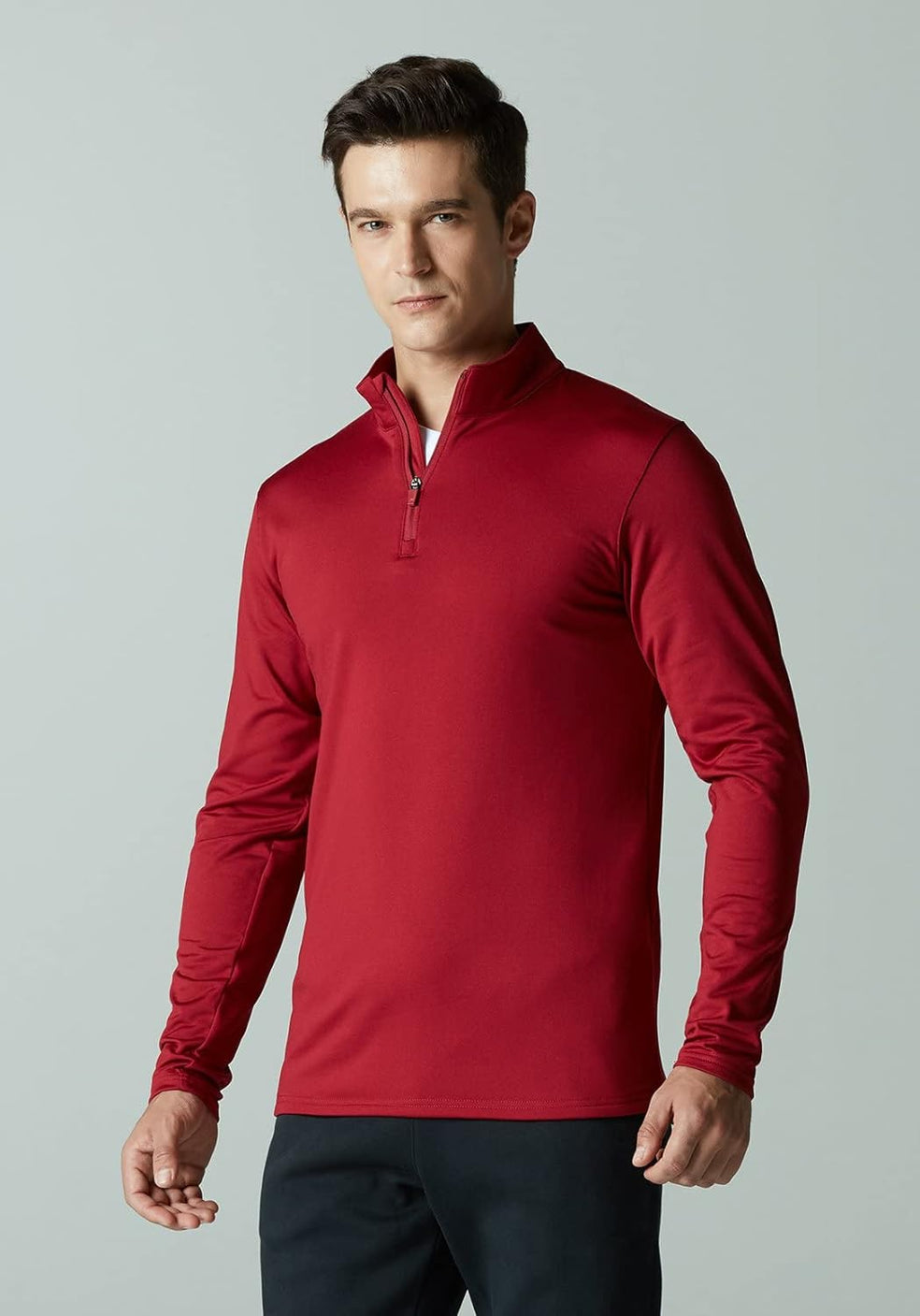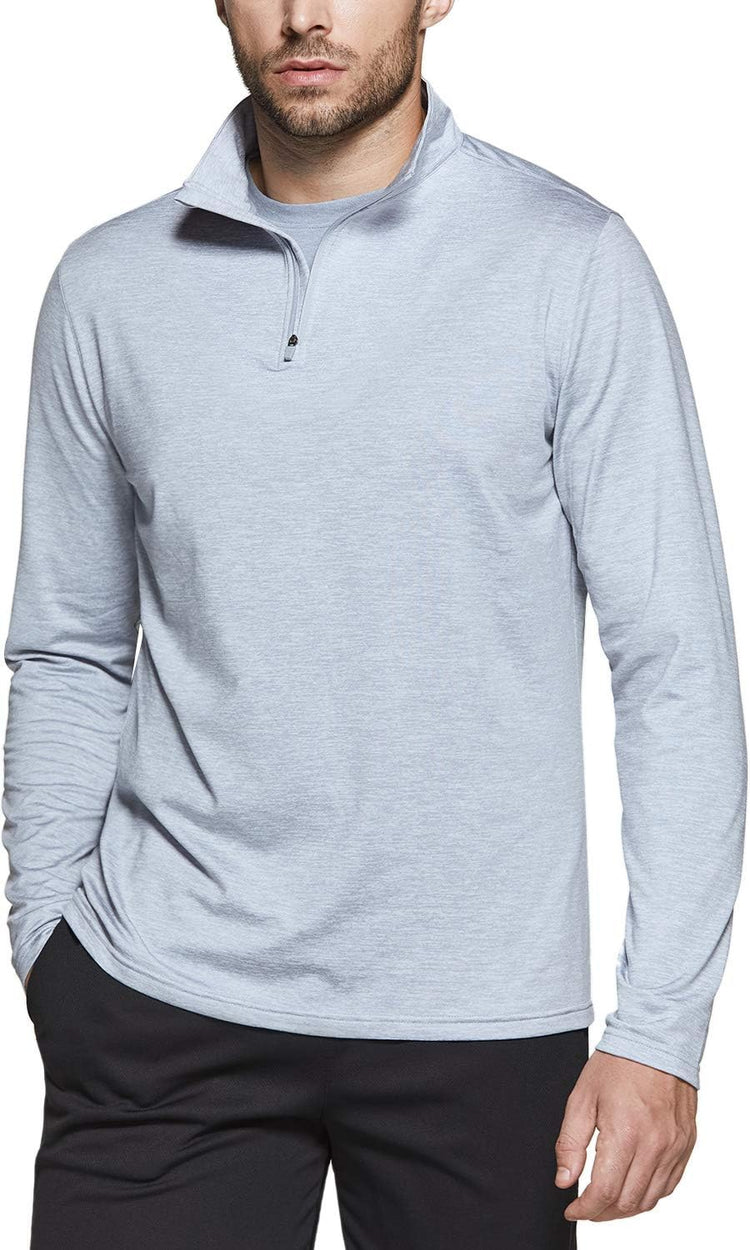 TSLA Men's Quarter Zip Thermal Pullover Shirts, Winter Fleece Lined Lightweight Running Sweatshirt
