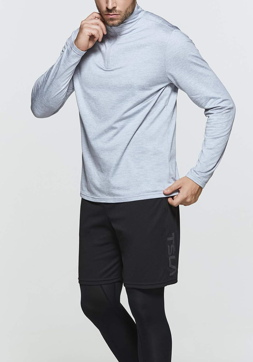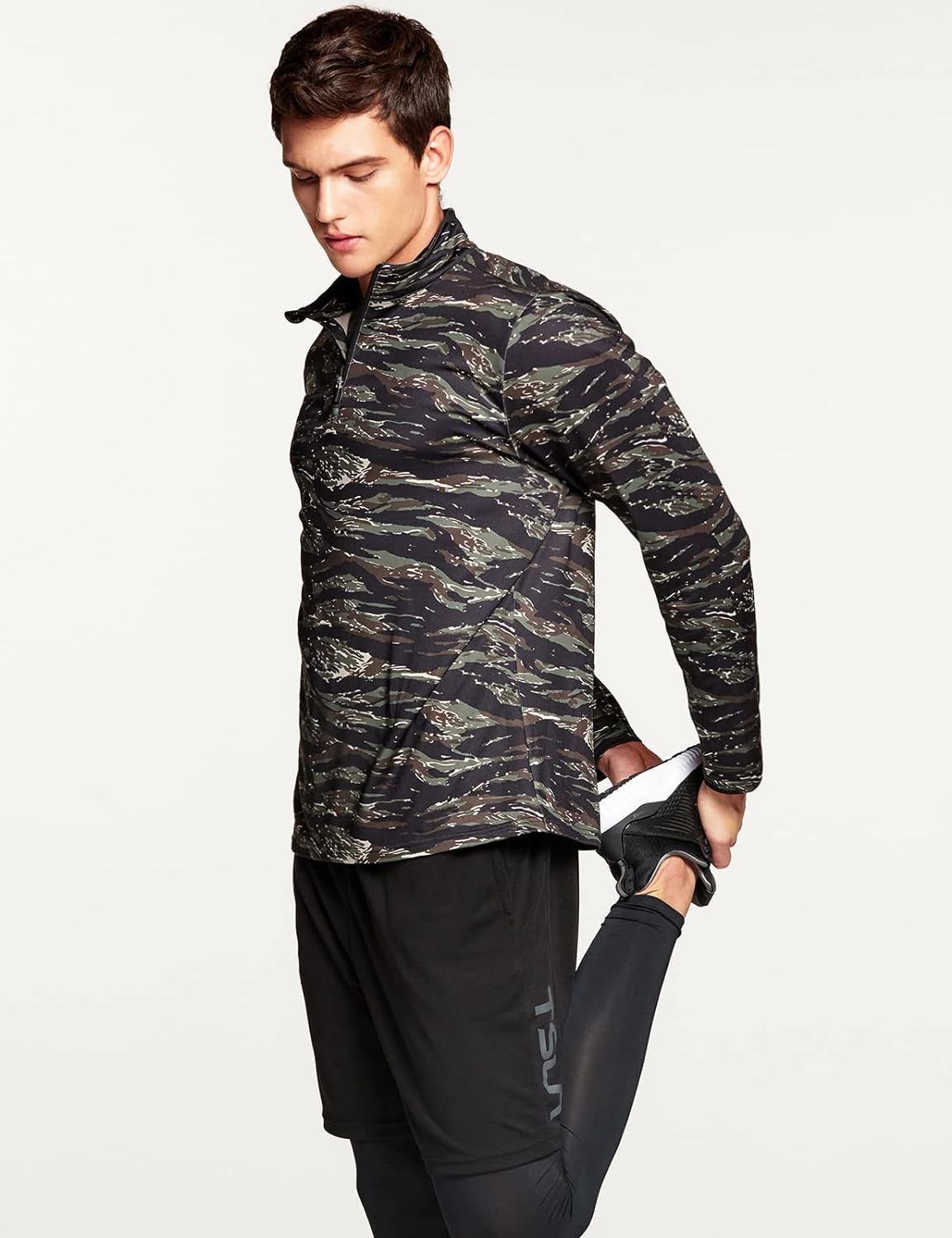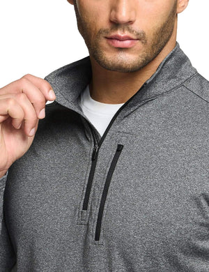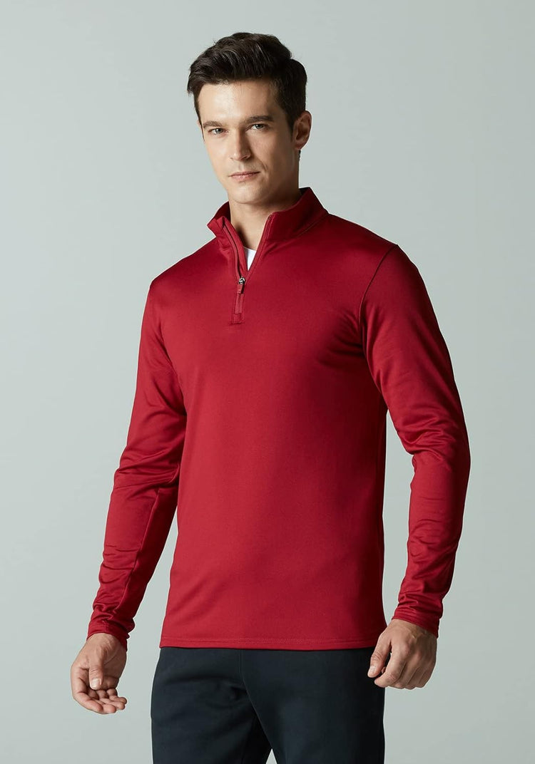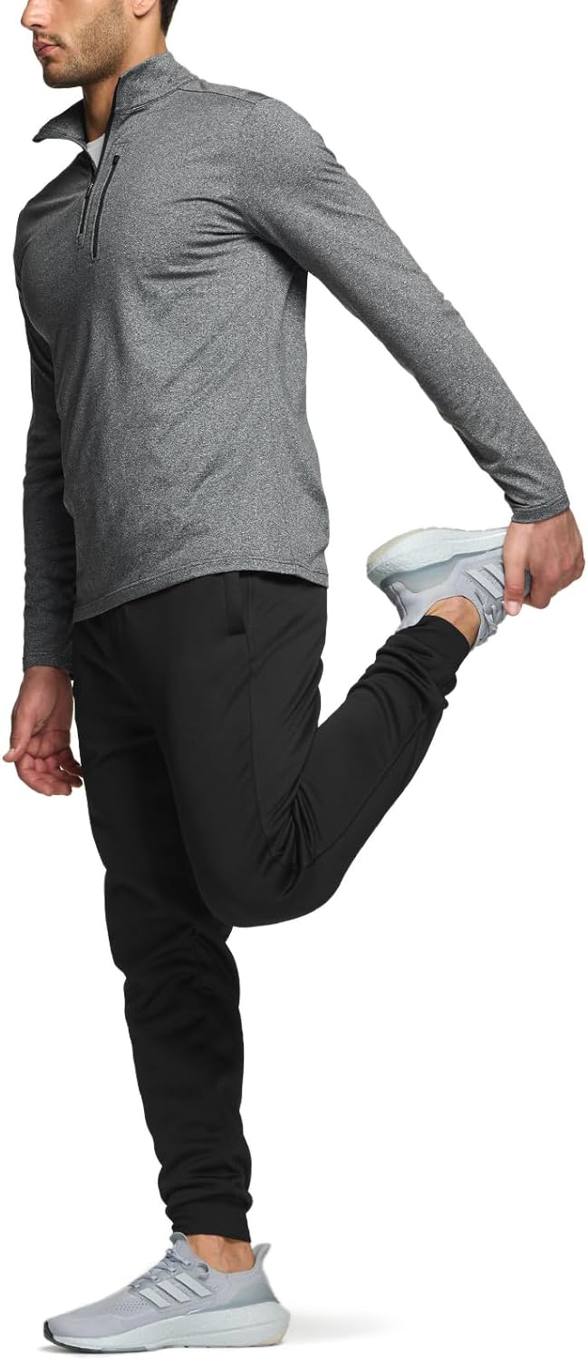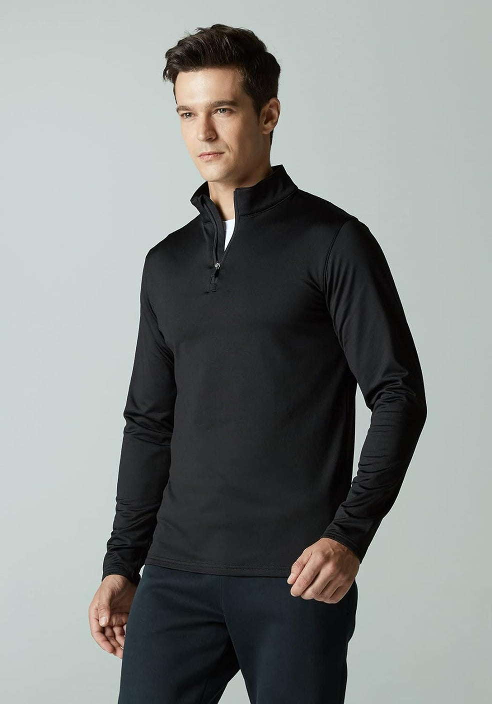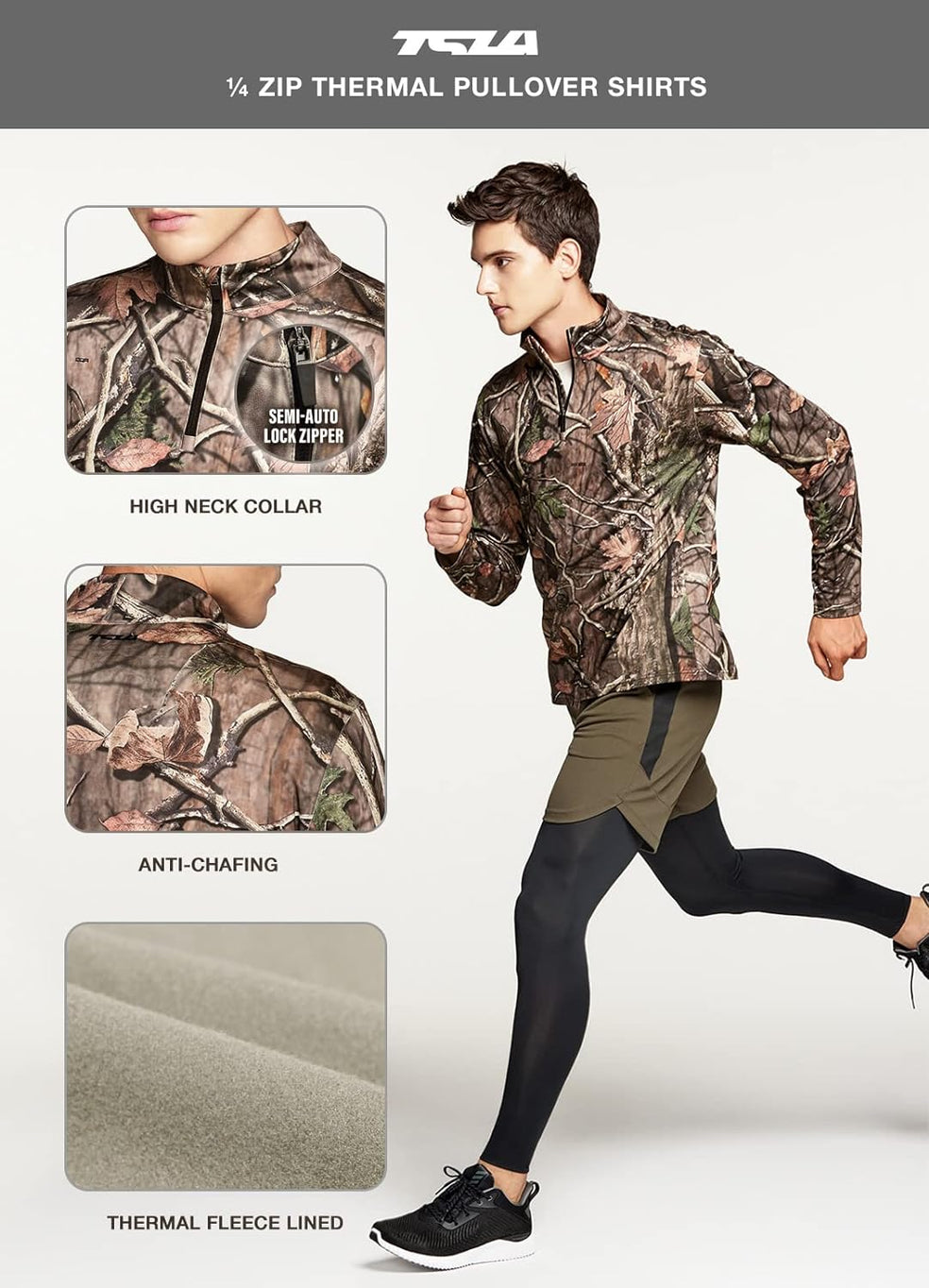 TSLA Men's Quarter Zip Thermal Pullover Shirts, Winter Fleece Lined Lightweight Running Sweatshirt