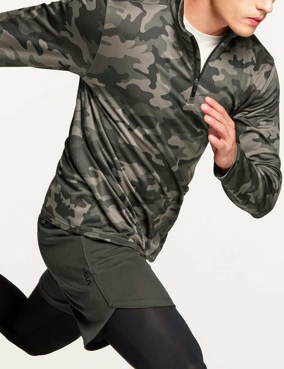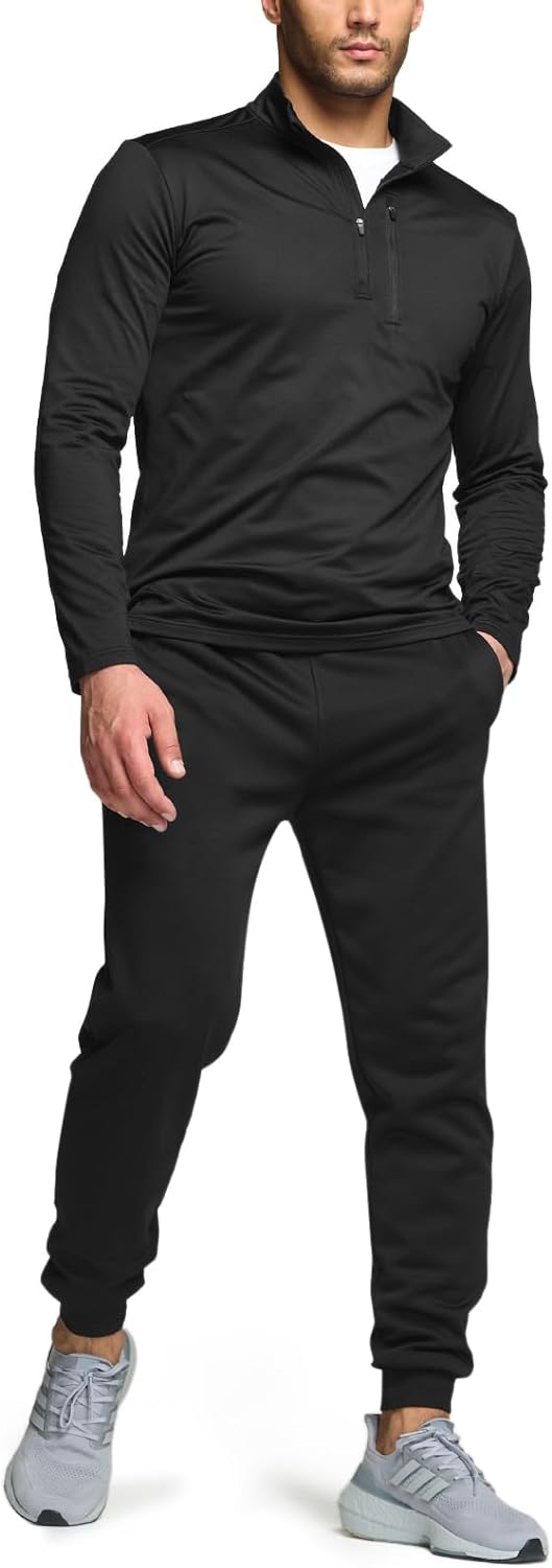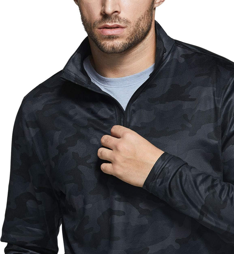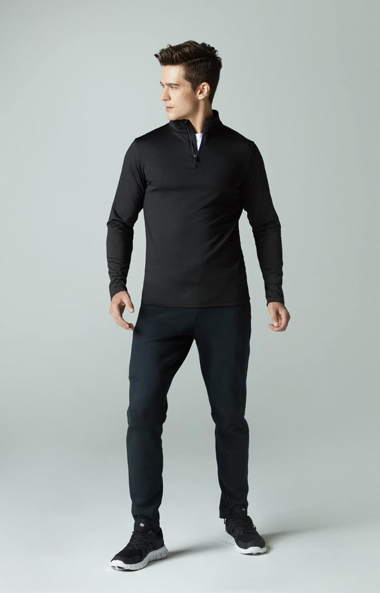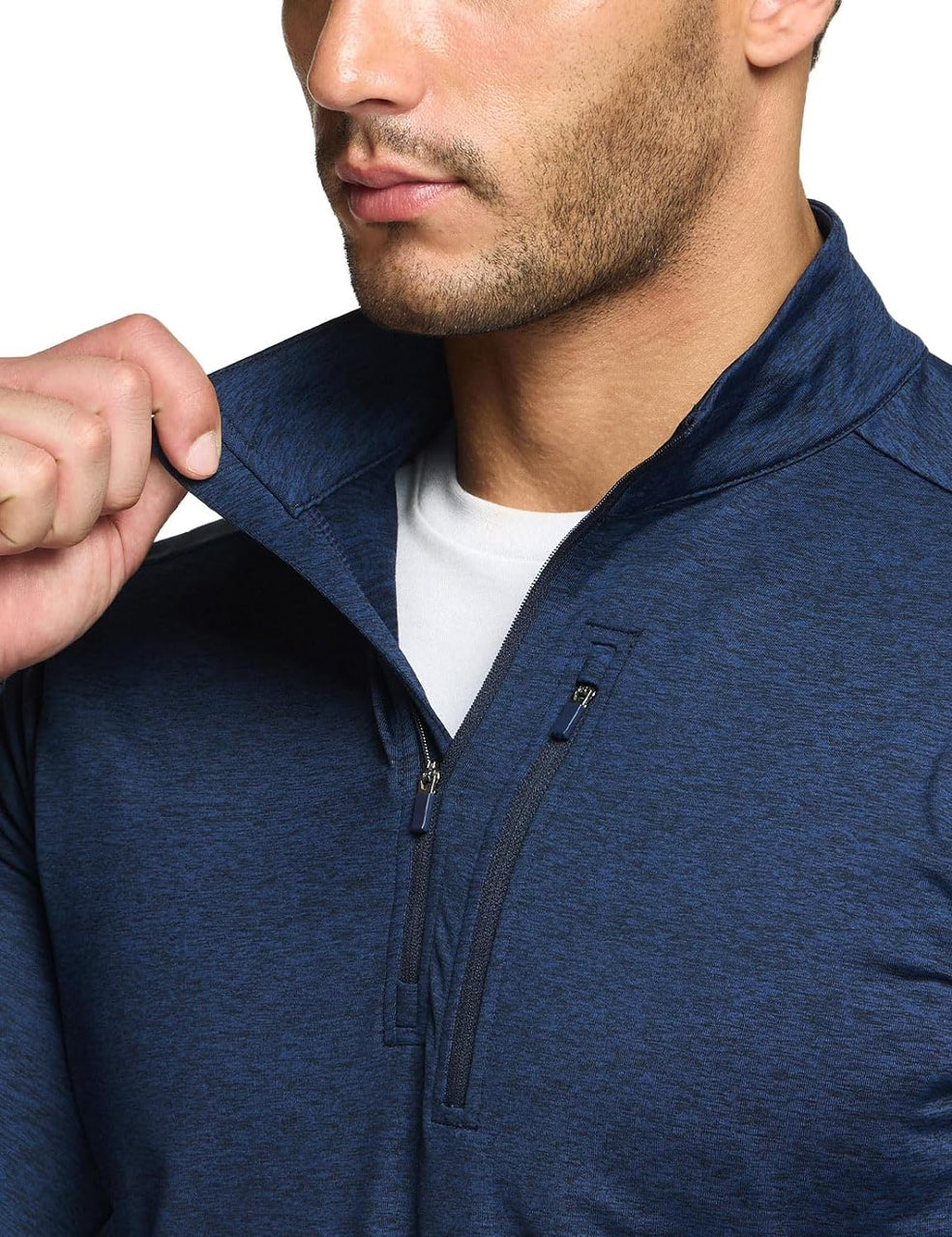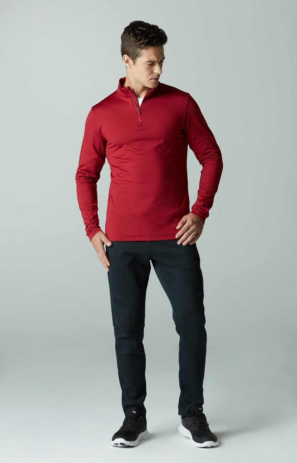 TSLA Men's Quarter Zip Thermal Pullover Shirts, Winter Fleece Lined Lightweight Running Sweatshirt