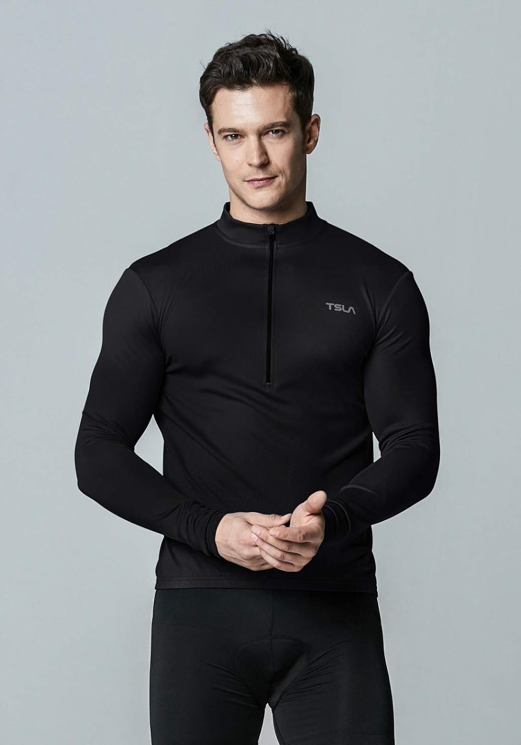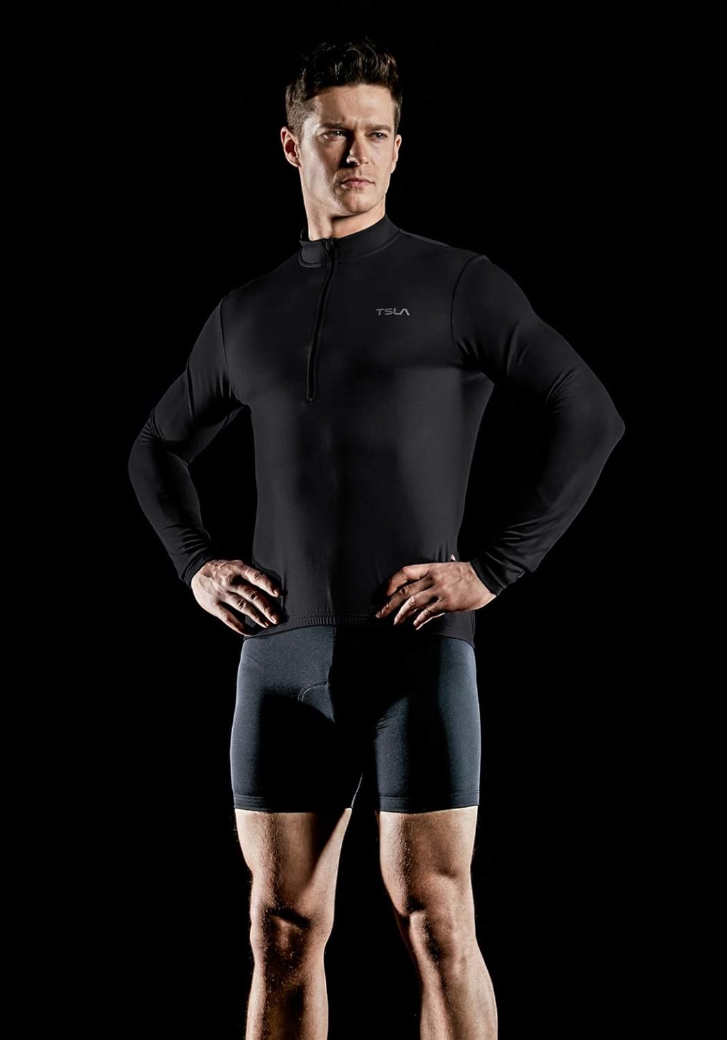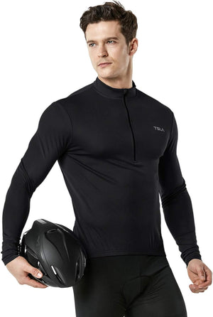 TSLA - Men's Triathlon Cycling Jersey Breathable Reflective Quick Dry Long Sleeve XXL Unique(mct21) - Black