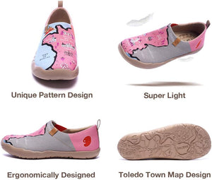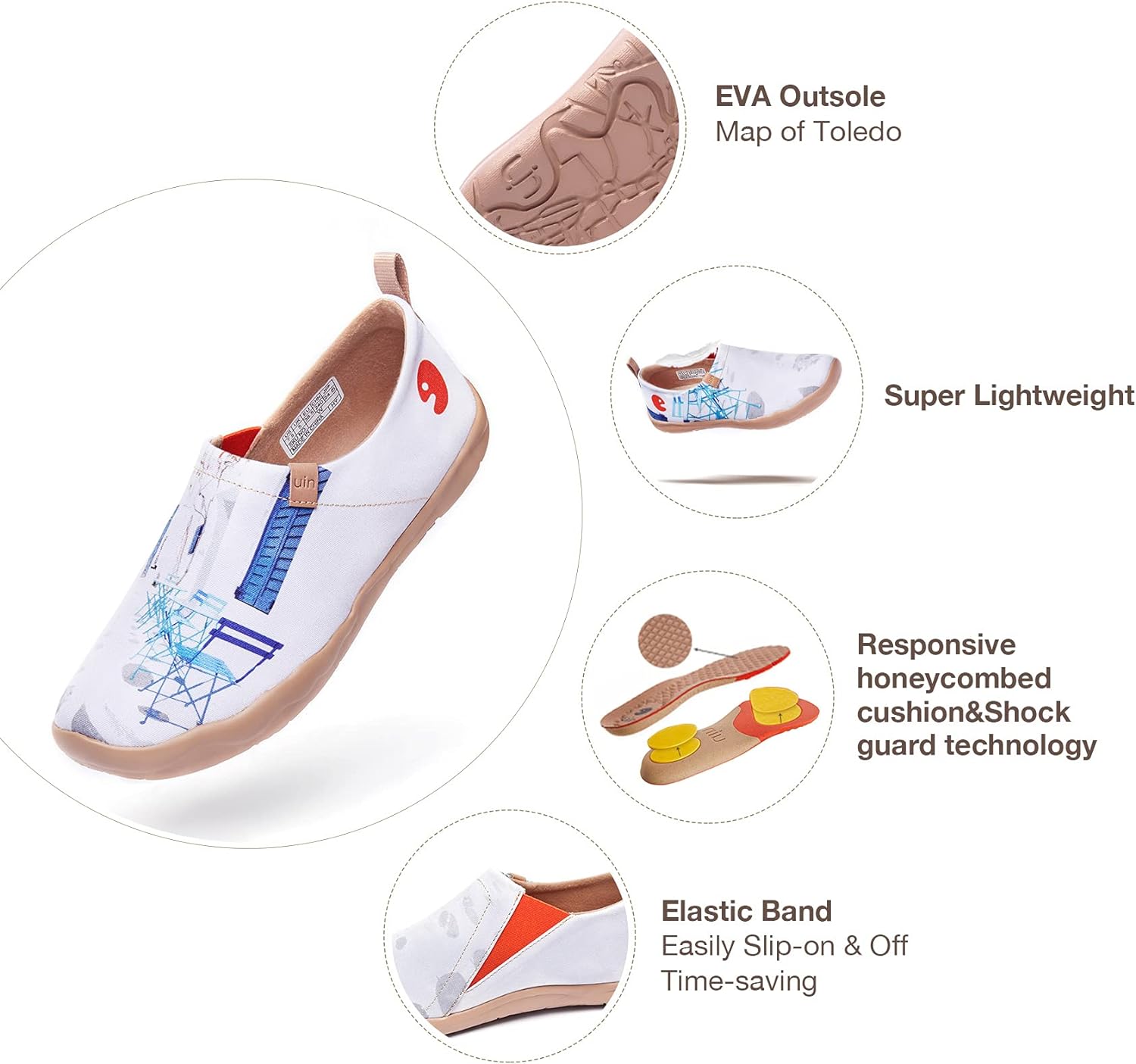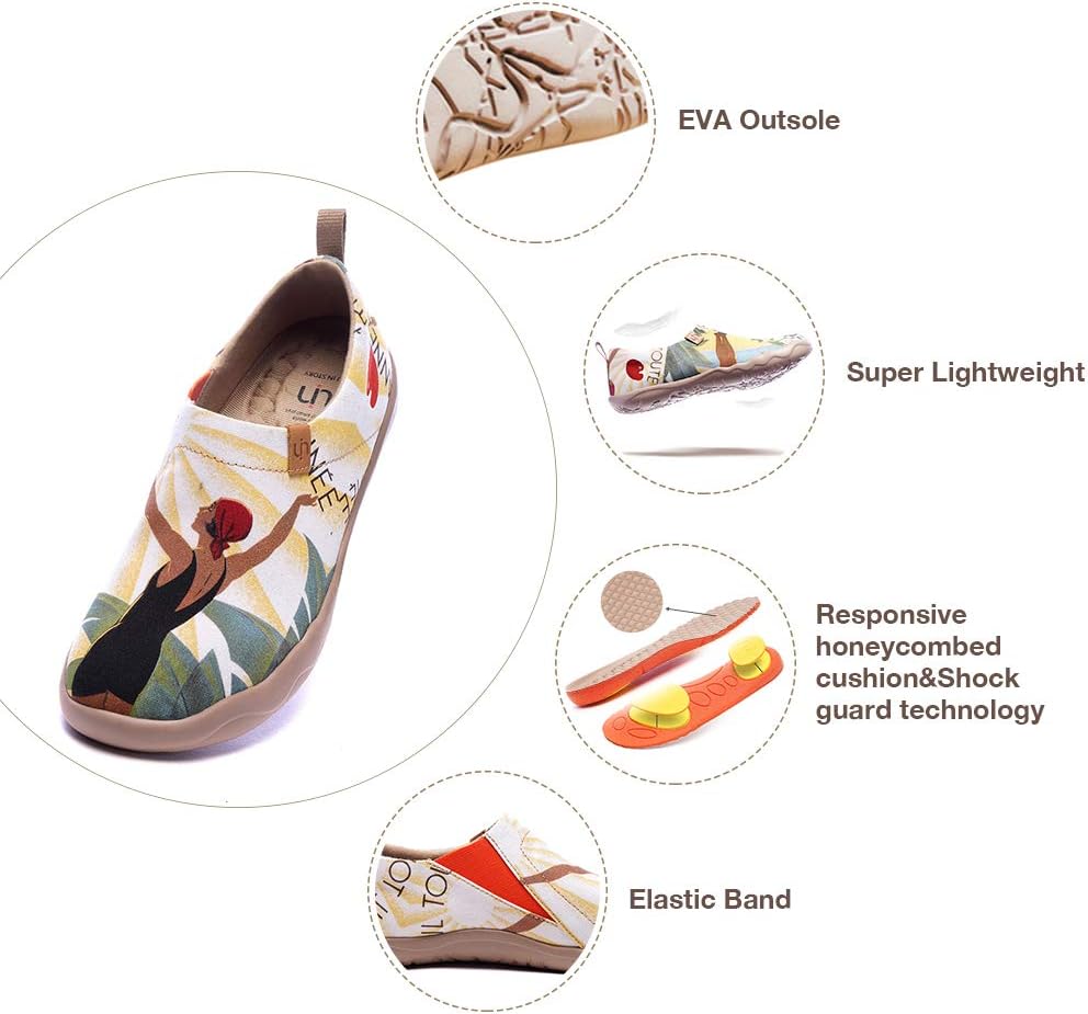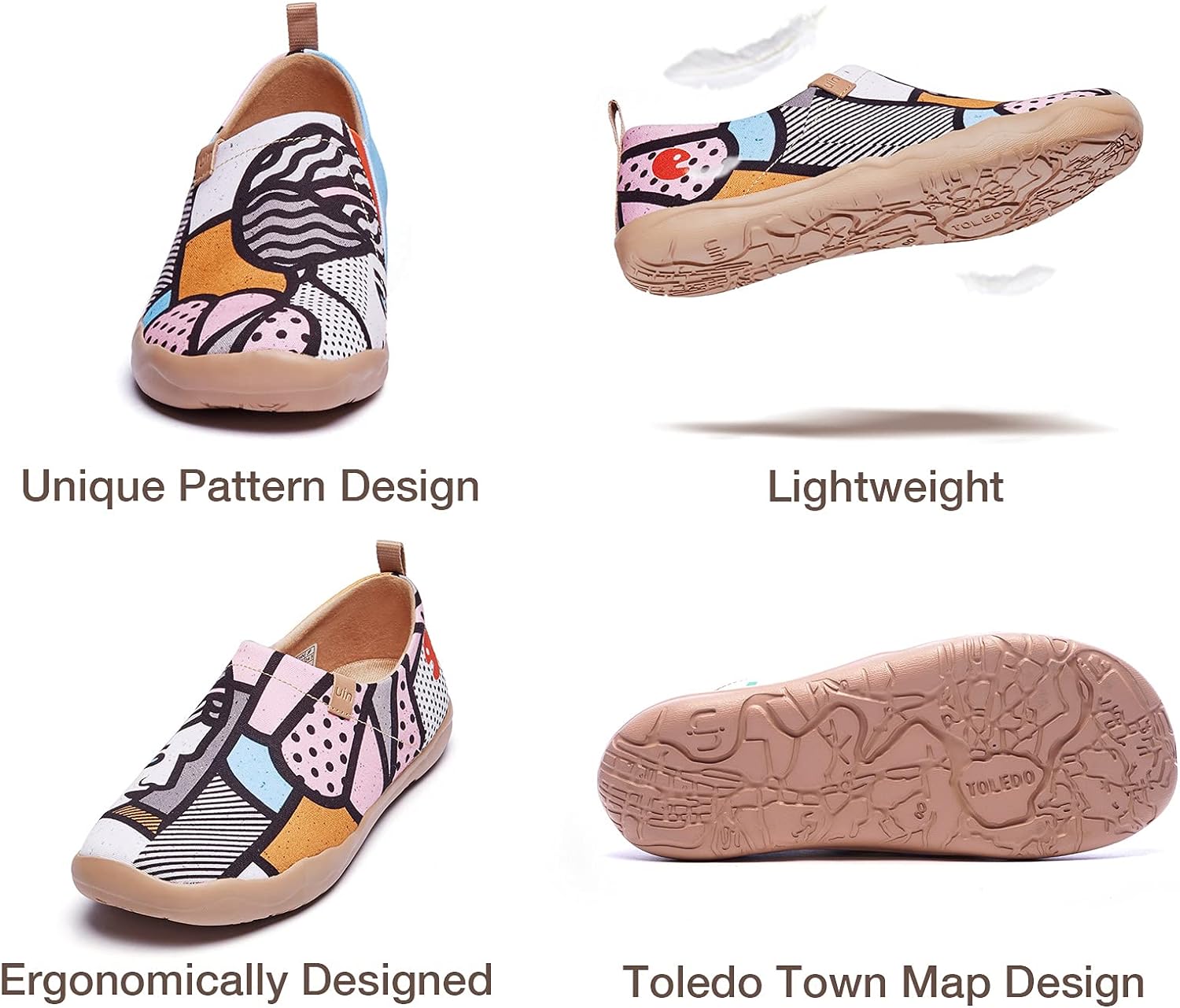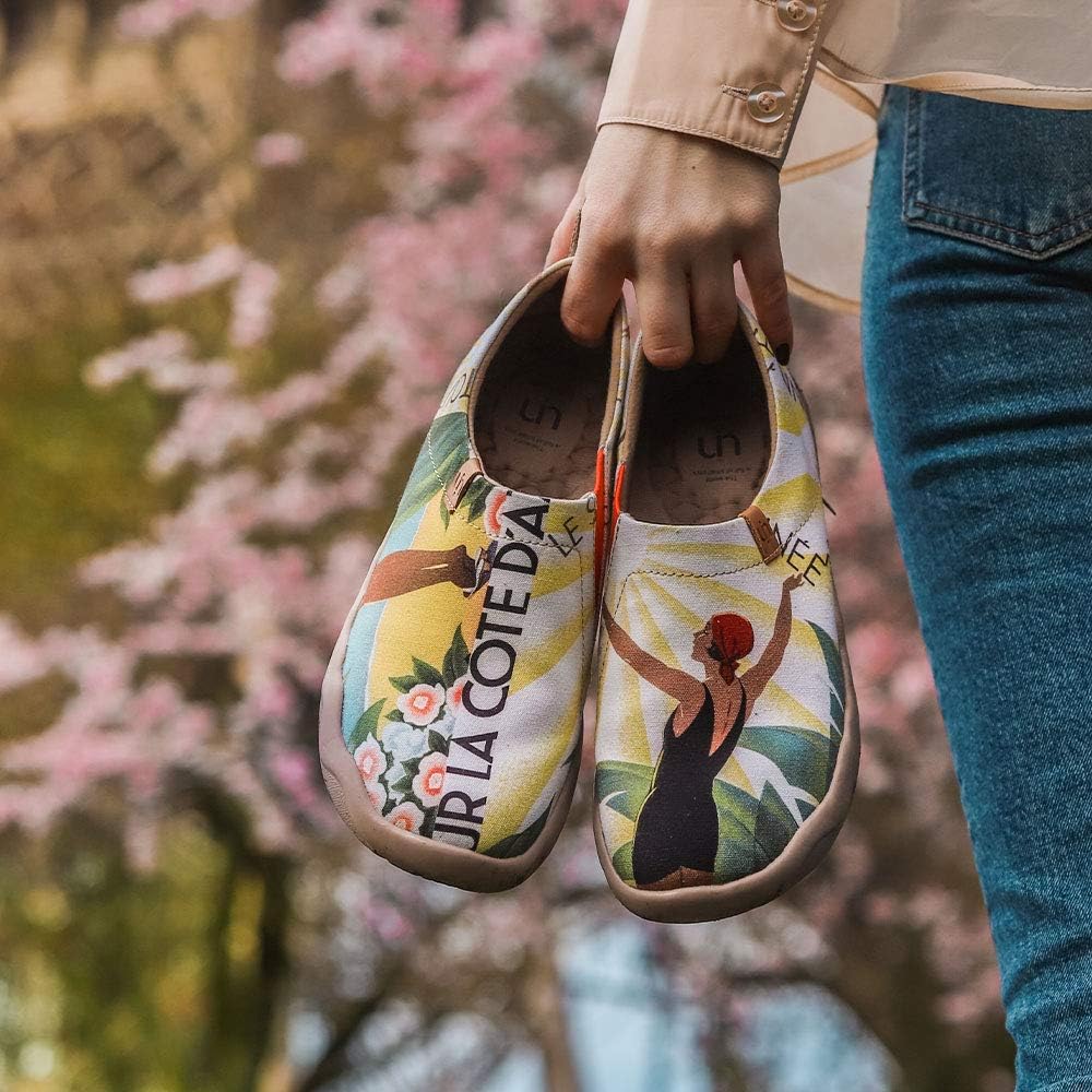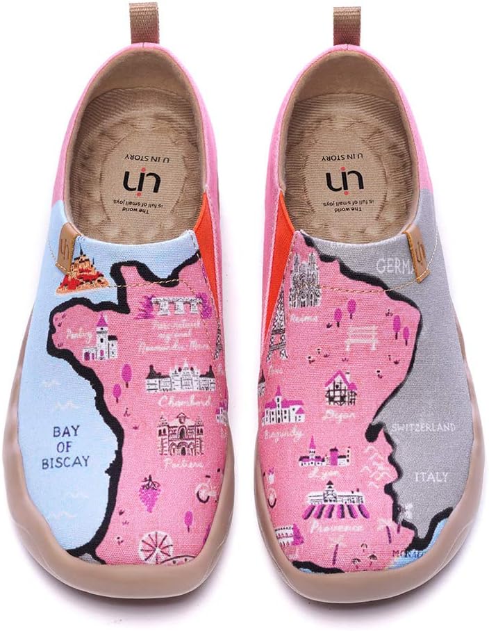 UIN shoes have an eye-catching design produced by artists in Spain. The shoes appear as if they were painted with an artist brush and feature a variety of colors, allowing them to easily coordinate with everything in your wardrobe.