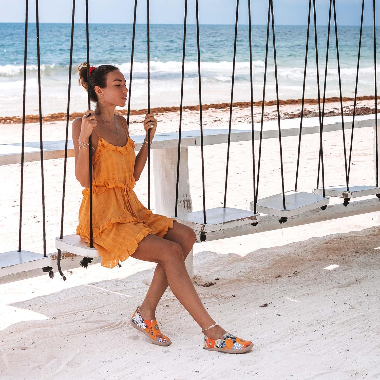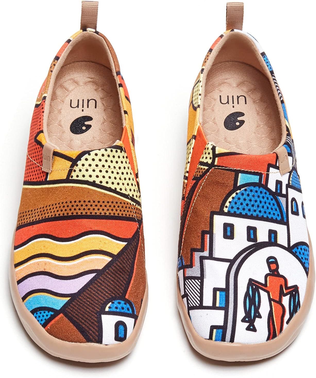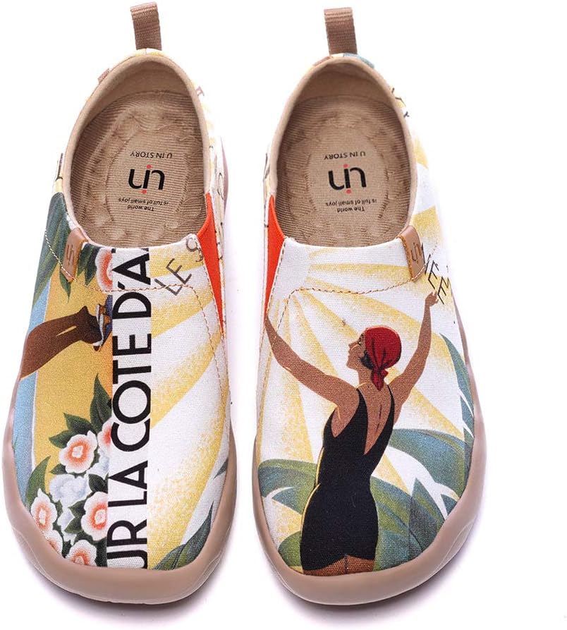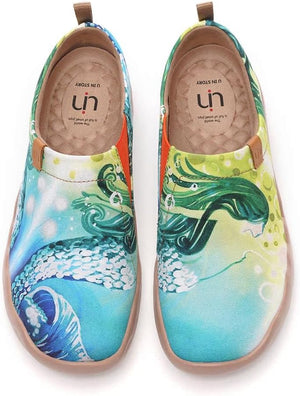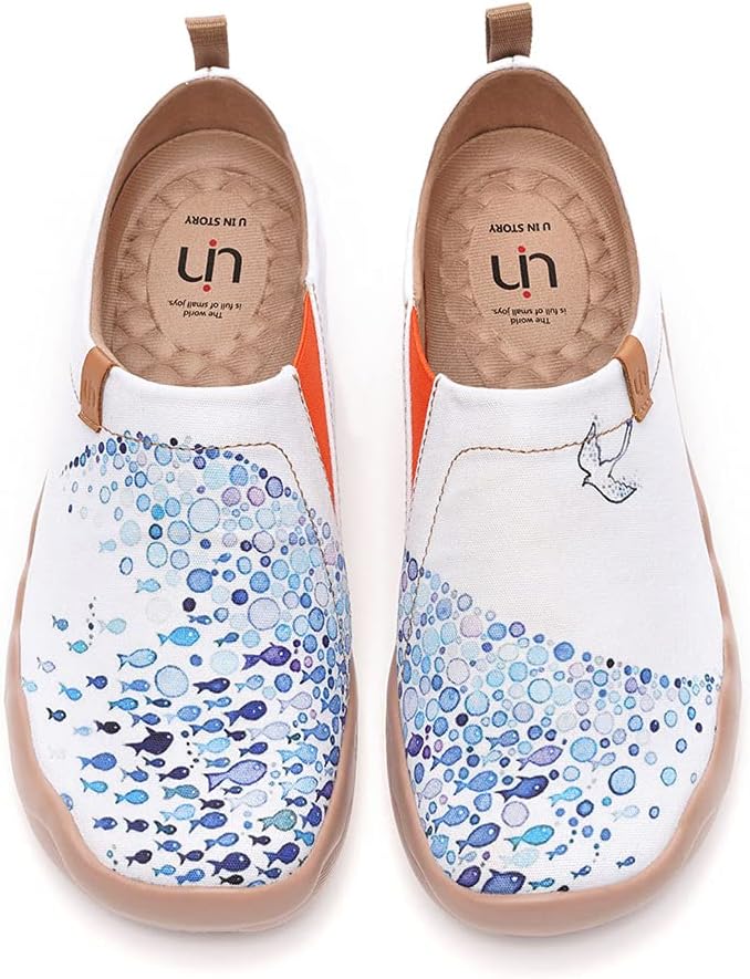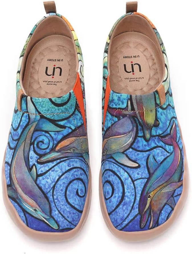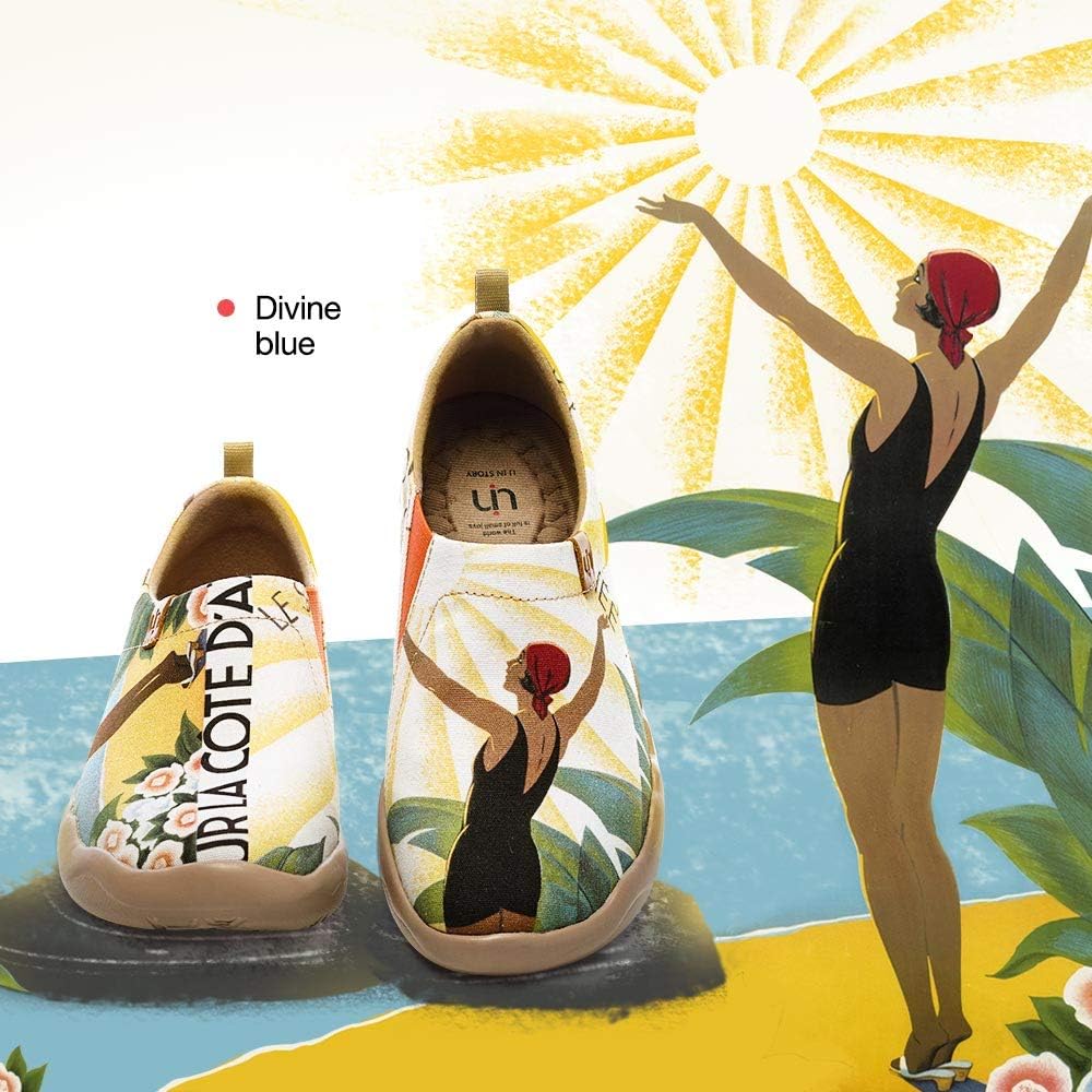 UIN Women's Flats Canvas Lightweight Loafers Sneakers Slip Ons Walking Casual Art Painted Travel (Ocean)