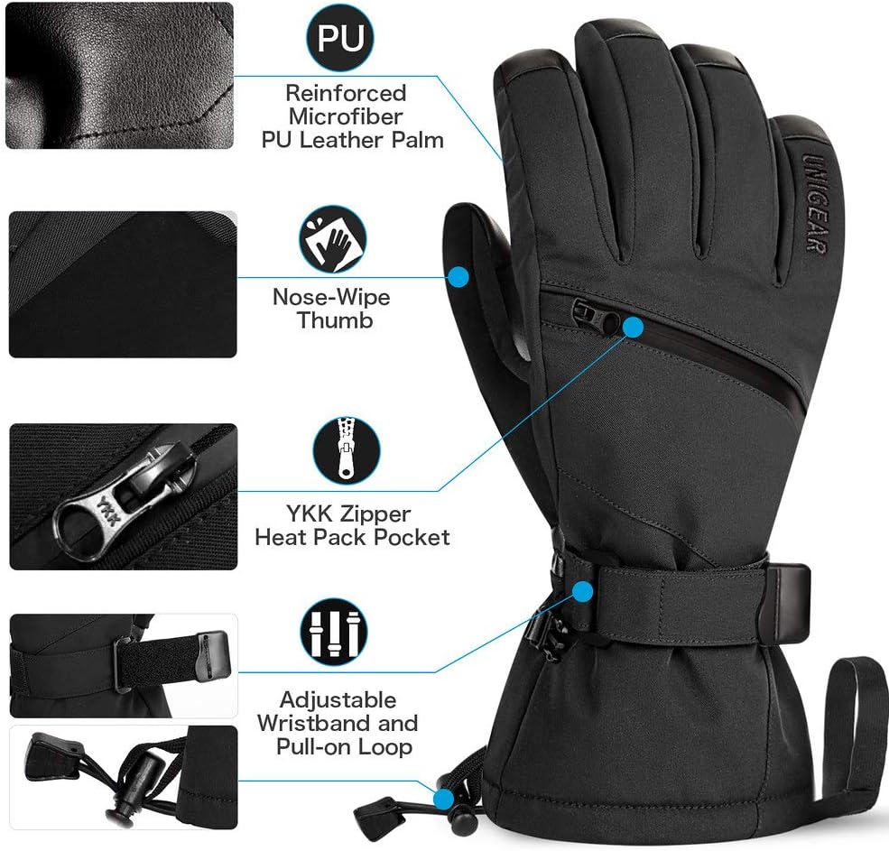 - 💡【High Waterproof & Breathable Protection】Unigear S2 men's ski gloves use DWR waterproof outer layer, excellent water resistance, TPU coating brings comfortable, balanced heat transfer and good humidity management. Waterproof PU leather provides soft and durable palm