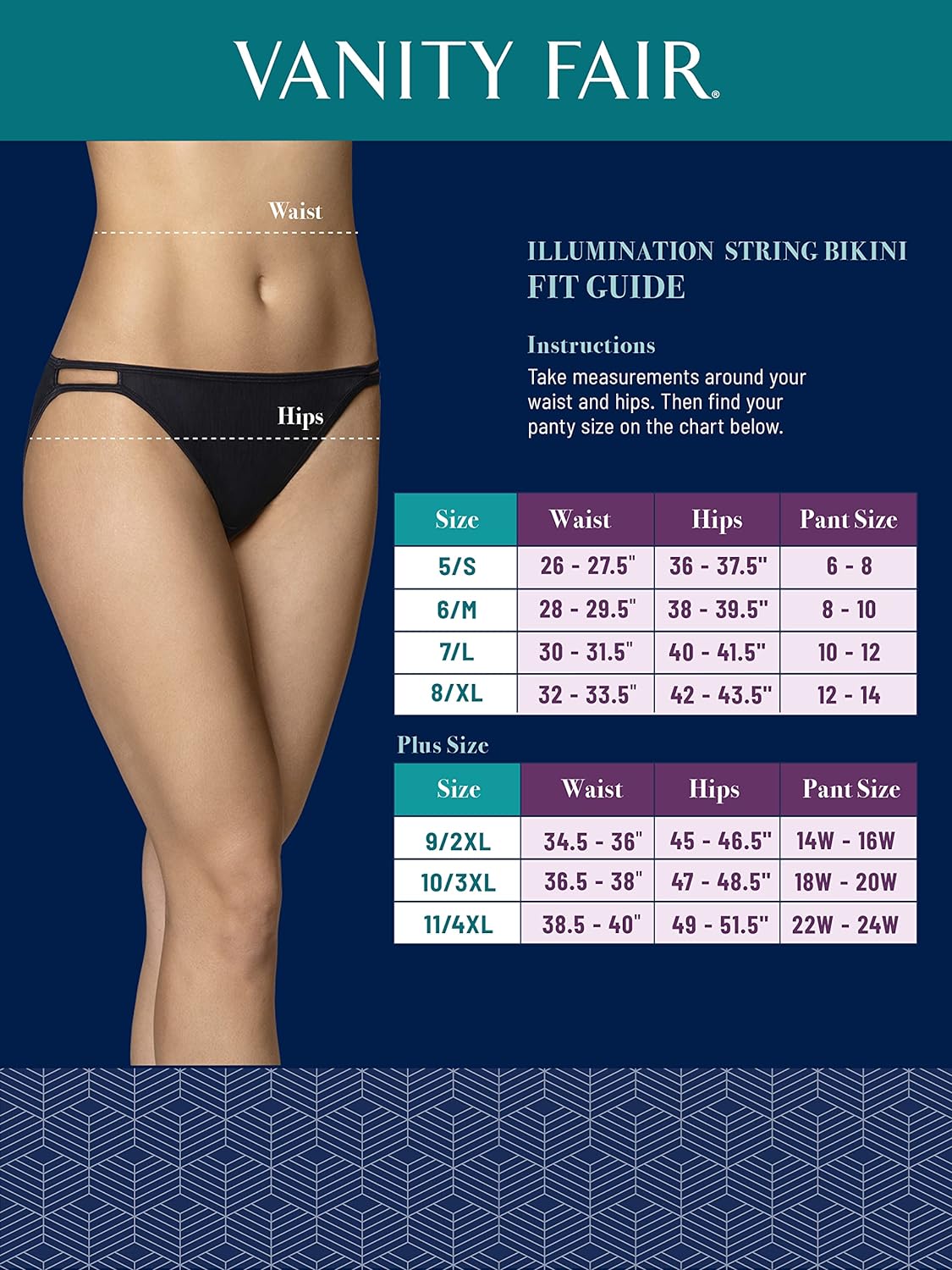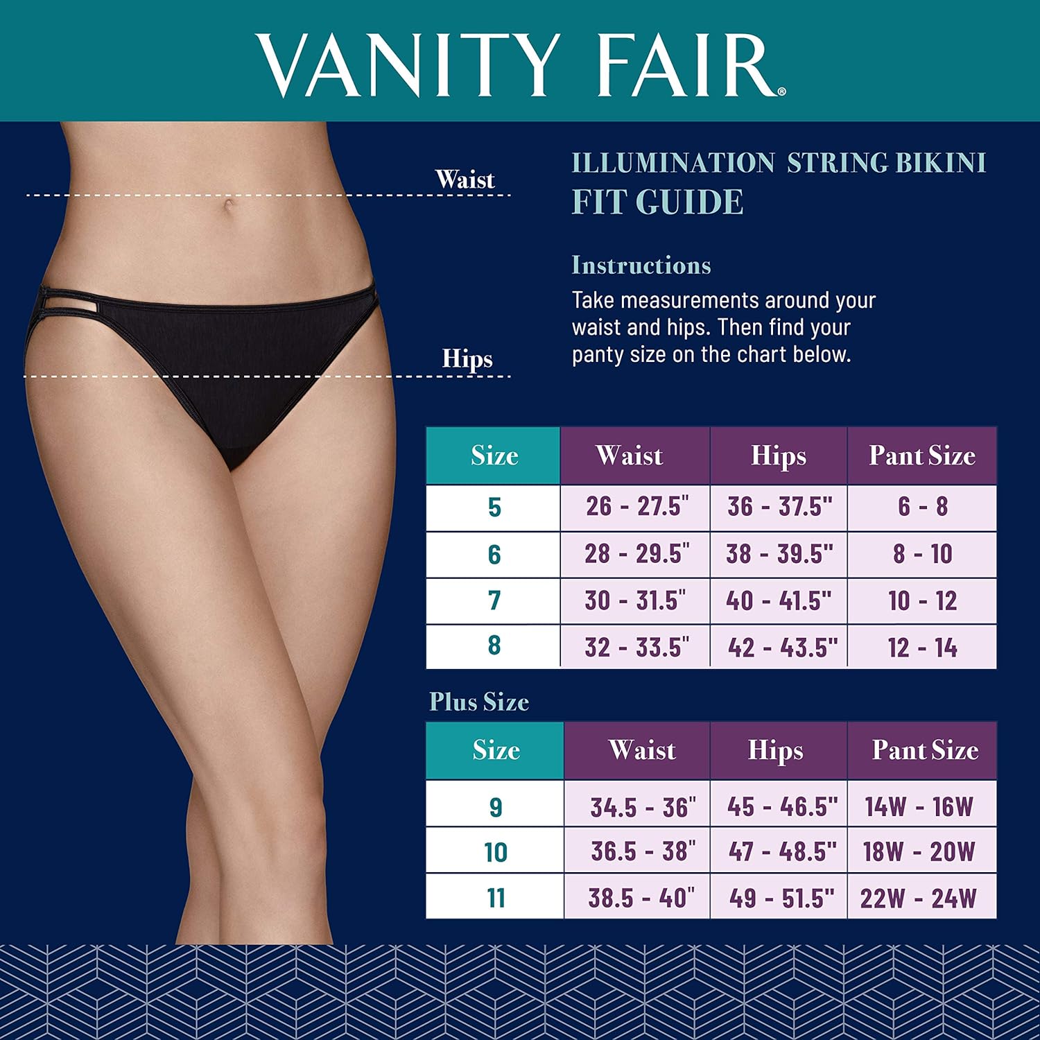 A little luxury, a lot of comfort. The Vanity Fair illumination string bikini is designed with shimmering fabrics and satin accents for a stunning look. The bikini has a flexible, stretch fabric that fits comfortably to your body, so you can move freely and confidently all day long. This pretty panty has got you covered.